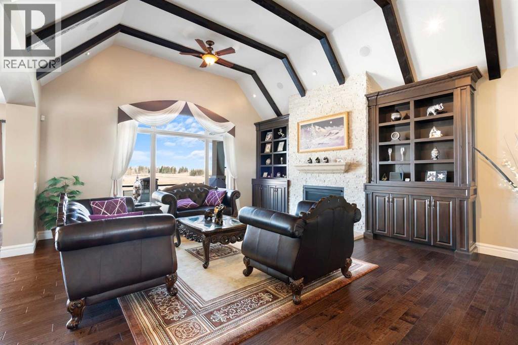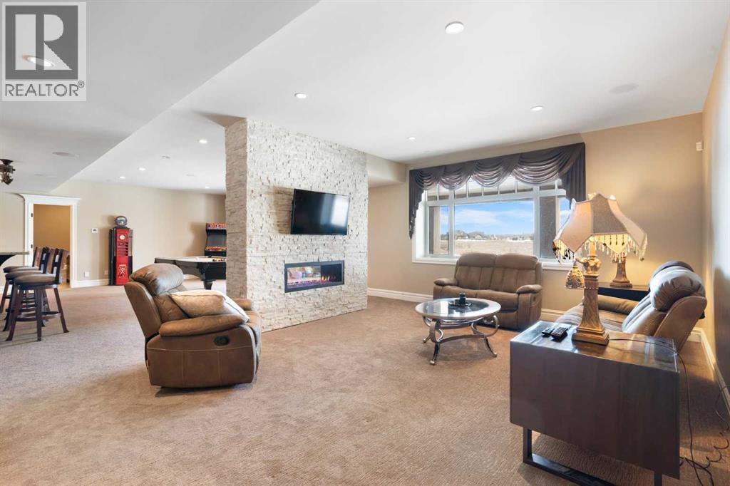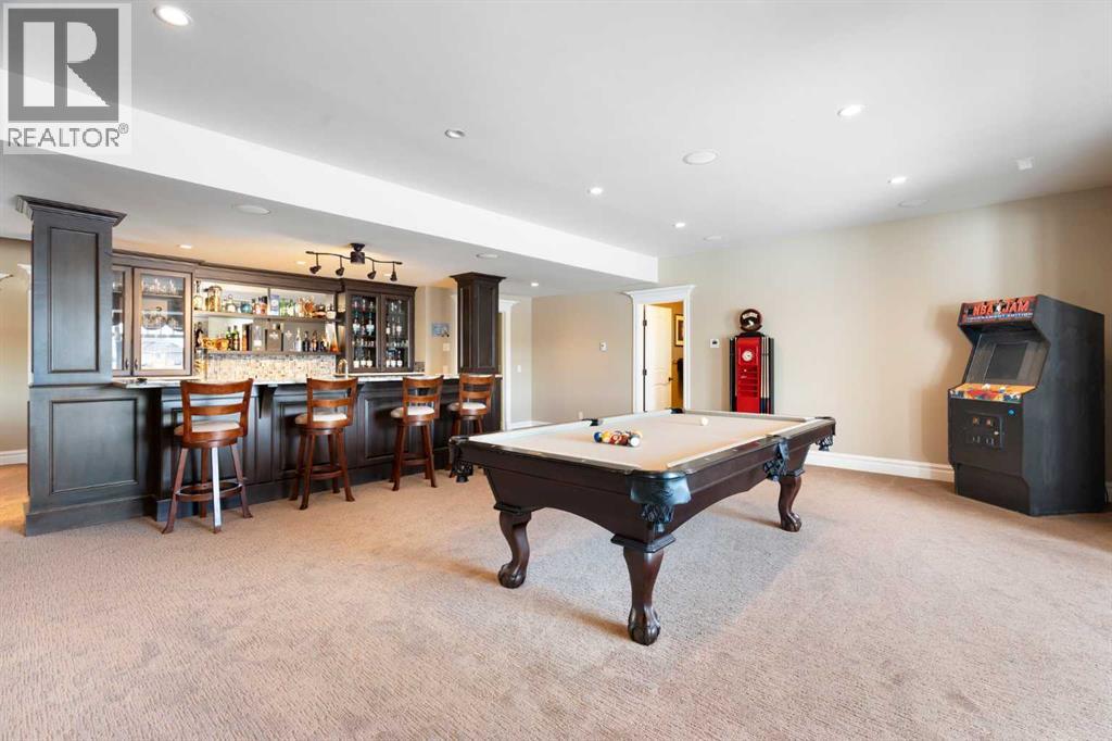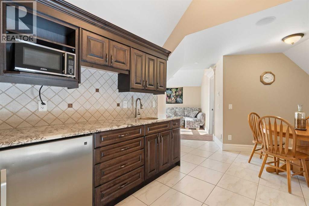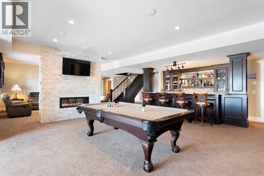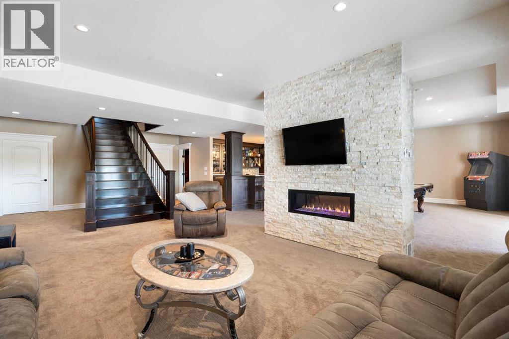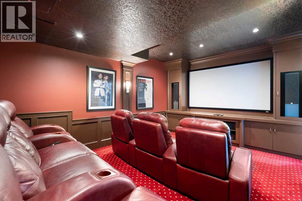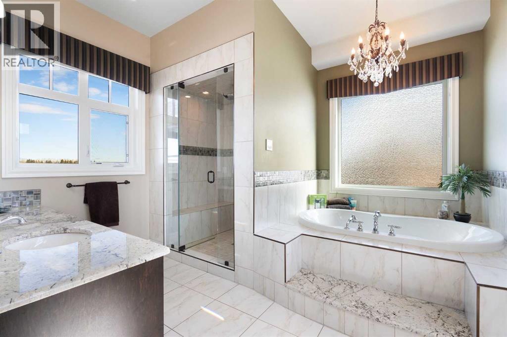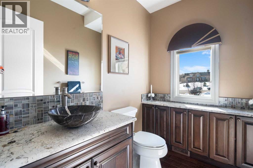Welcome to the epitome of luxury living in Bearspaw Country Estates, where exclusivity meets unparalleled craftsmanship. Prepare to be wowed! This stunning walkout bungalow is nestled amidst peekaboo mountain views on 2.35 acres of land and offers 5 bedrooms and 6 bathrooms. Just 5 minutes from city limits and 10 minutes from Cochrane, immerse yourself in a tight-knit community centered around a picturesque pond, gazebo, and waterfall.From the moment you step inside, you'll notice the meticulous attention to detail that sets this home apart. Be captivated by the featured ceilings and the durability of solid core doors. Enjoy the luxury of slab heating in the basement, garage, and ensuite, ensuring comfort throughout. An advanced sound system boasts 18 zones, 6 sources, and 50 speakers throughout the home, as well as a comprehensive security system conveniently controlled through your phone. Experience a level of excellence that surpasses expectations at every turn. The vaulted living room sets the stage for relaxation, while the formal dining room exudes elegance. A split quartz fireplace adds warmth and style, while the amazing kitchen is a culinary haven equipped with a wall oven, double sink, gas stove, and gleaming black granite countertops. A breakfast nook surrounded by glass offers a casual dining option, with sliding doors leading to the deck, complete with a covered portion for BBQ enthusiasts. A unique walk-through pantry adds convenience, connecting seamlessly to the quad heated garage.Down the hall you will find an incredible main floor office flooded with natural light and exquisite ceiling details that seamlessly flow into the expansive and well-designed primary bedroom. Enjoy a gorgeous ensuite with a soaker tub, steam shower, double vanity, and double walk-in closet. Retreat to relaxation with private access to the covered deck. The bright and spacious lower level of this home is designed for comfort and entertainment. With three generously sized bedrooms, there's plenty of space for guests or family. Enjoy the convenience of the walkout basement, providing easy access to the outdoors. Relax by the fireplace or entertain at the stunning full bar, equipped with a dishwasher, fridge, and microwave. A nearby half bath adds to the convenience. There's also a cold storage room, perfect for a wine cellar if desired. Experience unforgettable movie nights in the top-notch theatre room, featuring impeccable soundproofing and a projector system showcasing a 110-inch screen. A quad heated garage provides ample space for vehicles and storage needs. Above the garage lies a charming and versatile living area, featuring a kitchenette, living space flooded with natural sunlight, a full bath, and a cozy bedroom.Welcome home to luxury, comfort, and tranquility in Bearspaw Country Estates! (id:58070)