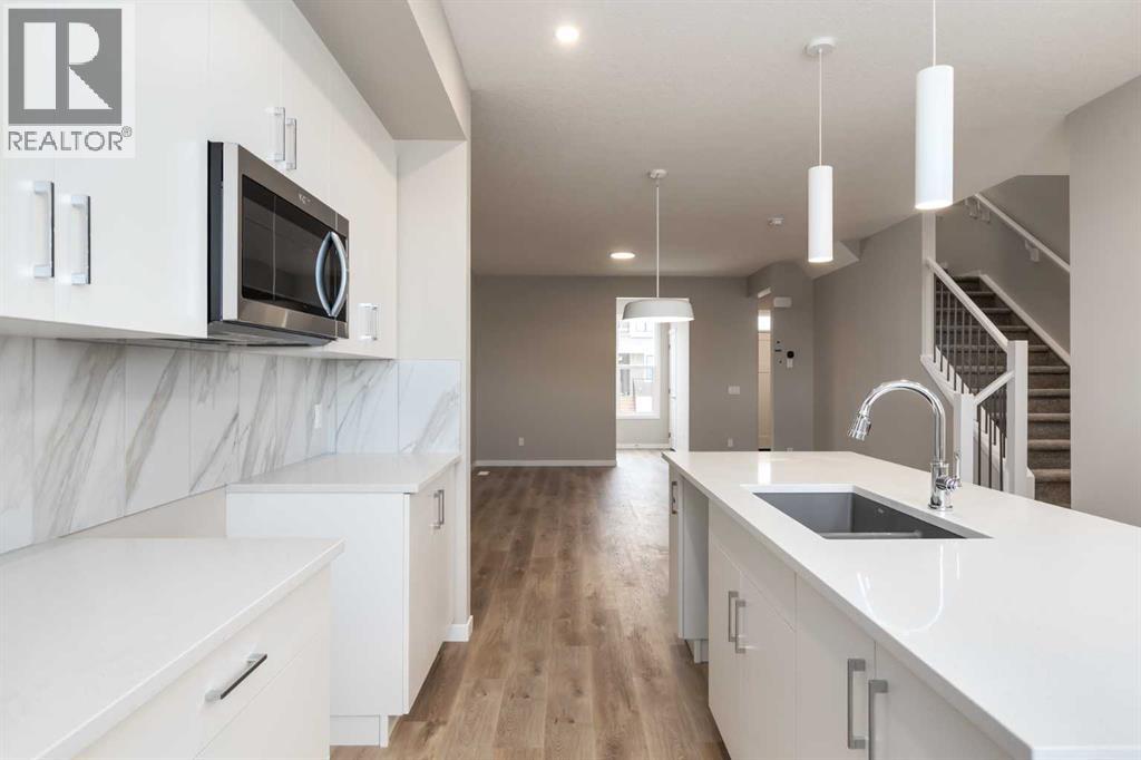 This brand new 3-bedroom, 2.5-bathroom home by Hopewell is ready for immediate possession! The main floor has a bright and inviting open floorplan with a convenient front room that is perfect for a home office, a living room/dining room combination, 2-piece washroom, and mud room with back yard access. At the rear of the home is the modern kitchen with quartz countertops, stainless steel appliances, spacious island with eating bar, pantry, and LED pot lights. On the upper level are 3 bedrooms, bonus area suitable for different uses such as a play space, laundry room, and 4-piece washroom. The primary bedroom is spacious and has a walk-in closet and 5-piece ensuite. There is a 9’ foundation height in the unfinished basement. Extras in this home include luxury vinyl plank on the main floor, triple pane windows, spindle railing, knockdown ceiling texture throughout. There is also a convenient separate side entrance, exterior gas line for future BBQ, and a 20x21’ garage-ready concrete parking pad with back alley access off the west facing backyard. Located close to walking paths, Montrose Pond, the recreation centre, parks, tennis courts and schools, this home is an excellent choice for a family or as an investment. Please click the multimedia tab for an interactive virtual 3D tour. (id:58070)