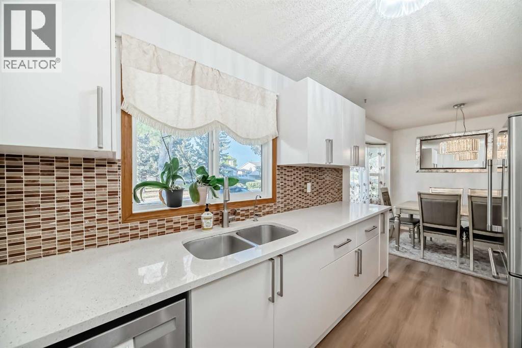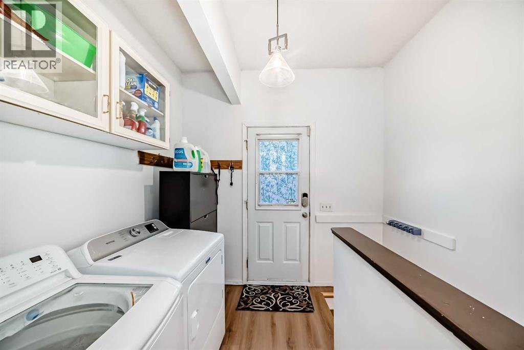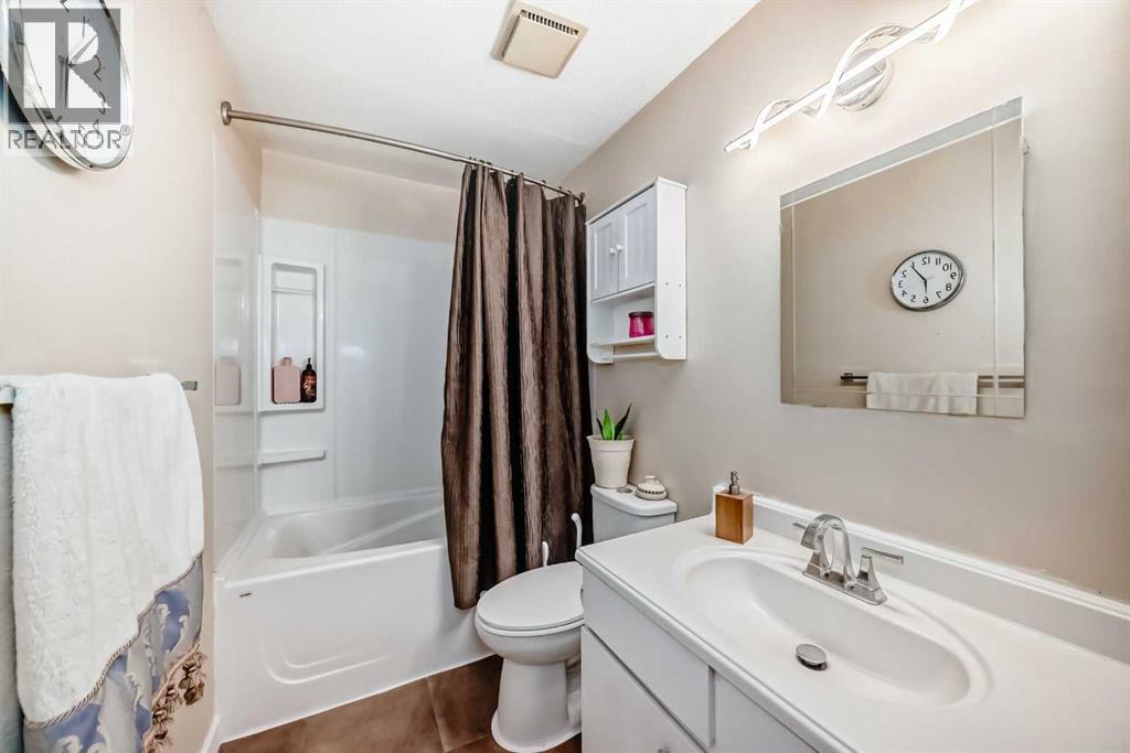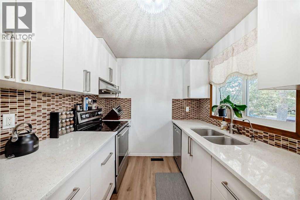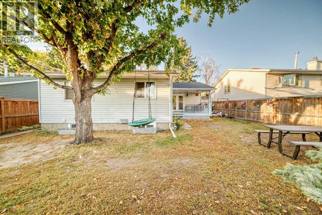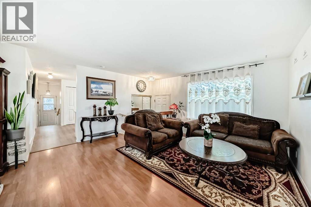 From the moment you step inside, you’ll appreciate the bright and cheerful living room, featuring (new) French doors that open to the private backyard. The dining area is filled with natural light, offering space for a generous table and additional cabinets and counter space. The kitchen has been fully renovated with quartz countertops, modern white cabinetry with soft-close drawers, and stainless steel appliances. The main floor includes three spacious bedrooms. The primary retreat features a 4-piece ensuite, large closet and ceiling fan for comfort. The main floor 4-piece bathroom has been beautifully updated to include a stand up shower and large vanity. Conveniently, the washer and dryer are also located on the main level. A separate entrance leads to the finished basement, which offers a cozy family room, a versatile flex space (perfect for an office or gym) and a spacious fourth bedroom with direct access to a full 3-piece bathroom, which is also accessible from the family room. Step outside to the large backyard, complete with a charming covered deck, mature landscaping with an amazing flower garden, a firepit area, and plenty of space for kids and pets to play. With no neighbours behind, you’ll enjoy privacy and quiet, plus a double parking pad off the back alley and ample street parking. Recent updates include new flooring throughout, new French doors in living room, updated bathroom, a fully renovated kitchen, a new roof (June 2025), a newer hot water tank (March 2019), and a well-maintained furnace. This home has been loved and meticulously cared for—move-in ready and waiting for you. Ideally located close to the Strathmore Aquatic Centre, Brentwood Elementary, Strathmore High School, and numerous parks and amenities and quick access to the highways. Call your favourite realtor and book a showing today! (id:58070)
