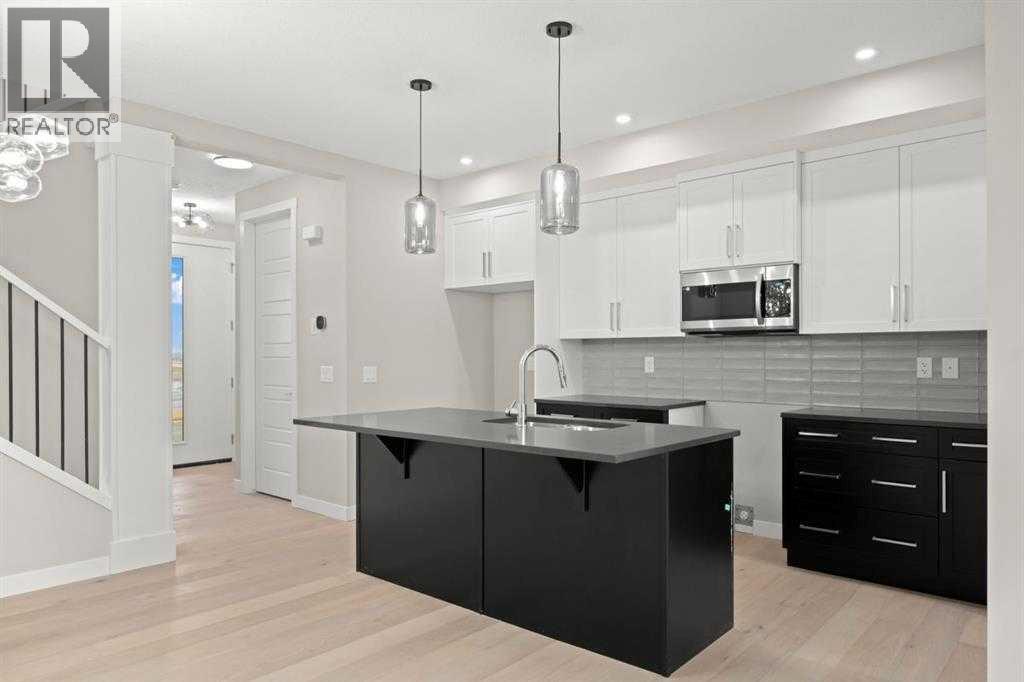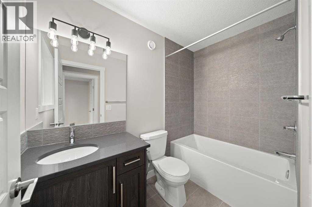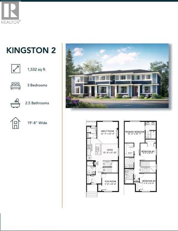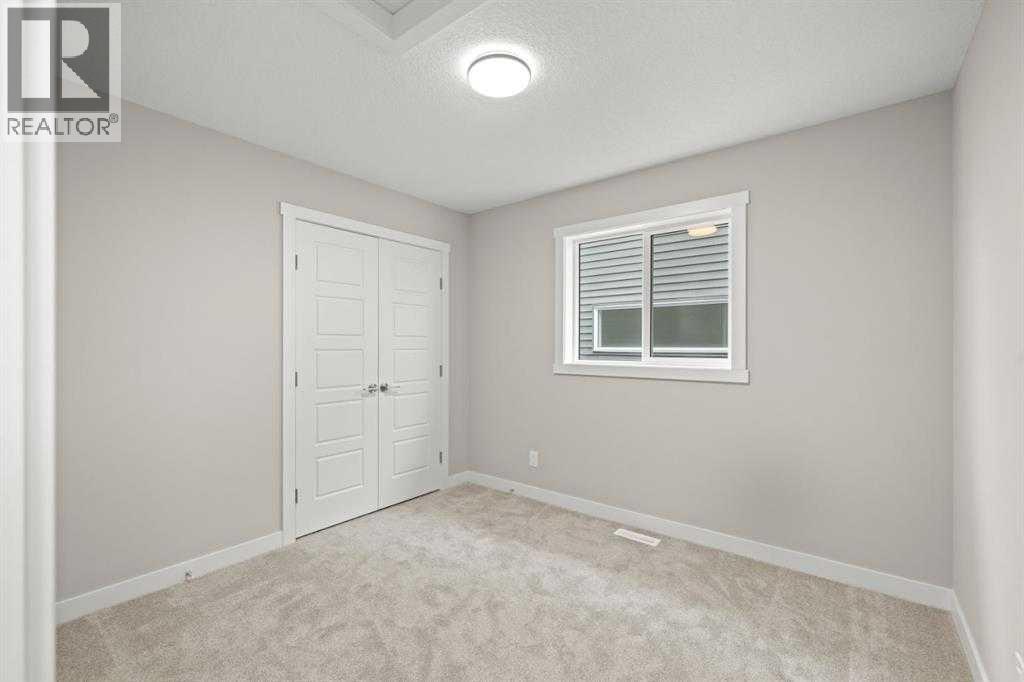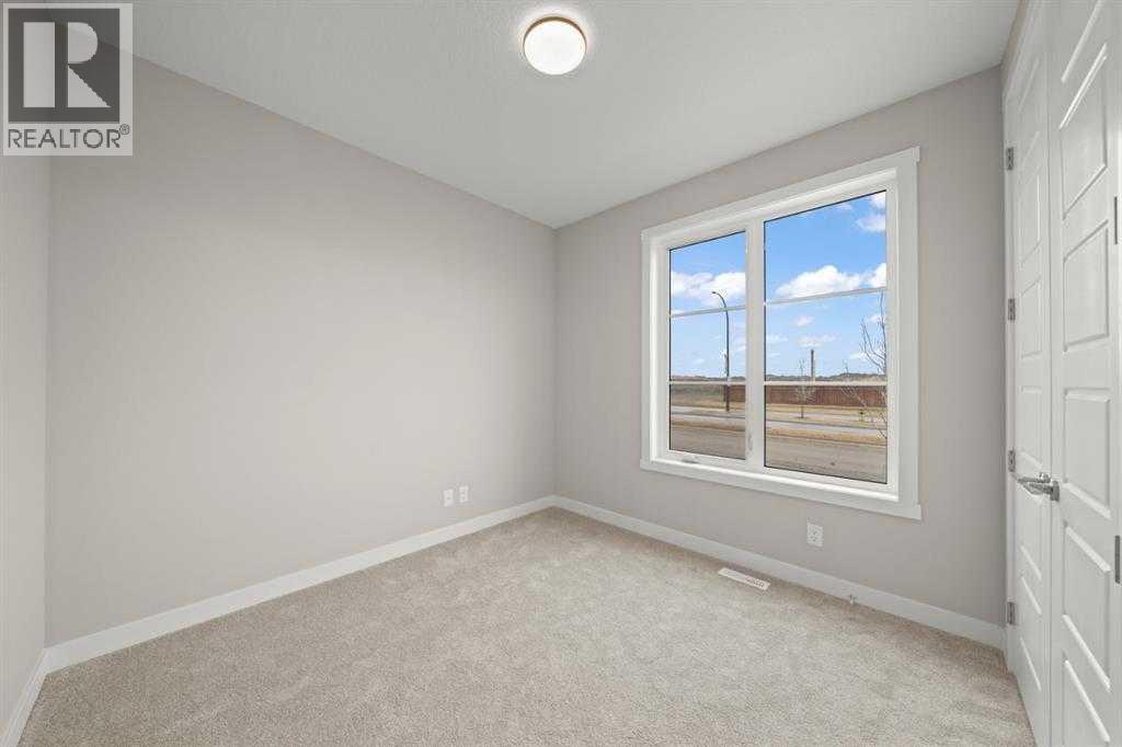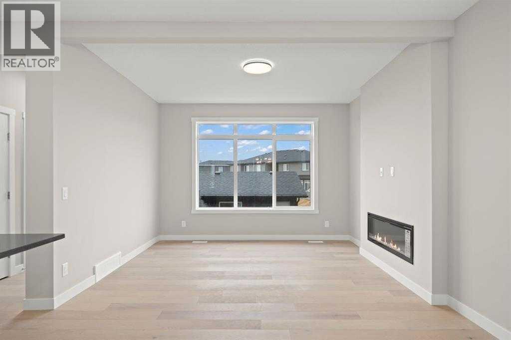 Welcome to Ambleridge, one of Calgary’s newest communities. Introducing the Kingston by master builder Douglas Homes—a 1,582 sq. ft., four-bedroom end-unit fee simple townhouse designed for modern, turnkey living. Enjoy the added convenience of a side entrance and no condo fees.This home stands out with premium upgrades already included, such as 9-foot knockdown ceilings, luxury vinyl plank flooring, quartz countertops, and 42-inch upper cabinetry. The bright, open-concept main floor is filled with natural light from oversized windows and features a spacious, inviting great room with an optional fireplace. The impressive 9-foot kitchen island comfortably seats 6–8, making it perfect for entertaining, while the adjacent dining area overlooks the sunny west-facing backyard.A versatile main-floor flex room or fourth bedroom, along with a three-piece bathroom, offers flexibility to suit your needs—whether as a guest room, home office, playroom, or study space.Upstairs, the primary suite includes a walk-in closet and a stylish three-piece ensuite with quartz countertops and a vanity with drawers. Two additional generously sized bedrooms provide ample space for family or guests. A well-appointed four-piece main bath features quartz surfaces, a large vanity, and a deep soaker tub. You’ll also appreciate the convenience of an upper-floor laundry room.The basement is thoughtfully laid out and ready for future development. Outside, the fully landscaped yard includes a rear deck, fencing, and a double garage.Don’t miss this opportunity—book your showing today. Please note: Photos are from a previously built home and are intended to illustrate finishes and layout; actual features may vary.First-Time Home Buyers’ GST Rebate: Eligible buyers may receive up to $50,000 on a new home purchase. Applicants must be 18 or older, a Canadian citizen or permanent resident, and not have owned or lived in a home owned by themselves or their spouse/common-law partner in the past four ye ars. All terms and conditions are subject to Government of Canada/CRA guidelines (id:58070)