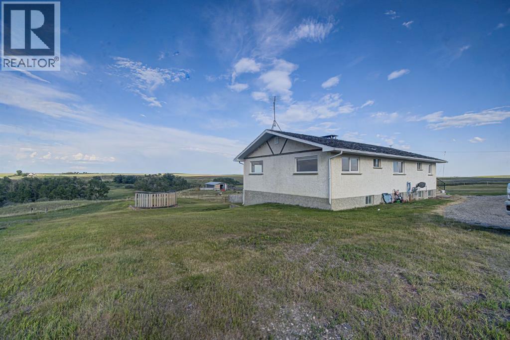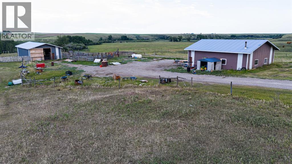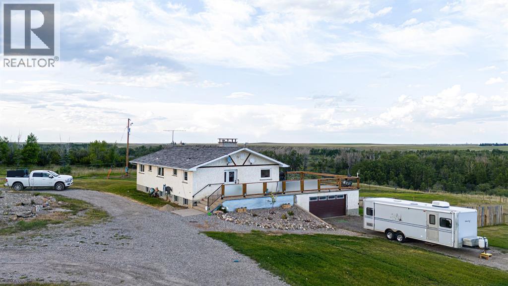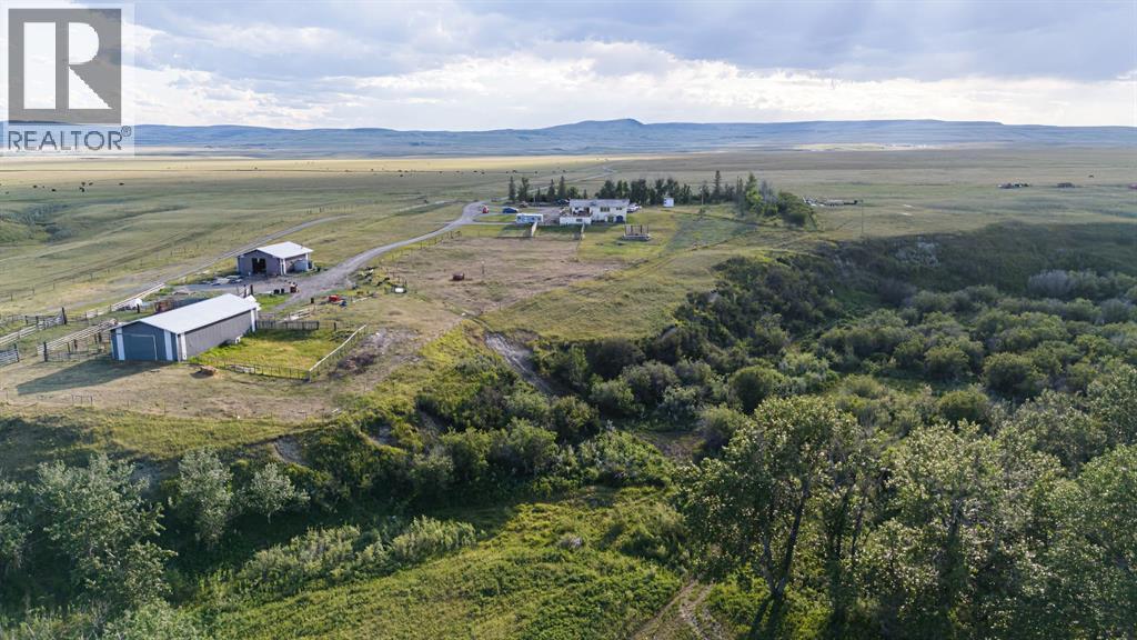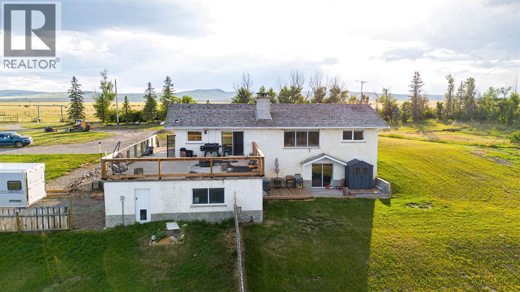 Welcome to your dream property, located just west of Claresholm at the base of the rolling hills. This breathtaking 105-acre parcel offers the ultimate in privacy, natural beauty, and functionality, with Willow Creek meandering through the land and a lush canopy of mature trees creating an enchanting landscape. The walk-out bungalow is built to stand the test of time with durable cinder block and concrete construction. Step onto the expansive east-facing deck which is above the double detached garage and take in views that truly must be seen to be believed – overlooking the treed valley below and the winding creek, it’s the perfect spot for peaceful sunrises and nature watching.The main floor has been beautifully upgraded with vinyl plank flooring, a wood feature wall, and rustic barn board trim. The kitchen is bright and spacious, with modern appliances, a sink that looks out to the views, and an L-shaped layout that opens to the dining area complete with large windows and a patio door to the deck. The living room is anchored by a stunning wood-burning fireplace and a large picture window that frames the panoramic views.There are three bedrooms on the main level, including the primary suite which features a walk-through 3-piece ensuite that connects to the convenient main floor laundry. The walk-out basement is full of charm and nostalgia, with retro carpeting, rustic wood accents, a natural stone wood-burning fireplace, and plenty of space to make your own.Outside, the property is perfectly set up for animals and hobbies alike. A large barn with turnout pens and automatic waterers makes livestock management easy, while the spacious shop with concrete floors and a wood-burning stove is ideal for projects year-round. The land is fully fenced, divided into multiple pastures, and full of opportunity – whether you’re looking to run livestock, explore the creek, or simply enjoy the natural beauty. With adventure at your doorstep and serenity all around, this is more tha n a home – it’s a lifestyle. Properties like this are rare, and this one is ready to welcome you home. (id:58070)