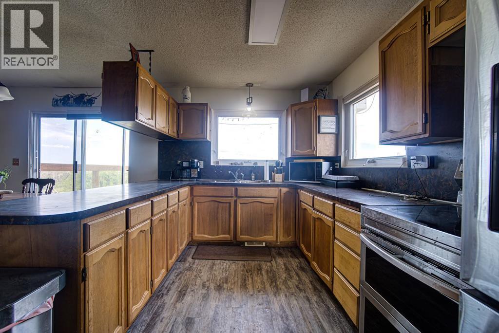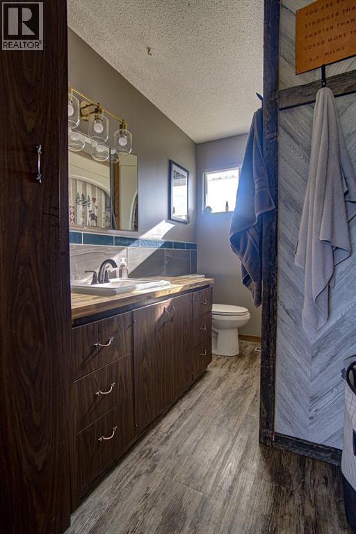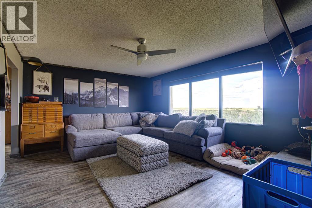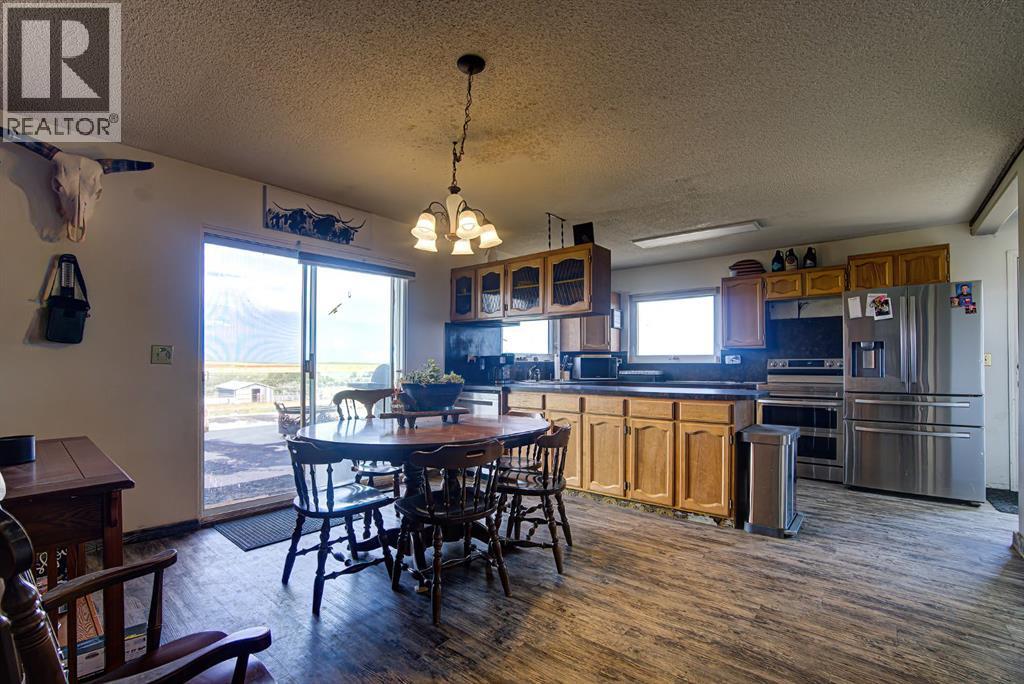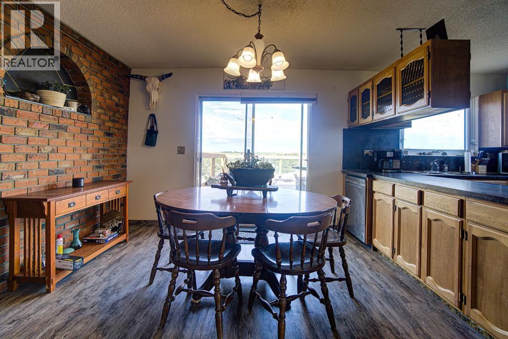 Welcome to your dream property, located just west of Claresholm at the base of the rolling hills. This breathtaking 105-acre parcel offers the ultimate in privacy, natural beauty, and functionality, with Willow Creek meandering through the land and a lush canopy of mature trees creating an enchanting landscape. The walk-out bungalow is built to stand the test of time with durable cinder block and concrete construction. Step onto the expansive east-facing deck which is above the double detached garage and take in views that truly must be seen to be believed – overlooking the treed valley below and the winding creek, it’s the perfect spot for peaceful sunrises and nature watching.The main floor has been beautifully upgraded with vinyl plank flooring, a wood feature wall, and rustic barn board trim. The kitchen is bright and spacious, with modern appliances, a sink that looks out to the views, and an L-shaped layout that opens to the dining area complete with large windows and a patio door to the deck. The living room is anchored by a stunning wood-burning fireplace and a large picture window that frames the panoramic views.There are three bedrooms on the main level, including the primary suite which features a walk-through 3-piece ensuite that connects to the convenient main floor laundry. The walk-out basement is full of charm and nostalgia, with retro carpeting, rustic wood accents, a natural stone wood-burning fireplace, and plenty of space to make your own.Outside, the property is perfectly set up for animals and hobbies alike. A large barn with turnout pens and automatic waterers makes livestock management easy, while the spacious shop with concrete floors and a wood-burning stove is ideal for projects year-round. The land is fully fenced, divided into multiple pastures, and full of opportunity – whether you’re looking to run livestock, explore the creek, or simply enjoy the natural beauty. With adventure at your doorstep and serenity all around, this is more tha n a home – it’s a lifestyle. Properties like this are rare, and this one is ready to welcome you home. (id:58070)