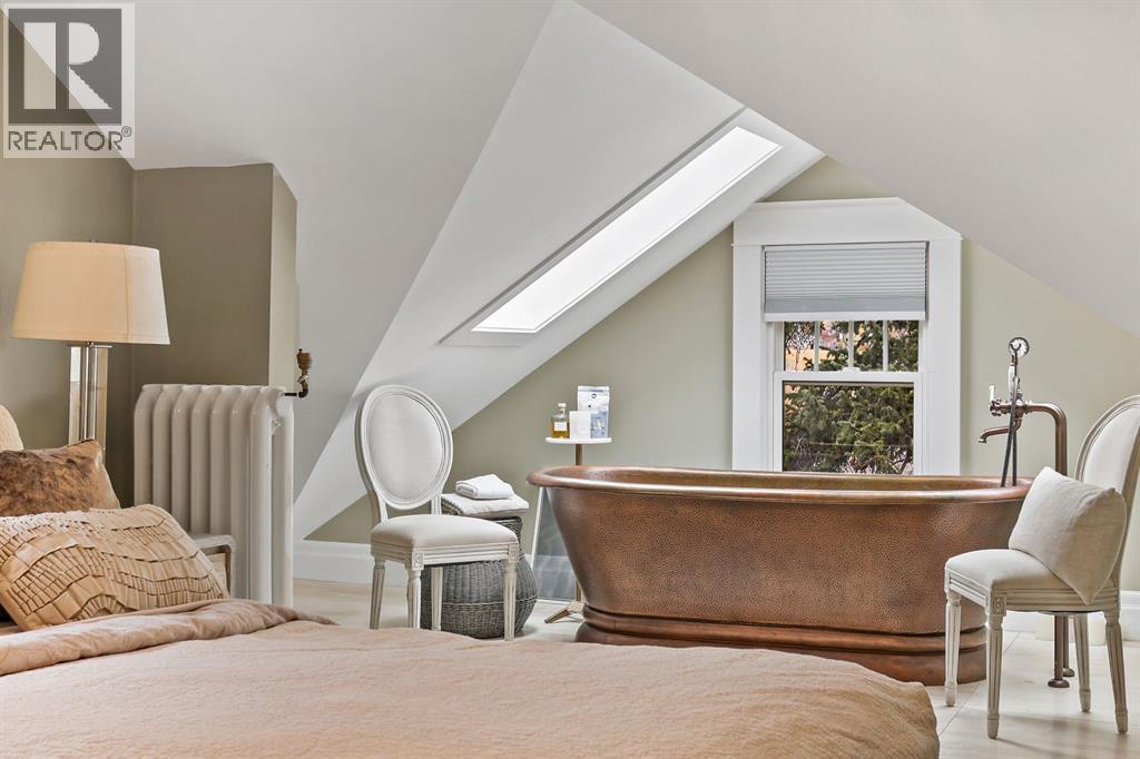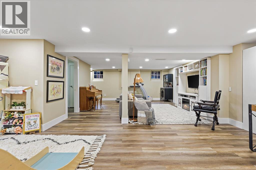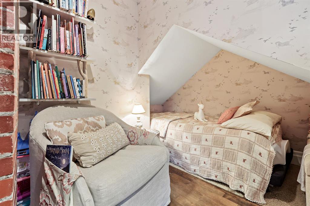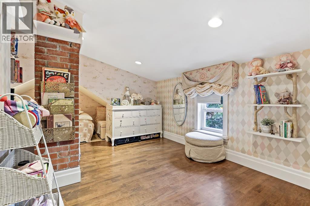 Charming Arts & Crafts–style one-and-a-half-story home perfectly situated in the desirable community of Scarboro. This delightful residence showcases a thoughtful layout filled with character and numerous updates.The central hall design leads to a spacious living room featuring built-in bookshelves, original piano windows, and a cozy wood-burning fireplace, alongside a formal dining room ideal for entertaining. The kitchen includes a butcher block island, honed granite countertops, stainless steel appliances, and a bright breakfast nook. The main floor also offers a versatile bedroom or den and a full bathroom.Upstairs, you’ll find three inviting bedrooms, including a large primary suite with a walk-in closet and a luxurious copper soaker tub that adds a touch of old-world elegance. The lower level has been recently renovated to include a spacious family and games area, a guest bedroom, and a stylish three-piece bath.Filled with natural light, this home features hardwood floors, exposed brick accents, original woodwork, and timeless charm throughout. Located close to tennis courts, 17th Avenue SW, and downtown—this is truly a special Scarboro home blending heritage character with modern comfort. (id:58070)
