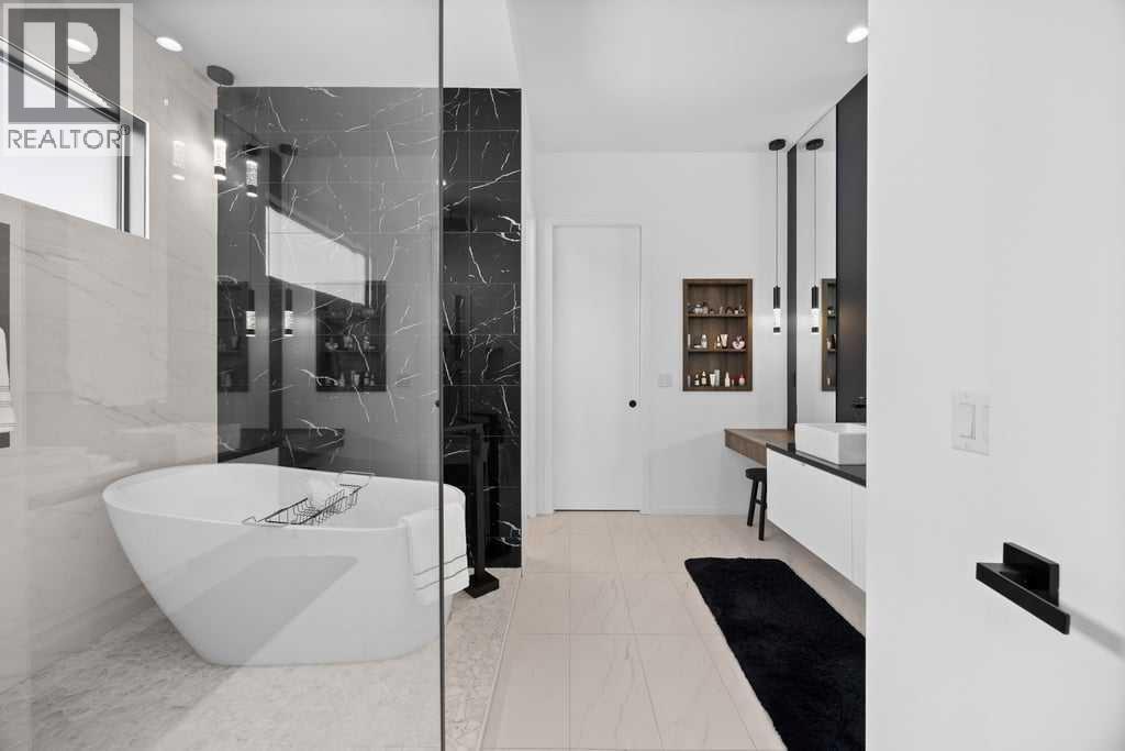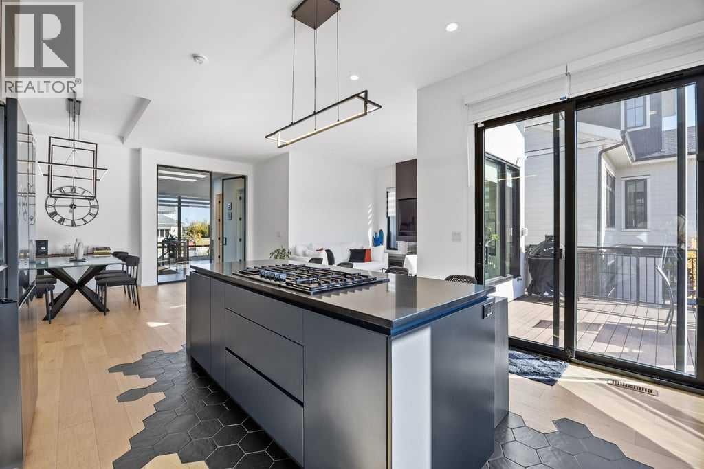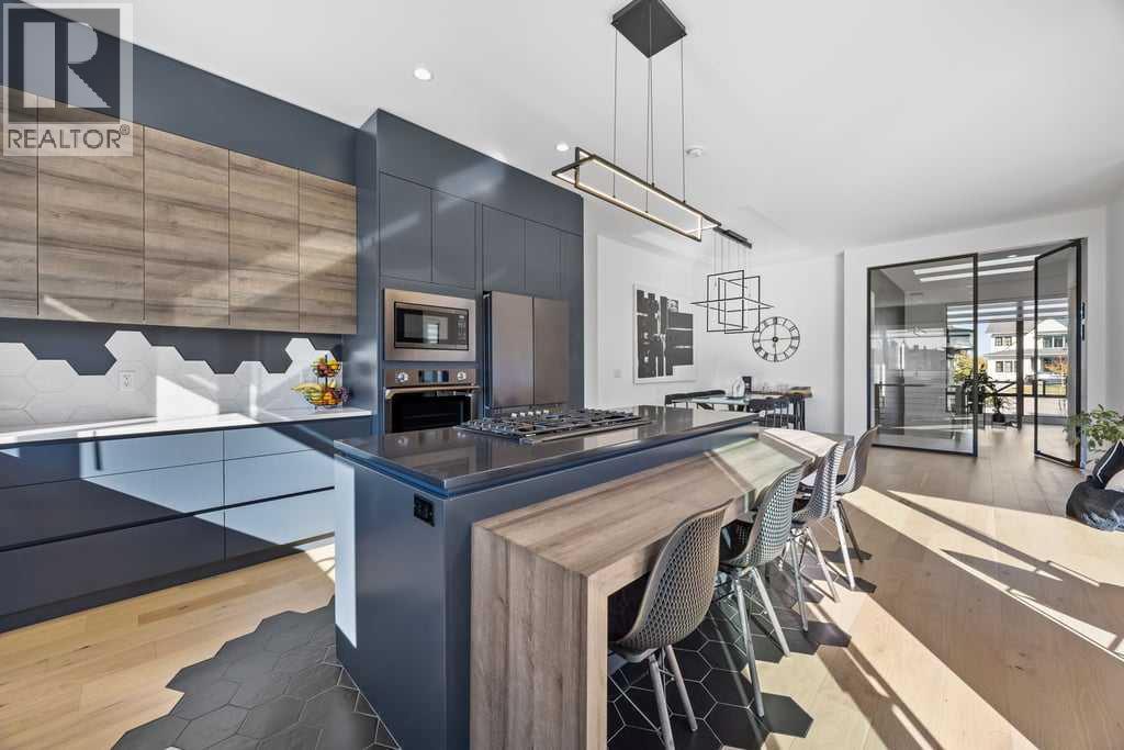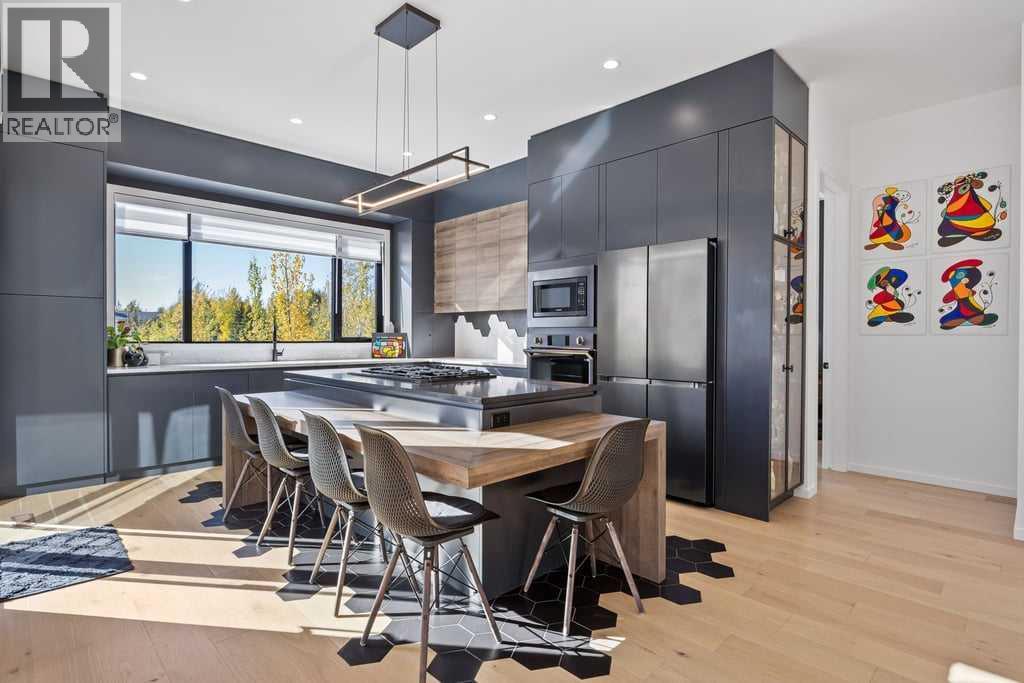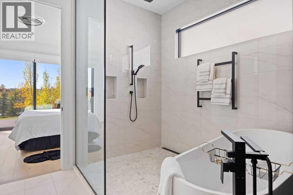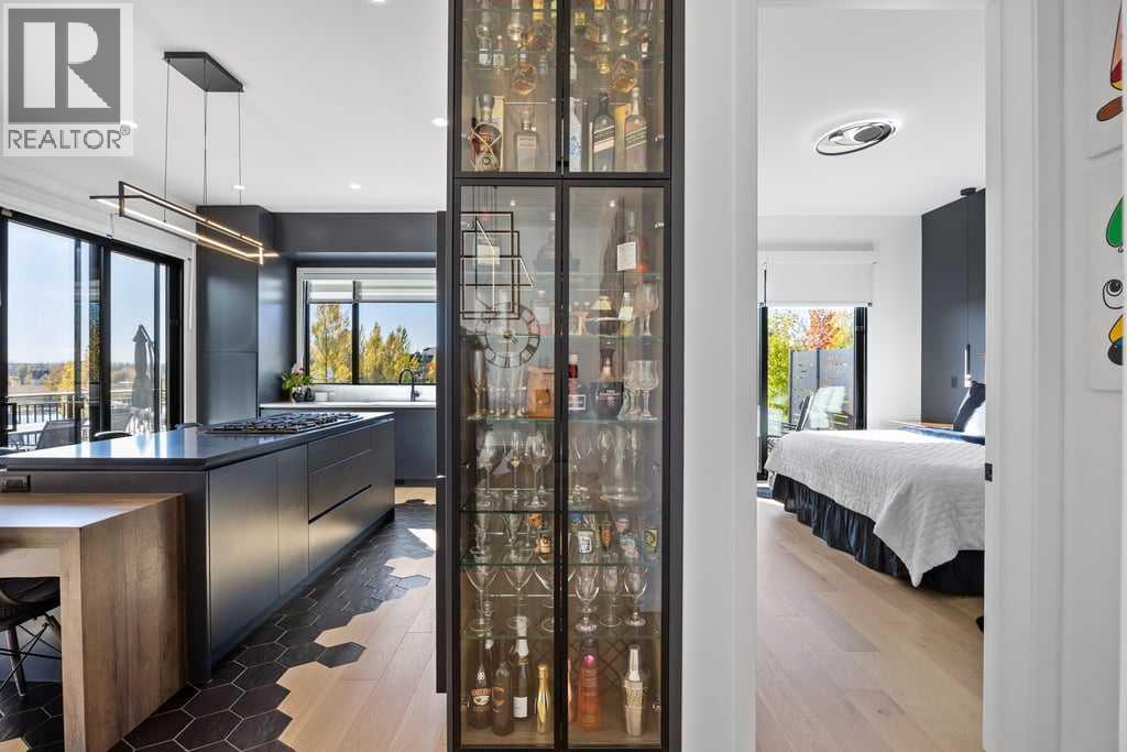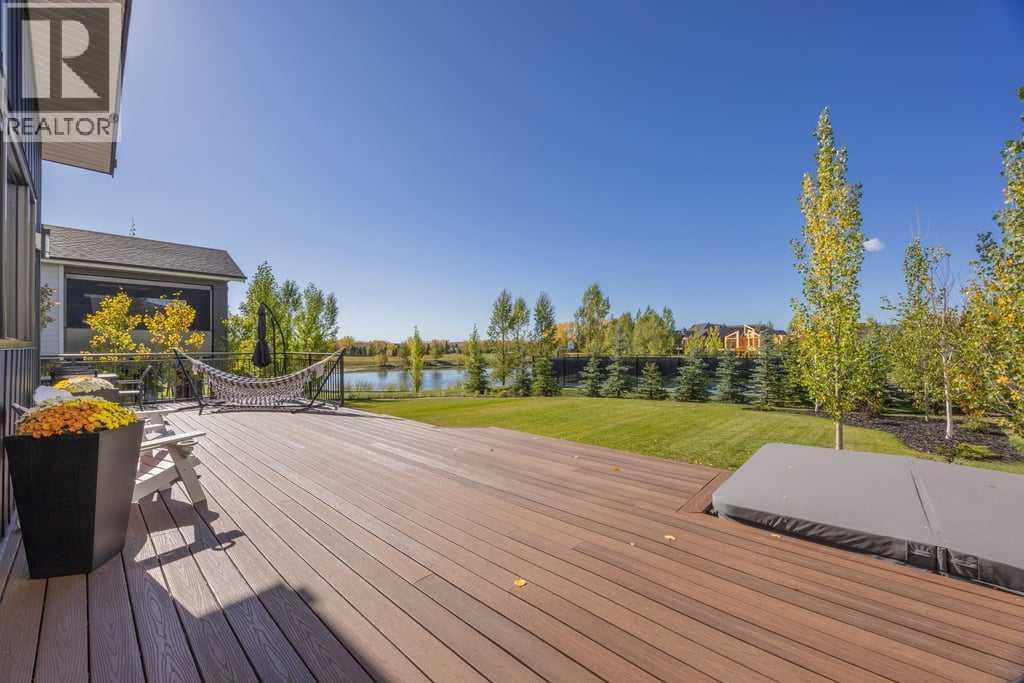 Experience the perfect balance of sophistication and comfort in this stunning modern bungalow, offering over 3,400 sq. ft. of beautifully designed living space. Set in the prestigious community of Elbow Valley West, this residence pairs architectural simplicity with high-end finishes and a seamless open-concept layout.Backed by peaceful pond views and the community’s impeccably kept pickleball courts, the setting is as serene as it is private. Step outside to an expansive deck—ideal for morning coffee, relaxed dinners, or evenings in the private hot tub surrounded by nature. The professionally landscaped yard completes the outdoor sanctuary, with uninterrupted views and space to unwind.Inside, every detail reflects thoughtful craftsmanship. The gourmet kitchen features sleek custom cabinetry, quartz countertops, and premium built-in appliances, all designed to inspire culinary creativity. High ceilings and oversized windows fill the home with natural light, creating an airy, inviting atmosphere.The primary suite is a true retreat, offering calming views, a walk-in closet, and a spa-inspired ensuite that blends luxury and function. Additional bedrooms provide versatility—whether for guests, a home office, or hobbies—each finished with the same refined touch found throughout the home.Warm engineered hardwood floors, designer lighting, and a striking custom fireplace in the great room add depth and character to every space. The lower level continues to impress with three large bedrooms, two full bathrooms, a second washer and dryer, and plenty of room to relax or entertain.Enjoy access to walking trails, community amenities, and recreational spaces just steps from your door. A triple oversized heated garage, smart home security, electronic key locks, and automated window coverings add convenience and peace of mind.Perfect for anyone seeking refined single-level living, this home delivers the best of modern elegance.This exclusive enclave offers the best o f both worlds: quiet country-style living with convenient city access. Residents enjoy beautifully maintained walking paths, scenic ponds, tennis and basketball courts, and nearby playgrounds — perfect for an active lifestyle or quiet evening strolls.With easy access to Highway 8, Stoney Trail, and the new West Calgary Ring Road, you’re only a short drive from top-rated schools, West Springs and Aspen Landing shopping, Westside Recreation Centre, and the mountains beyond. Whether you’re heading downtown or escaping to the Rockies for the weekend, this location makes it effortless.Elbow Valley West is known for its welcoming community spirit, stunning natural setting, and elegant homes — the perfect place to call home for those seeking space, comfort, and connection. (id:58070)