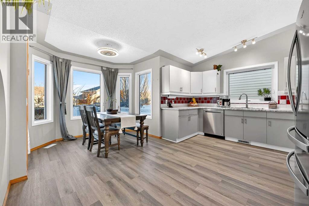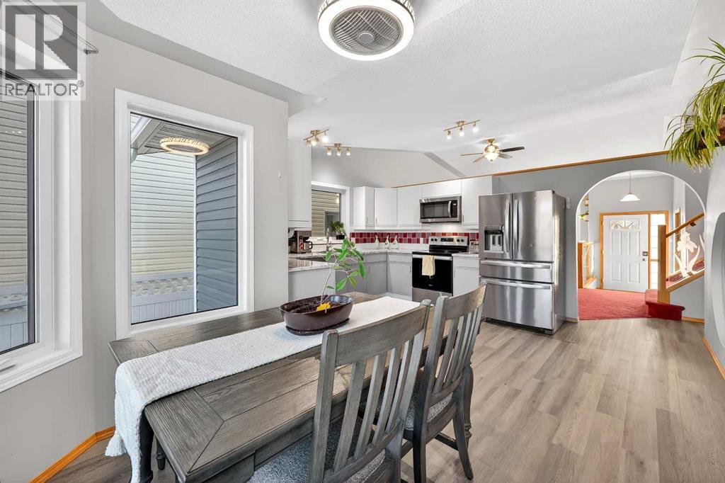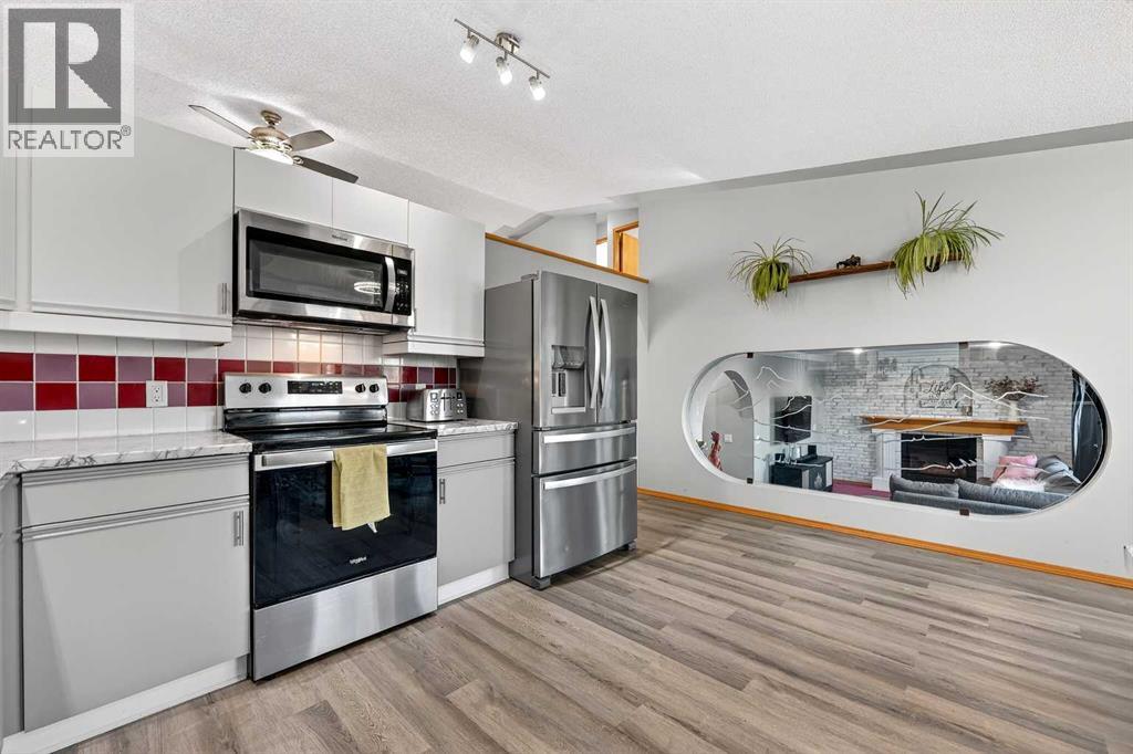 They don’t make them like this anymore !! This splendid 3 bed/2.5 bath large family home has been lovingly maintained and updated through the years and offers features unique to other 4-level splits. A wide and inviting entrance leads to an expansive main floor with vaulted ceilings, front living room, formal dining room, and updated kitchen featuring new vinyl flooring, stainless steel appliances (2024), updated counters, and trendy two-tone cabinets. Stunning glass wall insert looks into the third level family room – excellent for watching the little ones while preparing lunch! Upper level offers a king-sized primary bedroom with large walk-in closet & closet organizers and updated 3-piece ensuite with oversized shower! Secondary bedrooms are of generous size and share an updated full bathroom with full vanity (both drawers and cupboards!) and plenty of counter space! Skylight and glass inserts in the railings to the upper landing provide even more light and openness! The third level is a cozy place with a huge family room and updated 2-piece bathroom & laundry combination. Over-sized windows, updated gas fireplace and plenty of room for toys or crafts makes this area a family favourite! Level four is almost fully developed and presents ANOTHER space to socialize! The rec room is perfect for the gaming teenager, and the flex room is ideal as an exercise room, has a plumbed sink and rough-in for a future fourth bathroom! Unlike other 4th levels, this one has windows! If that isn’t enough, wait until you see the incredible storage in the 5’ tall crawl space! Wow! Other upgrades and features include New Vinyl Flooring in all bathrooms and kitchen, New Toilets, Sinks & Faucets, Newer windows (2013), H2O tank (2016), Roof & Siding (2014) and Newer lighting! New exterior doors are on order and will be installed prior to possession! Check out the sweet Over-sized, Heated and Fully Finished garage! New dedicated electric panel with 220, New garage door & door opener and N ew lighting! The front yard provides a sprinkler system and a nice patio to sit in the morning while the backyard features an expansive brick patio and lots of space for play. With a lot over 5000 sq.ft, there is plenty of room to build an additional detached garage with back lane access. Current owner already has City permits and plans, even a carriage house above is an option! Located on a quiet street 5 minutes to Deerfoot, schools, walking paths and shopping, the family-friendly neighbourhood of Meadowbrook is the perfect place to start or grow your own! (Exterior discoloration above garage in photos is dirt and will be cleaned when weather improves). (id:58070)