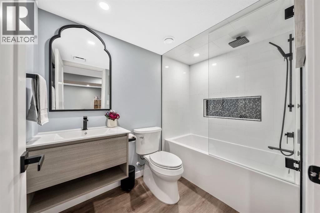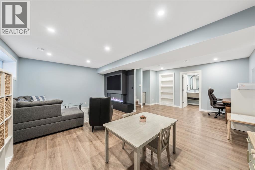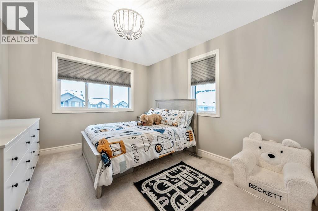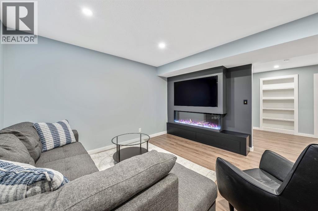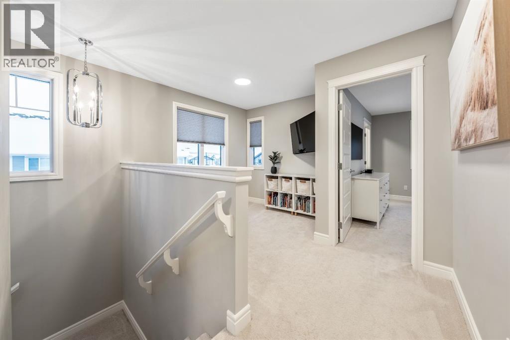 Welcome to this beautifully upgraded, FULLY FINISHED home offering modern finishes, thoughtful design, and exceptional comfort from top to bottom. Set on a fully fenced lot and complete with a HEATED DOUBLE GARAGE, this property is truly move-in ready with nothing left to do. Step inside to a bright, inviting main floor where style meets modern function. The open-concept layout features a stunning kitchen with upgraded appliances—including a smart fridge, induction stove, dishwasher, and microwave—plus a large island perfect for meal prep and gathering. The spacious living room offers a sleek electric fireplace with a custom pull-out mantel designed to discreetly house your media components. The generous dining area flows seamlessly to the private, fully fenced backyard with a storage shed and a gas line on the deck for those summer BBQ nights. Upstairs, the primary bedroom impresses with a luxurious 5-piece ensuite and a walk-in closet. Two additional well-appointed bedrooms share a beautifully finished 4-piece bathroom. The upper level also features a large laundry closet equipped with Samsung appliances, custom cabinets, and built-in shelving for added convenience. The professionally finished (permitted) basement expands your living space with a second electric fireplace, an included TV, and a full 4-piece bathroom with an extra-deep soaker tub—ideal for relaxing after a long day. The heated double attached garage is both comfortable and functional, complete with included wooden shelving for extra storage. Additional features and upgrades include: a tankless water heater, central air conditioning, central vacuum, Gemstone exterior lighting, two electric fireplaces, all window coverings (including blackout blinds), fully fenced yard, and an included storage shed. Located in Heartland, this home offers quick access to nearby amenities and an easy escape to Ghost Lake, Canmore, and the Rocky Mountains—perfect for weekend adventures and everyday convenience. (id:58070)