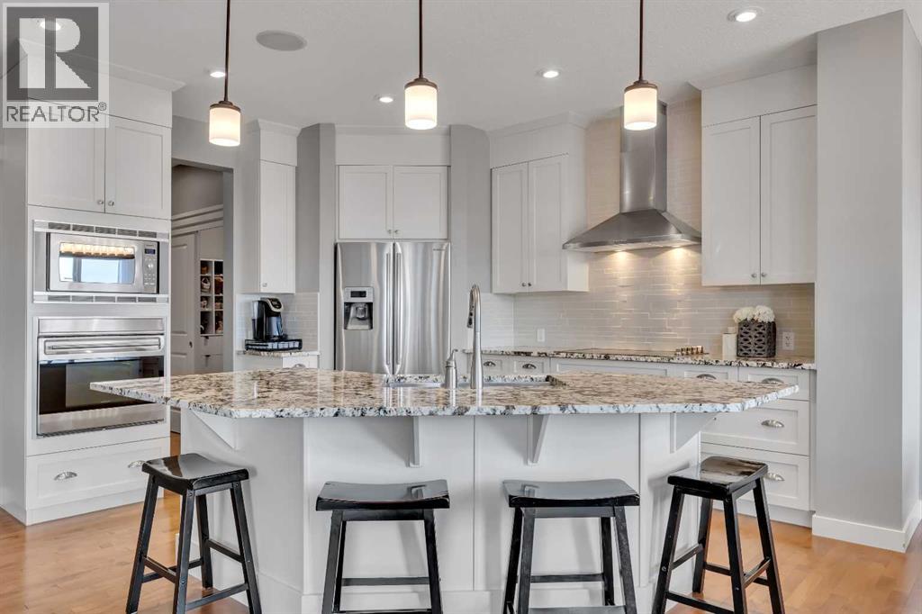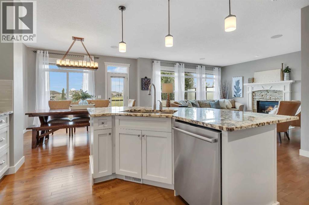Backing directly onto the ravine with stunning panoramic views, this beautifully maintained two-story walkout is the ideal family home. First time on the market-this original-owner home has been meticulously cared for and thoughtfully upgraded. The residence offers 2,600 sq ft. above grade plus over 1,000 sq ft of professionally developed walkout basement, for more than 3,600 sq ft of total living space. With 4 bedrooms, 3.5 bathrooms, and countless upgrades, there’s room for everyone. Inside, the 9 ceiling, open-concept main floor welcomes you with hardwood floors, large windows, and a cozy gas fireplace. The beautiful kitchen features white cabinetry, granite counters, stainless steel appliances, including a Wolf oven, a walk-through pantry, and a spacious island with pendant lighting. The dining area opens onto a full-width composite deck with a custom spiral staircase and incredible ravine views-perfect for entertaining or relaxing. You also have an additional flex room, perfect as a formal dining room or a convenient home office. Upstairs, the vaulted bonus room and three bedrooms are filled with natural light. The luxurious primary suite offers vaulted ceilings, breathtaking views, a large walk-in closet, and a spacious ensuite with dual sinks, a soaker tub, and a glass shower. The other spacious bedrooms feature walk-in closets. Convenient upstairs laundry with ample countertop and storage completes this level.The walkout basement with 9’ ceilings adds over 1,000 sq ft of additional living space, including a large bedroom, full bathroom, home theatre area, and additional rec space perfect for a home gym or pool table. Step outside to enjoy a private hot tub with ba uilt-in sound system, sprinkler system, and mature landscaping. Relax on the full-width patio or enjoy the fire pit area. The oversized garage easily fits a full-size truck and includes direct yard access with plenty of built-in storage. This home blends comfort, style, and function with unbeatabl e views and a spacious walkout design—move-in ready and waiting for your family. (id:58070)