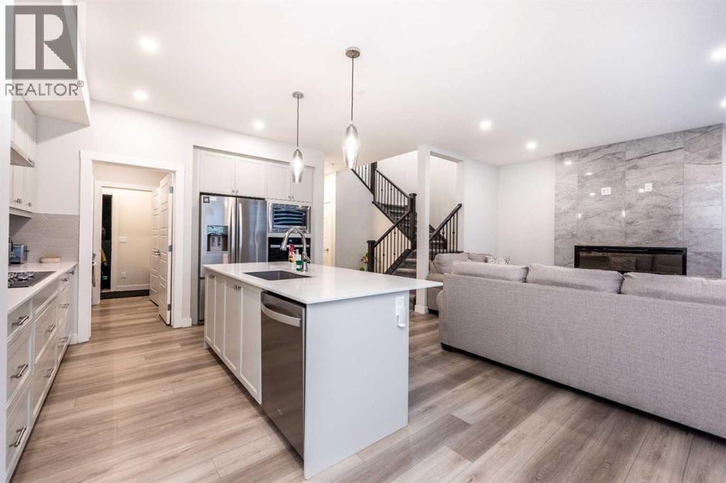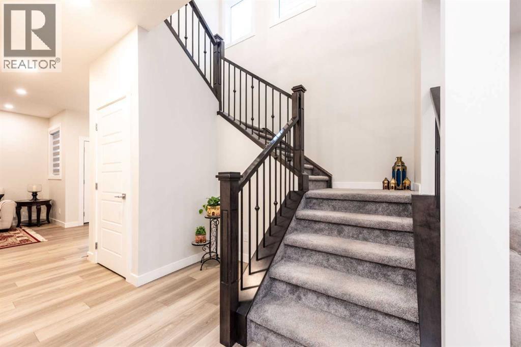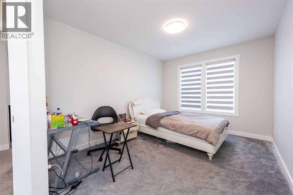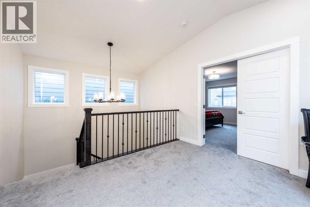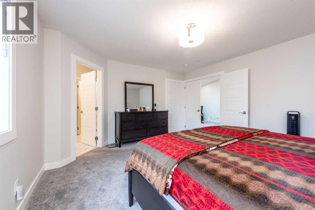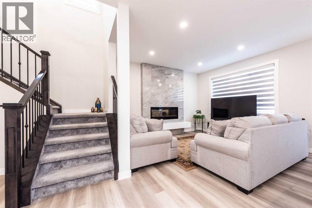 Welcome to this stunning, fully upgraded 2023-built home in the sought-after community of Glacier Ridge, Calgary. Offering 2,490 sq. ft. of thoughtfully designed living space, this well-maintained residence features 4 bedrooms and 4 bathrooms—perfect for growing families or multi-generational living.Step through the impressive double-door entry into a bright and inviting main floor, featuring both a formal living room and a spacious family room highlighted by a sleek linear electric fireplace with a stone surround. The chef-inspired gourmet kitchen boasts soft-close painted cabinetry, quartz countertops, and built-in appliances including an electric cooktop. A separate spice kitchen with gas range and pantry adds both convenience and functionality. The dining area is ideally positioned adjacent to the kitchen, perfect for everyday living and entertaining.Upstairs, you’ll find a luxurious primary retreat complete with a 5-piece ensuite, along with a second primary bedroom featuring its own 4-piece ensuite—ideal for extended family or guests. Two additional generously sized bedrooms share a well-appointed main bath. A bright bonus room provides versatile living space, while the upper-level laundry room with front-load washer and dryer adds everyday convenience.Notable upgrades include quartz countertops throughout, luxury vinyl plank flooring on the main level, upgraded kitchen finishes, a stylish media niche, pot lights throughout, tile flooring in wet areas, and elegant maple railings with iron spindles. Step outside to enjoy the deck and fully fenced yard—perfect for outdoor relaxation.The unfinished basement with separate side entry offers excellent future development potential.Exceptional value in a growing community—book your private showing today (id:58070)