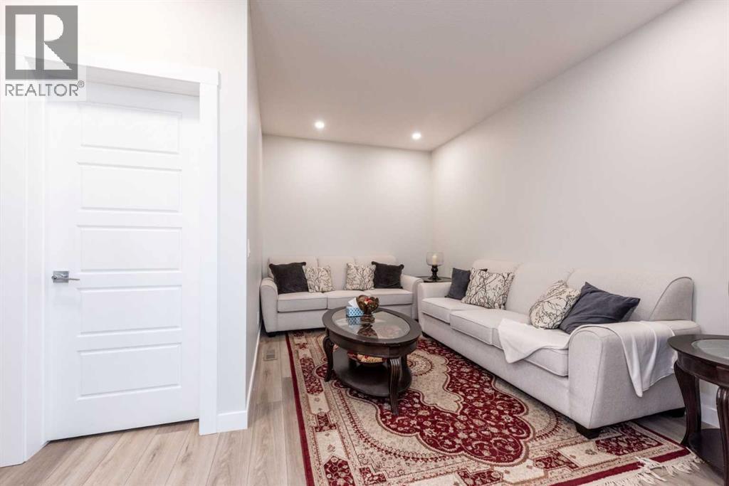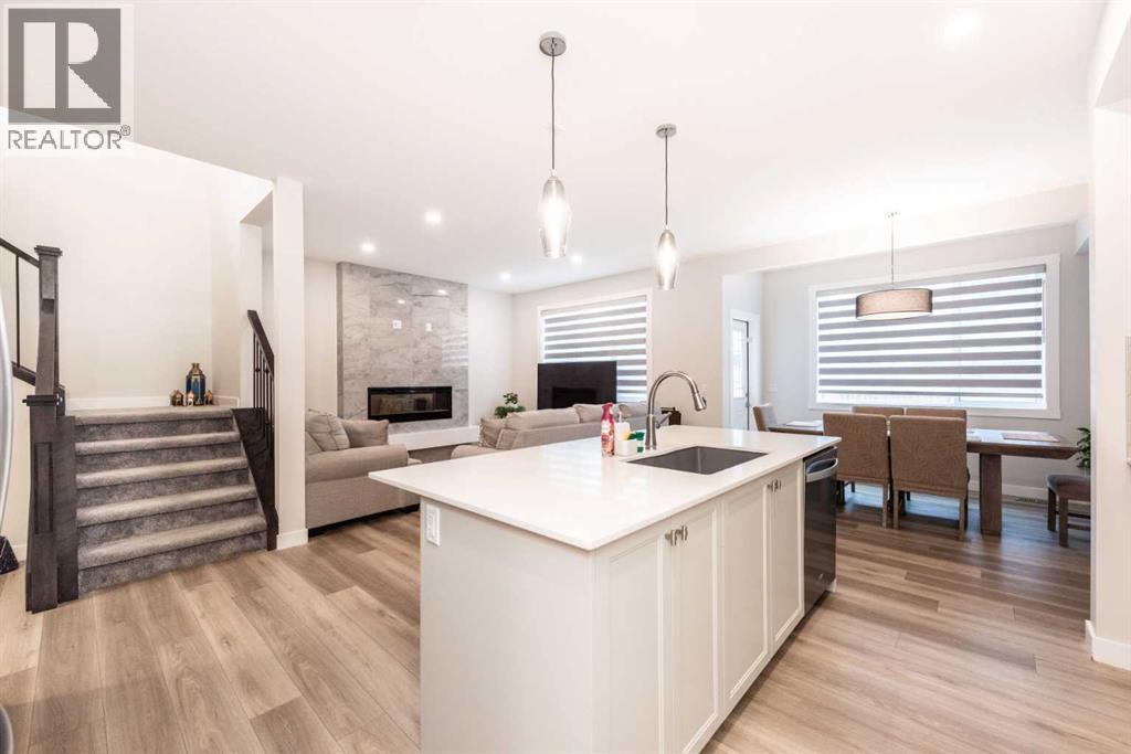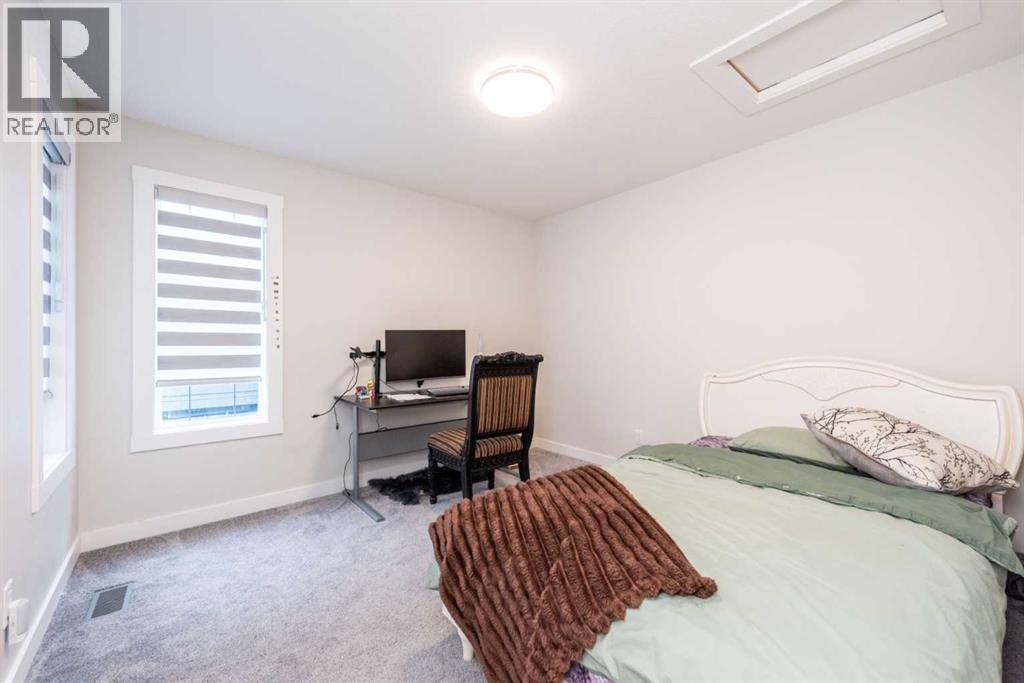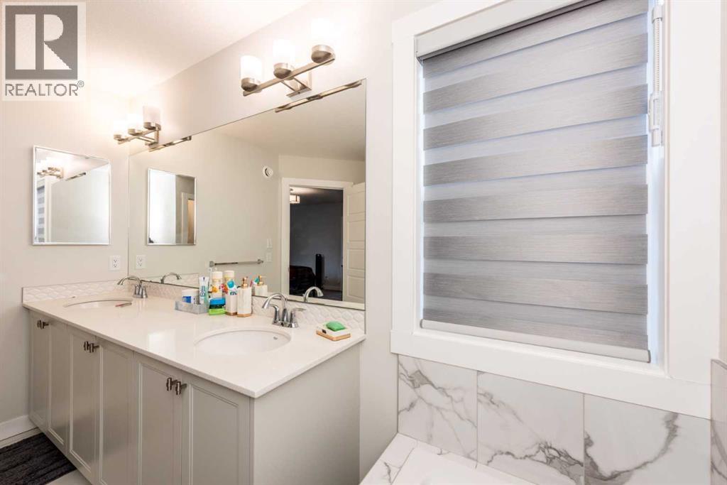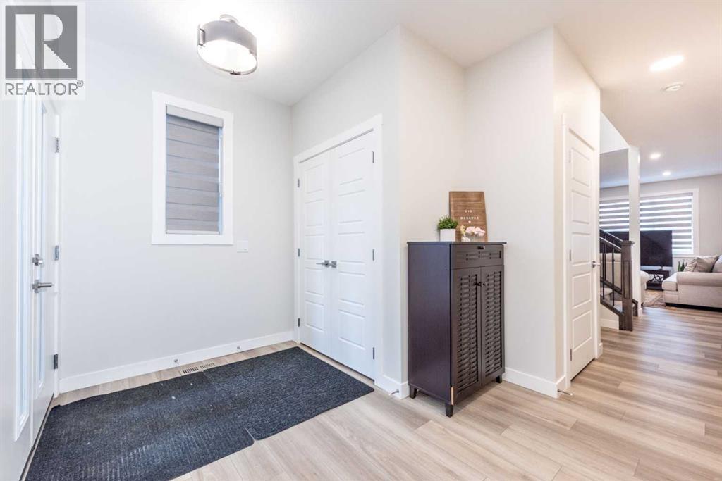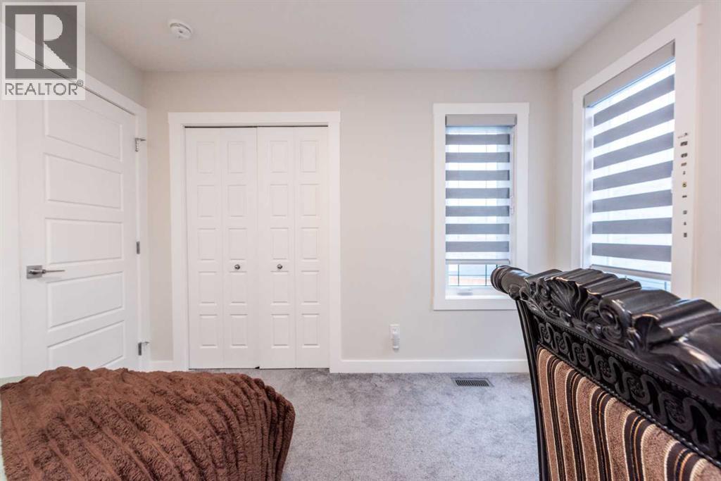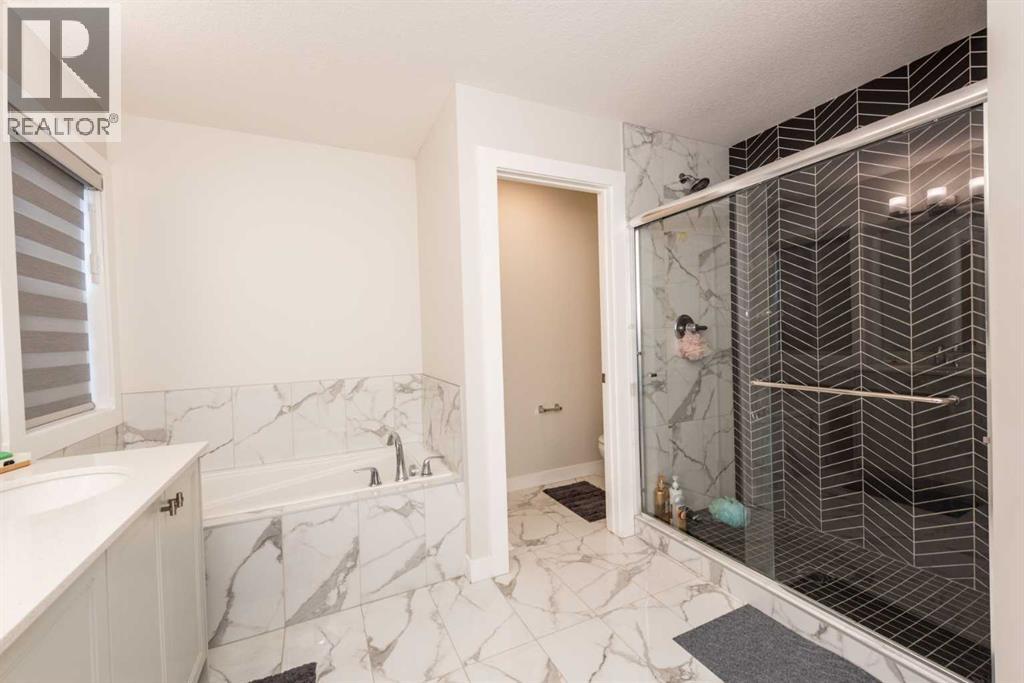 Welcome to this stunning, fully upgraded 2023-built home in the sought-after community of Glacier Ridge, Calgary. Offering 2,490 sq. ft. of thoughtfully designed living space, this well-maintained residence features 4 bedrooms and 4 bathrooms—perfect for growing families or multi-generational living.Step through the impressive double-door entry into a bright and inviting main floor, featuring both a formal living room and a spacious family room highlighted by a sleek linear electric fireplace with a stone surround. The chef-inspired gourmet kitchen boasts soft-close painted cabinetry, quartz countertops, and built-in appliances including an electric cooktop. A separate spice kitchen with gas range and pantry adds both convenience and functionality. The dining area is ideally positioned adjacent to the kitchen, perfect for everyday living and entertaining.Upstairs, you’ll find a luxurious primary retreat complete with a 5-piece ensuite, along with a second primary bedroom featuring its own 4-piece ensuite—ideal for extended family or guests. Two additional generously sized bedrooms share a well-appointed main bath. A bright bonus room provides versatile living space, while the upper-level laundry room with front-load washer and dryer adds everyday convenience.Notable upgrades include quartz countertops throughout, luxury vinyl plank flooring on the main level, upgraded kitchen finishes, a stylish media niche, pot lights throughout, tile flooring in wet areas, and elegant maple railings with iron spindles. Step outside to enjoy the deck and fully fenced yard—perfect for outdoor relaxation.The unfinished basement with separate side entry offers excellent future development potential.Exceptional value in a growing community—book your private showing today (id:58070)