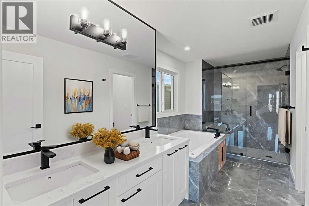 Welcome to your ideal family retreat! This thoughtfully designed detached home features 5 bedrooms and 4 bathrooms, offering the perfect balance of modern comfort and classic appeal in the desirable Air Ranch community. The main floor showcases an open-concept kitchen with stainless steel appliances, quartz countertops, a large island, walk-through pantry, and abundant cabinetry. Spacious living and dining areas create a seamless flow, ideal for entertaining or everyday family living. Also on the main level is a generous office that can easily serve as a fifth bedroom, along with a stylish 4-piece bathroom and a functional mudroom.Upstairs, you’ll find four well-appointed bedrooms and a large flex space, all filled with natural light. The primary suite offers a spa-inspired ensuite and walk-in closet, while three additional updated bathrooms with modern fixtures provide comfort and convenience for the whole family. Located close to schools and recreational amenities, this home delivers both tranquility and everyday convenience. Don’t miss your chance to make this exceptional property your own! (id:58070)