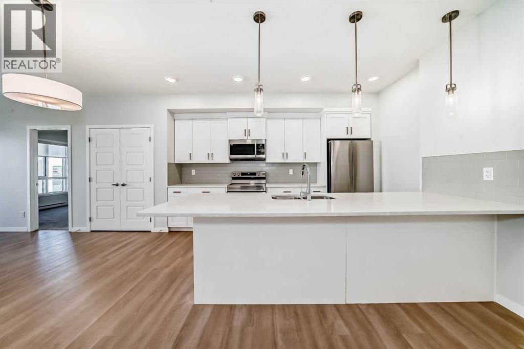 Nestled in the vibrant and growing Seton community, this immaculate 2-bedroom, 2-bathroom condo, built in 2023, offers a combination of contemporary design, luxurious finishes, and unparalleled convenience. Located on the (4th) TOP FLOOR, this condo boasts exceptional panoramic views that can be enjoyed from the spacious private balcony, making it the ideal place to relax and unwind. The interior is thoughtfully designed with high-end finishes, including stunning quartz countertops and stainless steel appliances in the kitchen, which add an elegant touch and provide plenty of space for meal prep and entertaining. The open-concept living and dining area is bright and inviting, with large windows allowing natural light to flood the space, creating a warm and welcoming atmosphere. The two generously sized bedrooms provide the perfect retreat, with the primary bedroom featuring a private ensuite bathroom for added convenience. Both bathrooms are beautifully finished with contemporary fixtures and sleek finishes, creating a spa-like atmosphere. The condo also includes a convenient wall-mounted AIR CONDITIONER to keep you cool during warm summer months, ensuring comfort throughout the year. This condo also offers a titled underground parking that adds to the convenience for the homeowners. One of the standout features of this condo is the expansive private balcony, offering breathtaking views of the surrounding area. Whether you’re enjoying a morning coffee, unwinding after a busy day, or entertaining guests, this outdoor space adds a unique touch to the home, enhancing its overall appeal. Not only is this condo a peaceful retreat, but it also offers exceptional convenience. Located just steps away from a variety of amenities, including a bustling plaza, a nearby gas station, and a lush park directly across the street, you’ll have everything you need right at your doorstep. Whether you’re running errands, enjoying a walk in the park, or grabbing a bite to eat, this locati on offers it all. This is an ideal home for first-time buyers, small families, or investors looking for a modern and desirable property in one of Calgary’s most dynamic neighborhoods. ***Don’t miss the chance to own this pristine, move-in-ready condo that combines luxury, convenience, and an unbeatable location.*** (id:58070)