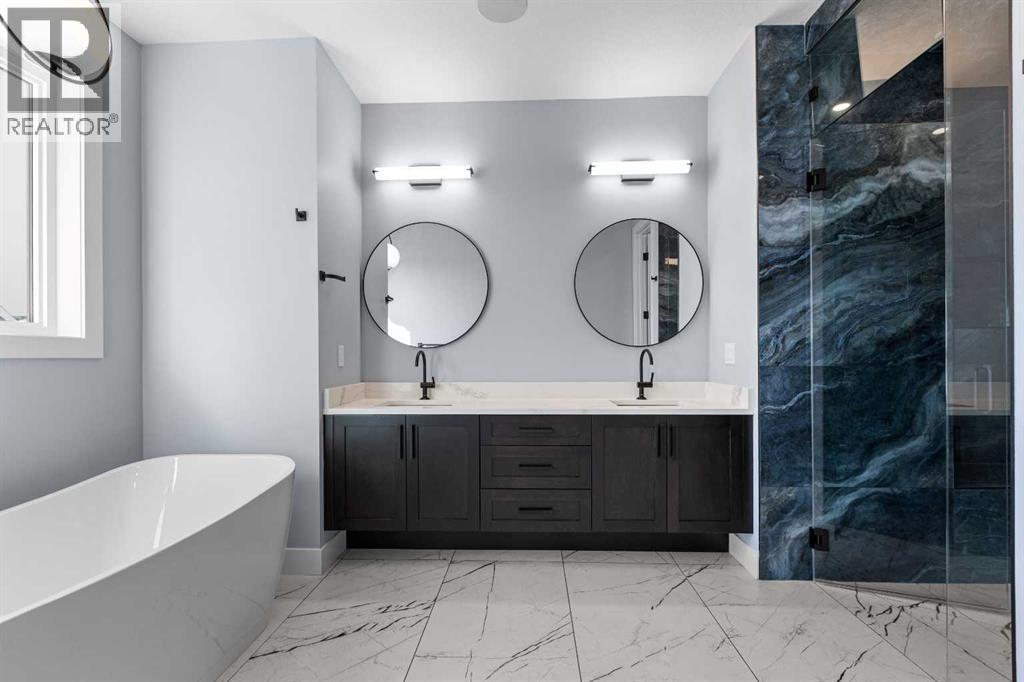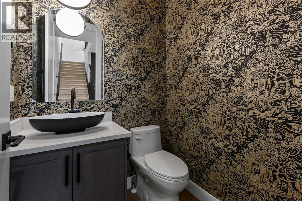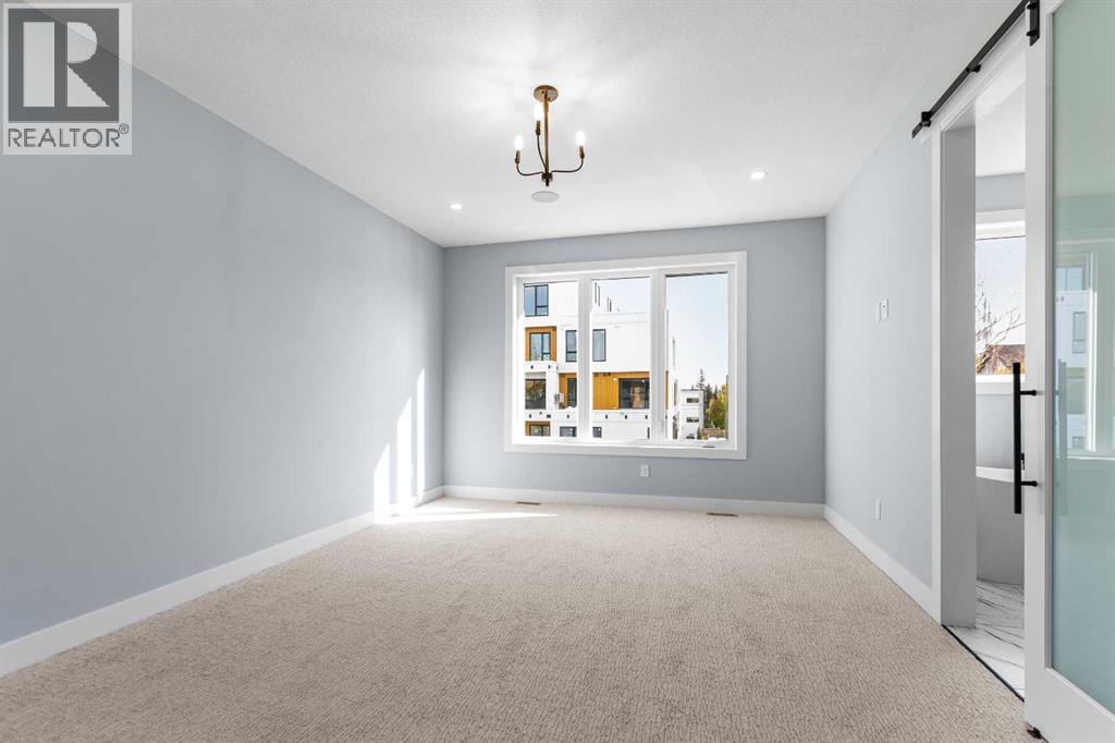 Experience refined living in this stunning 3-bedroom, 4-bathroom semi-detached residence, offering over 2,800 sq. ft. of thoughtfully designed space across three levels. With immediate possession, this home combines architectural sophistication, modern innovation, and exceptional craftsmanship in one of Calgary’s most desirable inner-city communities.The main floor welcomes you with 10-foot ceilings, rich hardwood flooring, and abundant natural light streaming through energy-efficient triple-pane windows. A bright main-floor den with large picture windows provides the perfect setting for a home office or reading retreat, elegant, spacious, and filled with light.Throughout the home, every element has been curated to achieve a seamless blend of luxury and function. QUARTZ countertops, shaker-style cabinetry with under-cabinet lighting, soft-close drawers/cupboards, and black and gold Tenzo fixtures elevate every space. The gourmet kitchen serves as the centerpiece, featuring a fireclay farmhouse sink, built-in spice racks, and a large island with concealed electrical outlets. A discreet dumbwaiter elevator connects the garage and lower level directly to the kitchen, adding effortless practicality to everyday living.The powder room is a bold design statement, complete with designer wallpaper, a gold leaf ceiling, floating vanity, and backlit mirror — a perfect reflection of modern sophistication.The primary suite offers a private retreat with a freestanding soaking tub, dual sinks, floating vanities with in-shelf lighting, oval mirrors, and a separate custom-tiled shower. Each additional bathroom continues this standard of excellence with custom tilework, floating vanities, and luxury fixtures throughout.A custom bar area on the lower level with black and gold metal mesh detailing, floating shelving, and a built-in wine display creates an elegant space for entertaining or relaxing. Outside, a spacious patio and lush green space extend the living area, perfect for outdoor gatherings and quiet evenings alike.Situated just minutes from Downtown Calgary, steps from Shaganappi Golf Course, and blocks from the vibrant 17th Avenue SW corridor, this residence offers the perfect blend of urban energy and timeless comfort. Within walking distance to the LRT, top-rated schools, and shopping, it defines elevated inner-city living.A home of rare distinction , where craftsmanship, light, and modern luxury converge. (id:58070)