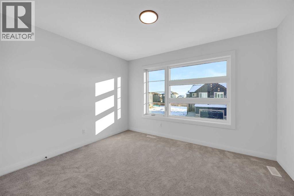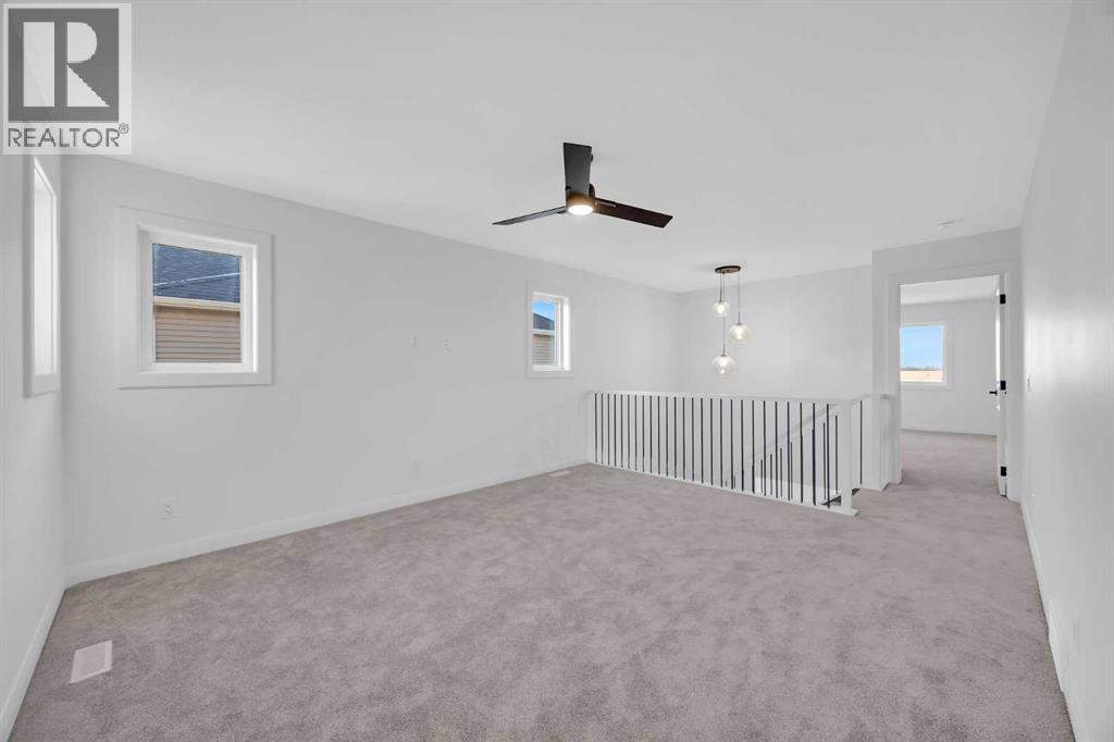 Welcome to the York by Broadview Homes in Painted Sky, Langdon, offering 2,096 square feet above grade, a rare triple attached garage, and immediate possession. Homes with this size, layout, and garage capacity are limited in Langdon. The main floor is designed with purpose. The foyer sits beside a dedicated flex room, creating true separation for a home office or private workspace. At the rear of the home, the open kitchen, dining area, and living room are positioned for connection and functionality. The kitchen is anchored by a large central island and features a walk-through pantry that connects directly to the mudroom and garage, a practical detail that supports everyday living. The living room is centered around an electric fireplace finished with floor-to-ceiling tile, creating a strong architectural focal point and a clean, modern statement. Rear windows bring in natural light and enhance the overall sense of space. Upstairs, the centrally located bonus room creates privacy between the primary suite and the additional bedrooms. The primary retreat includes a walk-in closet and an ensuite with double vanities, a soaker tub, and a tiled shower. Two additional bedrooms, a full bathroom, and a dedicated second-floor laundry room complete the upper level with a layout that is efficient and well considered. The triple attached garage offers exceptional capacity for vehicles, storage, or hobby use, a feature rarely available in this segment of the Langdon market. The unfinished basement provides long-term flexibility for future development. Located in Painted Sky, residents enjoy access to parks, pathways, playgrounds, and walking distance to Langdon School and Horseshoe Crossing High School. Just 20 minutes east of Calgary and 15 minutes to Chestermere, this community offers small-town living with convenient commuter access. (id:58070)