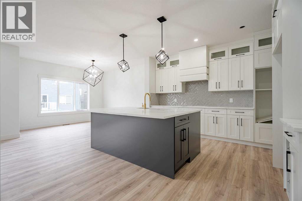 Quick Possession and Brand New with Triple Garage on a spacious lot with 51' frontage and 120' deep. Quick possession is available, and a Fall Special allows buyers to inquire about discount pricing to add a complete basement development. 2,372 sq.ft. two story with attached triple garage (28' x 23') and side access walk-up basement. Bright, open plan with spacious main level dining nook, kitchen with island and walk-through pantry (wood shelving) to spacious mud room (wood bench + shelves), family room with built-in shelves and fireplace, private Work From Home Office, two piece bath and spacious open cathedral front entry. Three bedrooms on the upper level including 15'9" x 14' Primary suite with raised tray ceiling and large walk-in closet (wood shelving), 5 piece Ensuite, bonus room with raised tray ceiling and fireplace, laundry room and 4 piece main bath. Bright undeveloped side access basement has high efficiency mechanical, roughed-in bath plumbing, and large windows for lots of natural light. Will be nicely appointed with ceiling height cabinets, quartz counter tops, upgraded lighting, vinyl plank, tile + carpet flooring, wood shelving in all closets, upgraded exterior and stonework. Includes GST (rebate to builder), new home warranty, rear deck with vinyl cover, front sod + tree, and $5,000 appliance allowance. Great family community with school, park and pond nearby, recreation facilities, and a quick commute to Airdrie, Balzac Mall, Calgary, or hospital nearby at Didsbury. A little drive, a lot of savings! (id:58070)