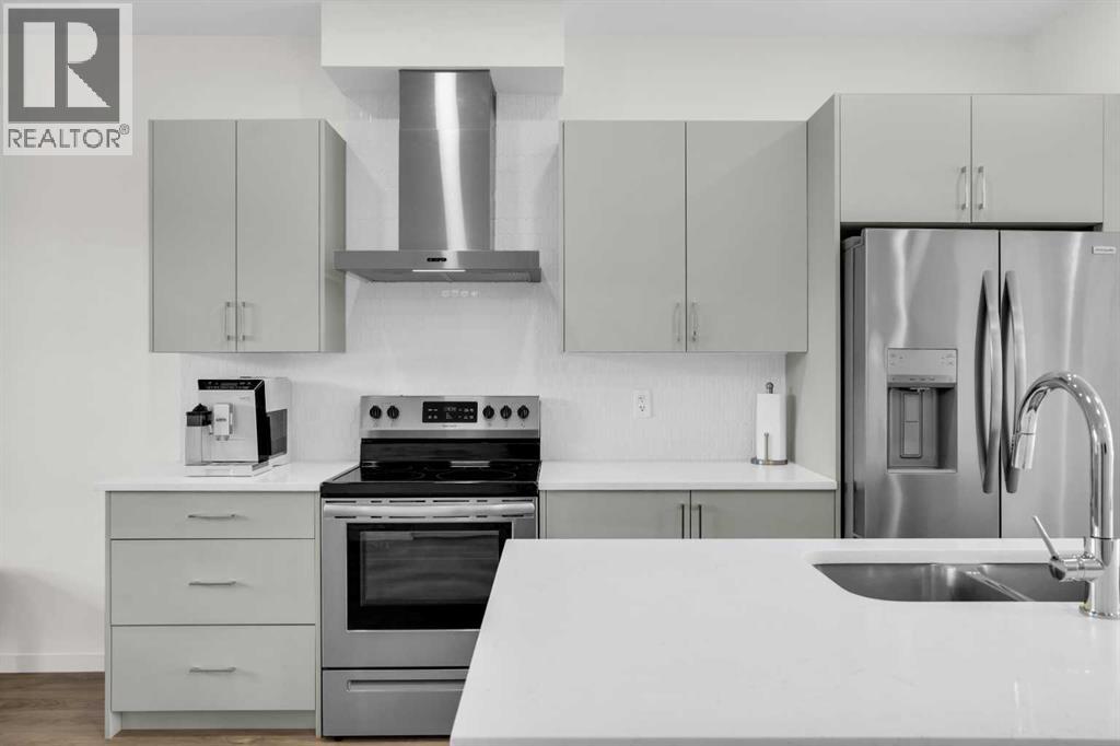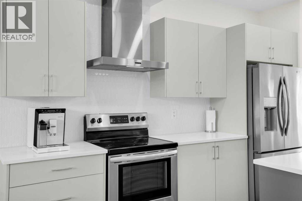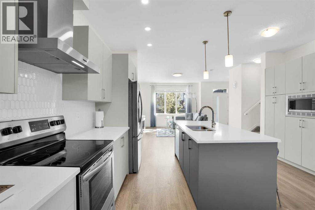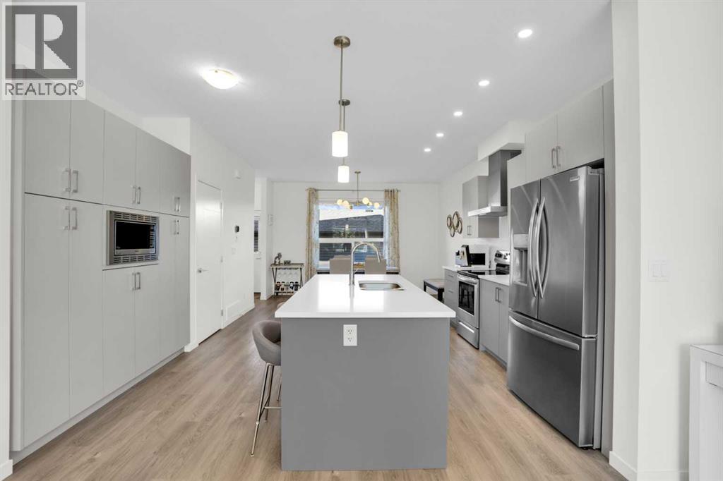 Welcome home to park-side living in Southpoint — with NO CONDO FEES.This bright and beautifully maintained 1,665 sq ft rowhome is ideally located directly across from a green space in the sought-after community of Southpoint, Airdrie, offering an exceptional blend of lifestyle, convenience, and value. The open-concept main floor features quartz countertops, stainless steel appliances, and an upgraded French-door refrigerator, creating a warm and functional space perfect for everyday living and entertaining. Upstairs, you’ll find 3 bedrooms plus a dedicated office, including a spacious primary bedroom overlooking the park, complete with a walk-in closet and dual-sink ensuite. This home truly stands out with central air conditioning, a landscaped yard, stone-paved pathway, and full wooden fencing for added privacy — upgrades not commonly found in neighboring units. A smart thermostat ensures easy, year round climate control. A double detached garage with double parking pad provides excellent everyday convenience, while the unfinished basement is clean and ready for future development. Enjoy close proximity to schools, walking paths, green spaces, and a dog park, with quick access to Coopers Promenade and Deerfoot Trail just 3 minutes away, making commuting to Calgary fast and convenient. (id:58070)