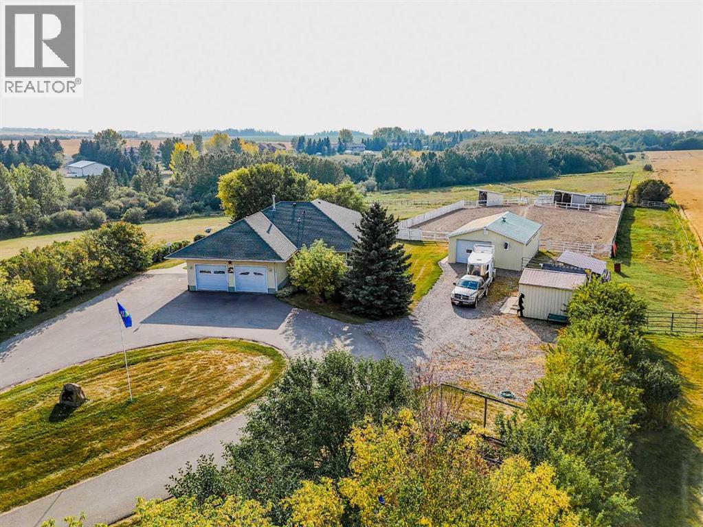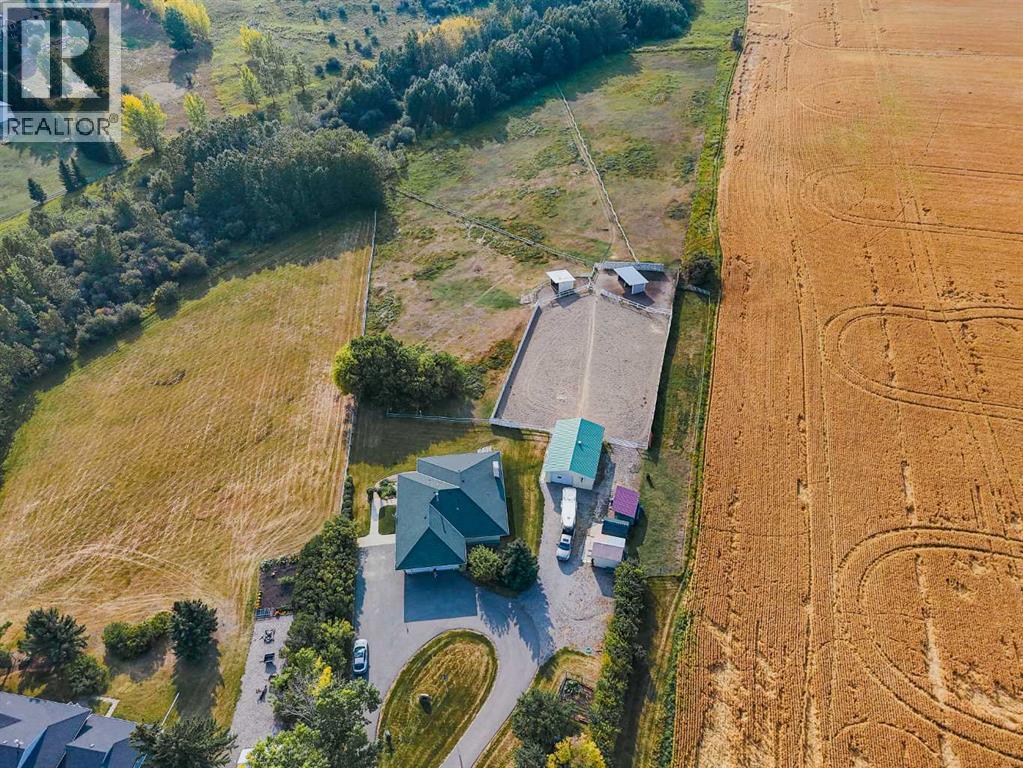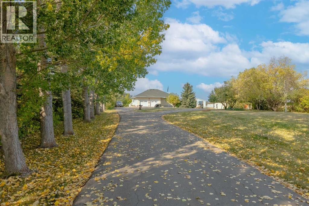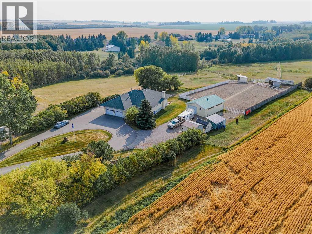 THIS COULD BE YOUR NEXT HOME!! If you are looking for an acreage on the edge of Didsbury and a private, secluded place to call your next home you will want to check out this exceptional property! The access is completely paved and as you enter the property you will notice the circular driveway and immaculate landscaping. This home has undergone renovations over recent years and has a view that is just UNREAL!! Step inside and you will appreciate the attention to detail and lots of thoughtful features. The kitchen was upgraded 5-6 years ago and has maple cabinets and the nicest spot to sit and enjoy that view. There is a sitting/family room ,living room with hardwood floors, formal dining room with bay window/bench seat and main floor laundry with half bath and sink. There is a large primary bedroom with walk in closet and 3 pc ensuite plus another bedroom, main bath and welcoming entrance. The walk out basement does has a legal suite but could be opened up again if you needed the whole home to live in. This area has a lovely stone terrace with pond out back which would be a great place to take in more of that view. It also has a kitchen with dining area, family/living room, 2 bedrooms, bathroom, laundry and mechanical room (lots of storage here too!). The yard is a great place to have a few horses since there are 2 horse shelters and a shop/barn with concrete floors and overhead heat. There is also a few sheds and cross-fencing and lots of wide open spaces. This is a very quiet, secluded property yet it is just on the edge of town so you truly have the best of both worlds here. Picture yourself on the deck or stone terrace having your morning coffee and soaking in the quiet, beautiful yard. This time of year it is so lush and green and it is equally pristine in winter too! So many great features in a really great location. Call today to book your viewing and check it out for yourself! (id:58070)
