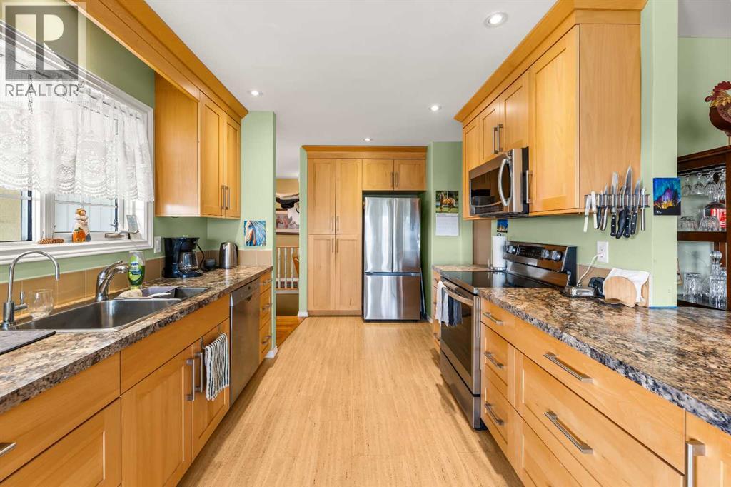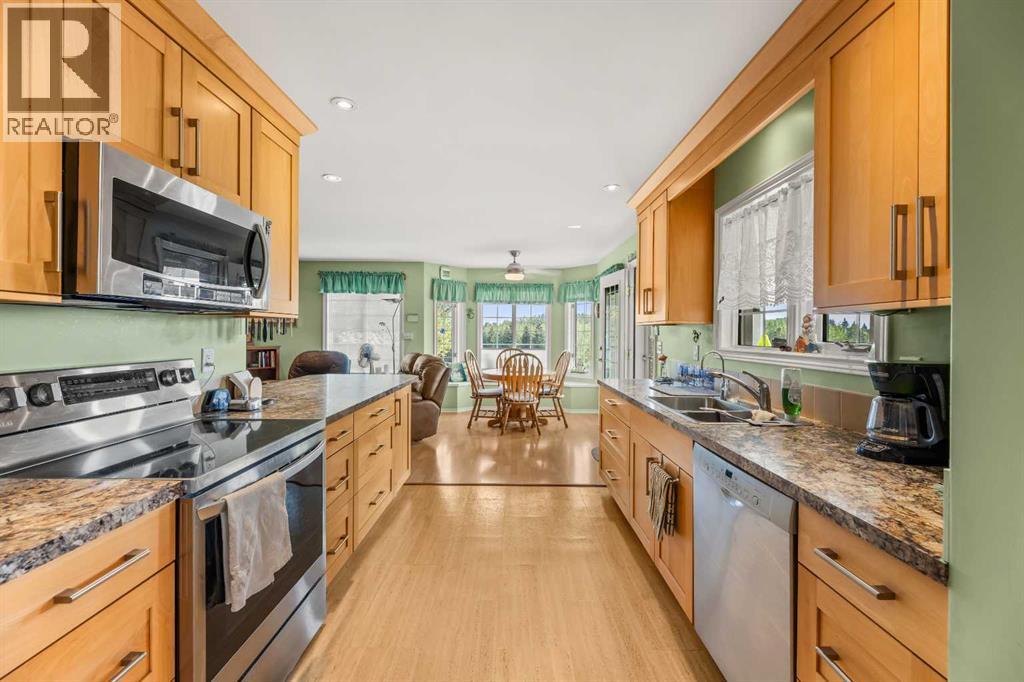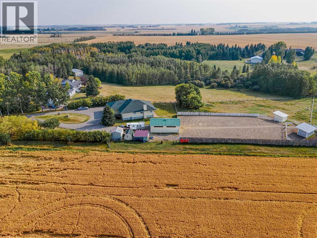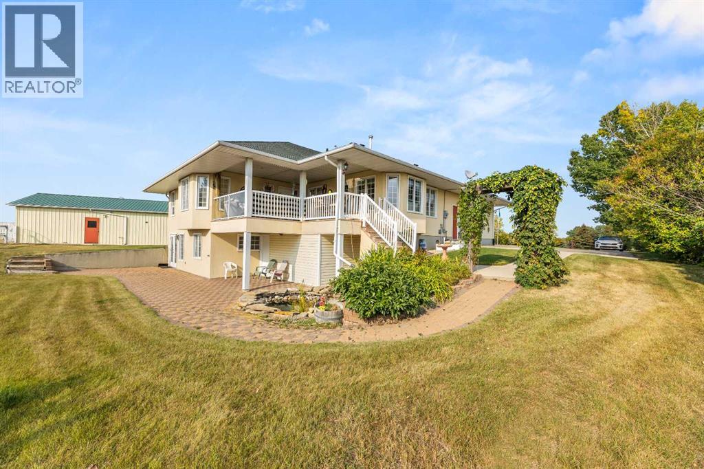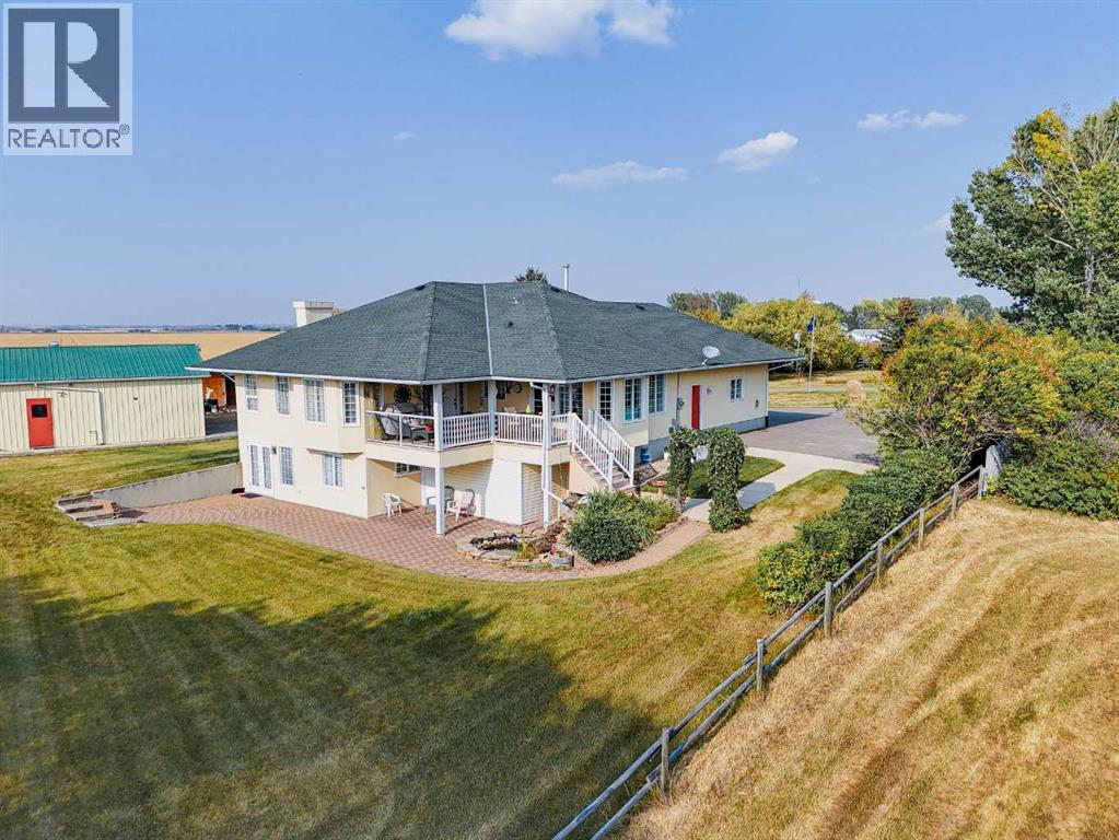 THIS COULD BE YOUR NEXT HOME!! If you are looking for an acreage on the edge of Didsbury and a private, secluded place to call your next home you will want to check out this exceptional property! The access is completely paved and as you enter the property you will notice the circular driveway and immaculate landscaping. This home has undergone renovations over recent years and has a view that is just UNREAL!! Step inside and you will appreciate the attention to detail and lots of thoughtful features. The kitchen was upgraded 5-6 years ago and has maple cabinets and the nicest spot to sit and enjoy that view. There is a sitting/family room ,living room with hardwood floors, formal dining room with bay window/bench seat and main floor laundry with half bath and sink. There is a large primary bedroom with walk in closet and 3 pc ensuite plus another bedroom, main bath and welcoming entrance. The walk out basement does has a legal suite but could be opened up again if you needed the whole home to live in. This area has a lovely stone terrace with pond out back which would be a great place to take in more of that view. It also has a kitchen with dining area, family/living room, 2 bedrooms, bathroom, laundry and mechanical room (lots of storage here too!). The yard is a great place to have a few horses since there are 2 horse shelters and a shop/barn with concrete floors and overhead heat. There is also a few sheds and cross-fencing and lots of wide open spaces. This is a very quiet, secluded property yet it is just on the edge of town so you truly have the best of both worlds here. Picture yourself on the deck or stone terrace having your morning coffee and soaking in the quiet, beautiful yard. This time of year it is so lush and green and it is equally pristine in winter too! So many great features in a really great location. Call today to book your viewing and check it out for yourself! (id:58070)