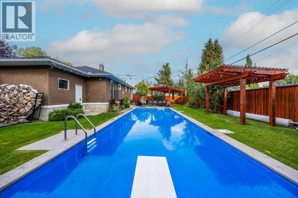 Tucked away on a quiet cul-de-sac in the highly sought-after community of Wildwood, this beautifully updated 1,258 sq ft bungalow offers a perfect blend of style, comfort, and outdoor living. Large windows throughout fill the home with natural light, with the spacious living room showcasing huge windows that frame the view of the front yard. Hardwood floors run through the main level, complemented by a front den that’s ideal for a home office or music room. The kitchen impresses with a centre island, loads of cabinetry, a glass tile backsplash, and crisp white cupboards, opening to the dining room with direct access to your private backyard oasis. Here, you’ll find a sparkling pool, two pergolas with ambient lighting, a spacious deck, lush perennial gardens, and green space designed for both entertaining and relaxation. The main floor hosts 2 generous bedrooms and 2 full baths, while the fully developed basement offers 2 additional bedrooms, a full bath, and a large rec room with a cozy fireplace and dedicated gym area. Combining a prime location with a functional layout and resort-style yard, this property is truly a rare find in one of Calgary’s most desirable neighbourhoods. (id:58070)