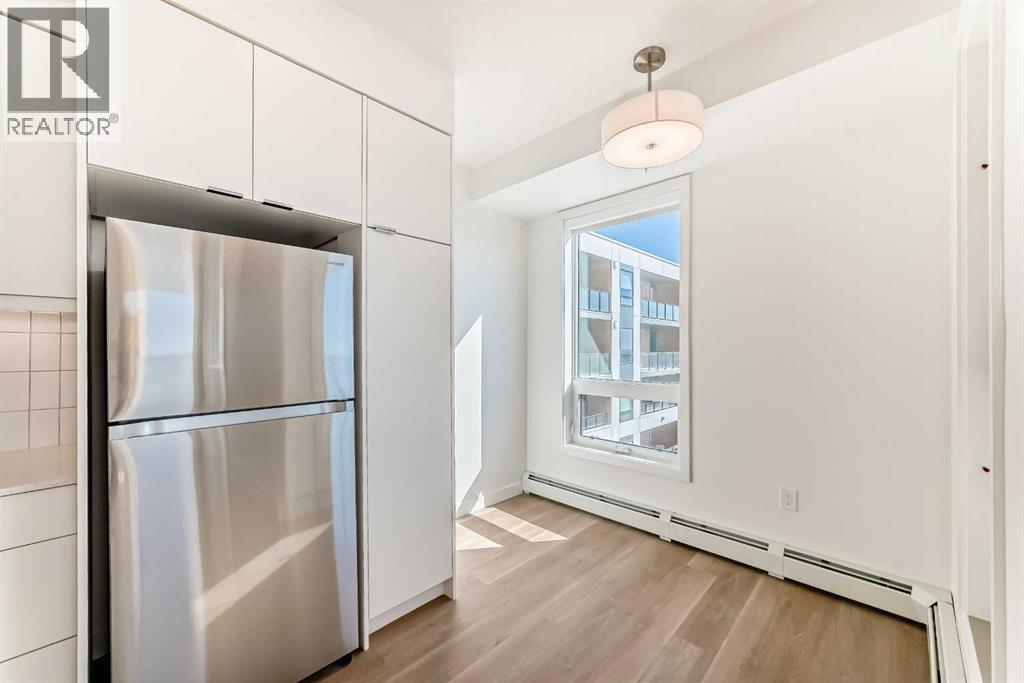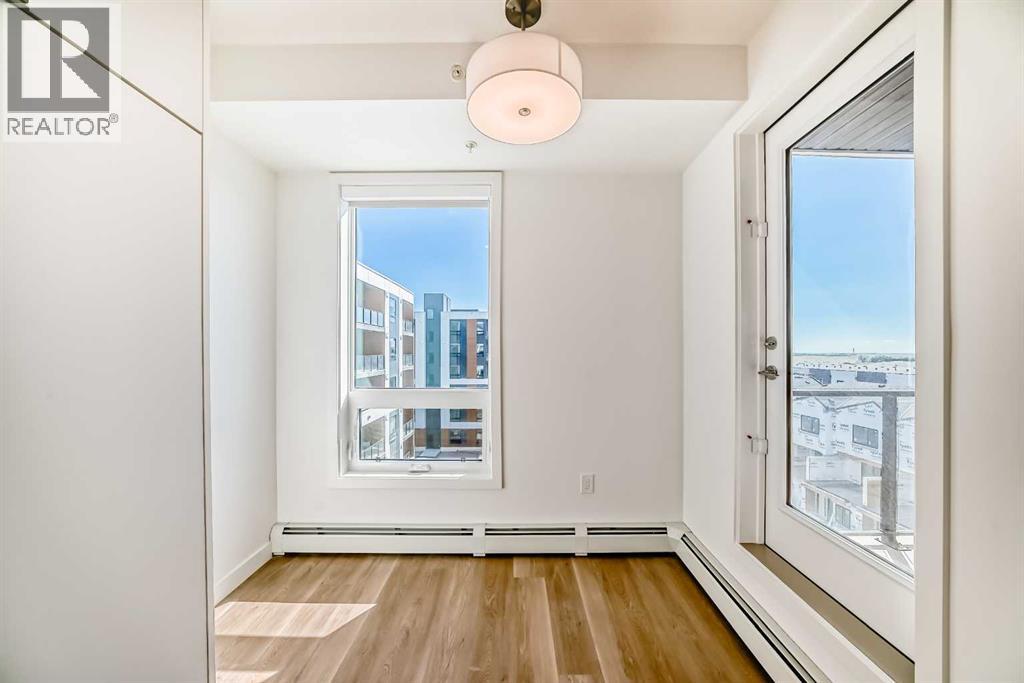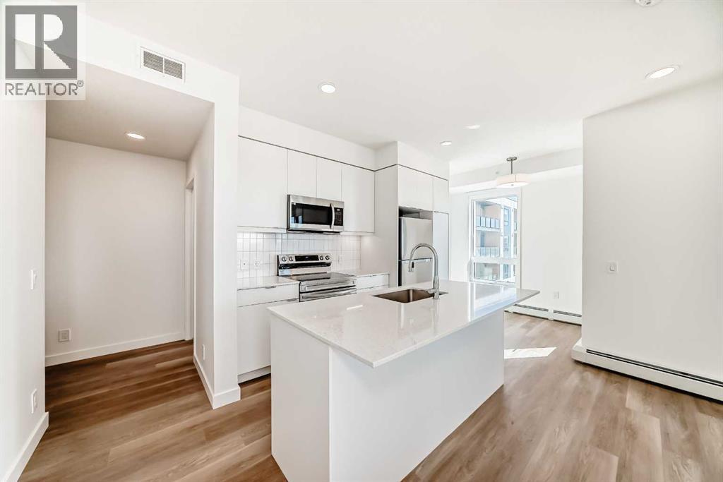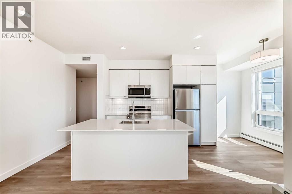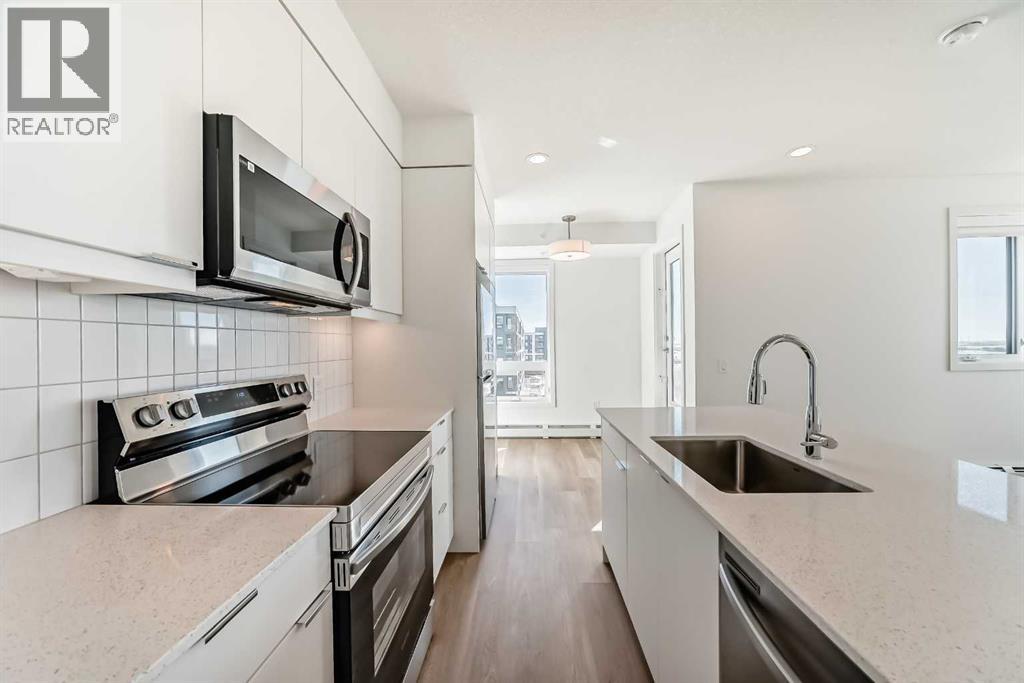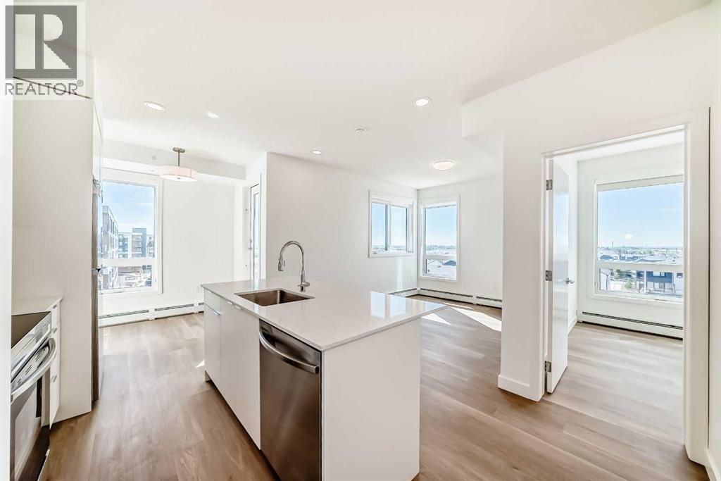 CORNER UNIT WITH 2 ENSUITE BATHROOMS. This bright 5th-floor corner unit features two spacious bedrooms, each with its own walk-in closet and ensuite bathroom. Located in East Hills Crossing, the home also includes underground parking and a storage locker. Enjoy being just steps from East Hills Shopping Centre (Costco, Walmart, Cineplex, banking), parks, and walking trails, with quick access to Stoney Trail—and only a 20-minute drive to downtown Calgary.Inside, the open-concept layout offers sleek white cabinetry, a large eating bar, and a dedicated dining space. Expansive corner windows flood the condo with natural light, while south and east views highlight its prime position. The dining area opens to a private balcony, perfect for morning coffee or relaxing on sunny afternoons.With in-suite laundry, titled underground parking, and a separate storage unit, this condo delivers a complete package for first-time buyers, downsizers, or investors. Book your private showing today! (id:58070)
