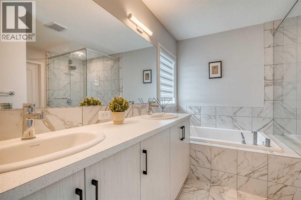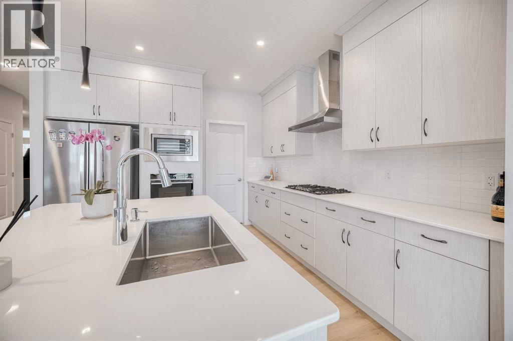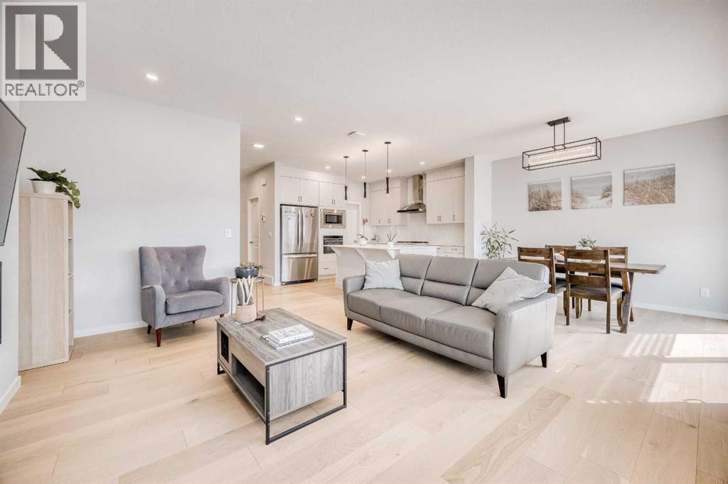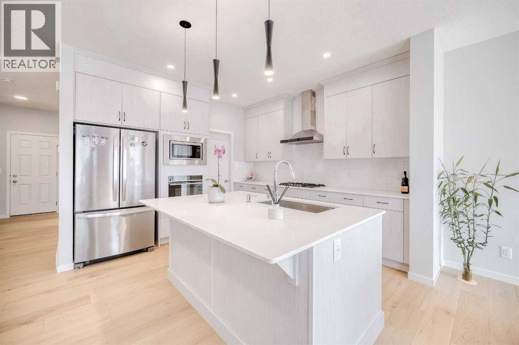 Unobstructed sunshine promotes lush greenery during spring and summer, while in winter the sun fills the entire living room and master bedroom with light and warmth.On the main floor, natural light pours through upgraded hugesouth-facing windows and patio doors, accentuating the bright,open-concept layout. The elegant living room, anchored by adesigner fireplace, flows seamlessly into the showpiece gourmetkitchen, which features:• Premium built-in Fisher & Paykel appliances• Sleek quartz countertops• A large center island perfect for entertaining• Dual sliding patio doors that extend dining and entertainingto the outdoorsA private main-floor office with east facing window offers apeaceful and productive space for working from home.The basement, completed by the builder, includes two spaciousbedrooms and a private side entrance—making it an idealmortgage helper. A Brick Paved path adds easyexterior access. Inside, high-end engineered hardwood flooringand custom cabinetry enhance the sense of quality and care.Upstairs, you'll find:• Three spacious bedrooms, each with walk-in closets andinterior lighting• A large bonus room, ideal for family lounging or play• A luxurious 5-piece ensuite in the primary bedroom featuringfull tile finishes, a spa-inspired bath, and a custom walk-incloset• A beautifully upgraded guest bathroom with a fully tiledwalk-in showerOutside, the professionally landscaped yard is ready forrelaxing or entertaining. The home is perfectly located close toparks, shopping, and offers quick access to Stoney Trail forcommuting ease.Future-ready for families— Moraine (Ambleton) communityplan includes a Catholic high school and elementary school,providing long-term value and peace of mind.Don't miss this exceptional opportunity to own a move-inready, feature-rich home in one of Calgary’s fastest-growingcommunities. Book your private showing today! (id:58070)
