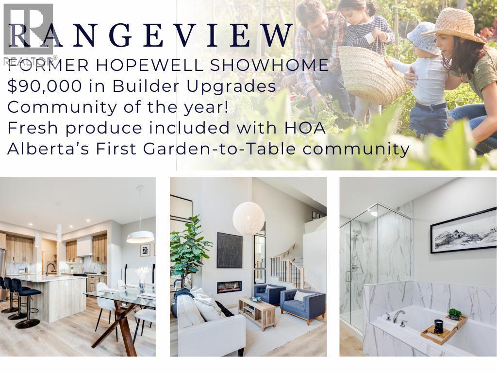 **Open House Saturday Nov. 15th 2-4pm and Sunday Nov. 16th 1-3 pm** Welcome to this exceptional former showhome, in the award-winning community of Rangeview—Calgary’s first garden-to-table community. Surrounded by scenic wetlands and ponds, Rangeview offers a lifestyle rooted in connection to nature, with orchards, greenhouses, and community gardens that deliver fresh produce right to residents through its unique HOA garden delivery program. New home warranties included with this home.This stunning floorplan offers over 2,100 sq. ft. of refined living space with over $90,000 in upgrades, all the benefits of building a brand-new home without the stress of the building process, landscaping done, ready to move in. Available for immediate possession, move in before the holidays - think of the Christmas tree in main floor living room! It features triple-pane windows for superior energy efficiency, R50 insulation, a 96%+ high-efficiency furnace, low-flow fixtures, and advanced framing with a continuous vapor barrier. Each home is EnerGuide modelled and tested, ensuring verified performance, comfort, and peace of mind.The open-to-above lifestyle room impresses with soaring ceilings and a striking floor-to-ceiling tiled electric fireplace. The kitchens stunning ceiling-height cabinets, a custom wood clad hood fan, quartz countertops, and Whirlpool stainless steel appliances, with a walk-through pantry connecting to the mudroom for added convenience. The dining area with built-in bench seating opens onto a fenced backyard and deck with skirting, perfect for gatherings.A main floor office/ Flex room with barn door. Upstairs offers three bedrooms, a bonus room, and laundry with quartz counters. The primary suite features a massive window, walk-in closet with custom shelving, and a 5-piece ensuite with two sided 10mm glass shower, floor-to-ceiling shower tile, and an extended soaker tub and enclosed water closet A secondary bedroom includes a feature wall and walk-in close t. Superior finish standards include 9’ foundation walls, hard-surface flooring, and with a Wi-Fi Ring doorbell, USB/USB-C ports, and smart garage opener. This home also includes extra pot lights throughout, spindle rail staircases, air conditioning, in-ground irrigation, Gemstone lights, a painted double garage, upgraded carpet underlay, and window coverings. The undeveloped basement is ready for your ideas, designed for a future development or legal suite with a side entry already in place.Ideally located near Seton, Auburn Bay, and Mahogany, with quick access to Stoney Trail and Deerfoot Trail, this home combines energy efficiency, craftsmanship, and community living. Built by Hopewell Residential, a Certified Master Builder with over 30 years of award-winning experience, this Rangeview home delivers a lifestyle built on quality, comfort, and sustainability. (id:58070)