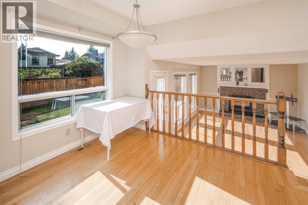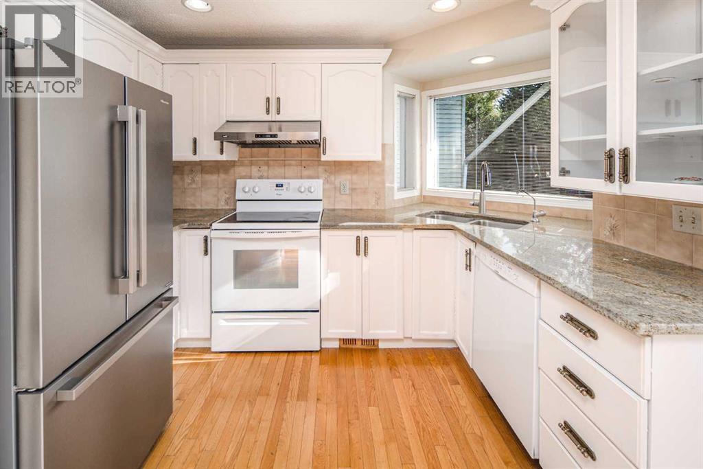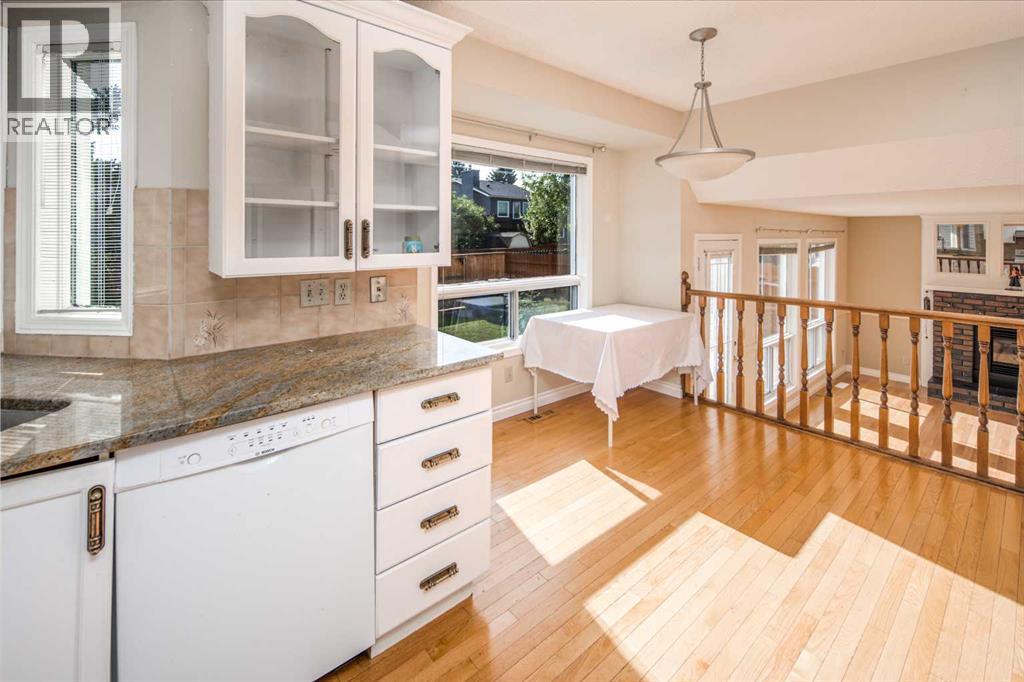Welcome to this wonderful two-storey home, ideally located in the heart of Sundance—just steps from top-rated schools, scenic parks, and the highly sought-after Lake Sundance. From the moment you step inside, you’ll be greeted by soaring vaulted ceilings and an open-concept layout that fills the home with natural light. The elegant formal living and dining rooms provide the perfect setting for entertaining, while the spacious kitchen features granite countertops, oak cabinetry, a garden window, and a charming breakfast nook overlooking the lush, private backyard. Relax in the sunken family room with its cozy brick gas fireplace, or enjoy seamless indoor-outdoor living with direct access to the sunny south-facing patio—ideal for summer BBQs and family gatherings. The main level also offers a convenient laundry room and an updated 2-piece bath. Upstairs, you’ll find three generously sized bedrooms, including a serene primary retreat with a 3-piece ensuite. A bright skylight in the hallway enhances the upper level with added warmth and natural light. The fully developed basement extends the living space with a massive rec room—perfect for a playroom, home gym, or media space. Recent upgrades include new laminate flooring, fresh modern paint in the living room, newer shingles, a high-efficiency furnace, a newer garage door, and several new windows. This home is perfectly situated just steps from Lake Sundance, Horizon Tennis Court, Sundance Park, Stoney Trail, shopping, Fish Creek Park, restaurants, churches, and more! Book your private showing today! (id:58070)