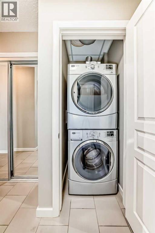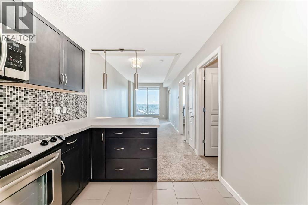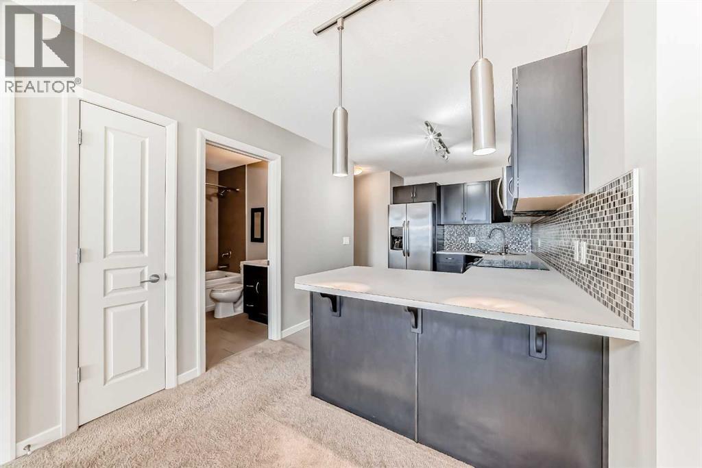 Welcome to Alura. Vacant and move-in ready, this meticulously maintained one-bedroom unit boasts beautiful open view to the southeast. Great open concept floorplan. Kitchen has ample cabinet and counter space, stainless steel appliances and a breakfast bar. Good-sized dining and living room. Spacious bedroom next to a 4-piece bath. Step outside onto your spacious balcony ideal for morning coffee or unwinding after a long day. This unit has a convenient in-suite laundry, one titled underground parking stall, one assigned storage locker, central air-conditioning, fitness facilities, bike storage, concierge service, common outdoor and patio area. Excellent location close to bus stops, grocery stores and top-rated restaurants. (id:58070)