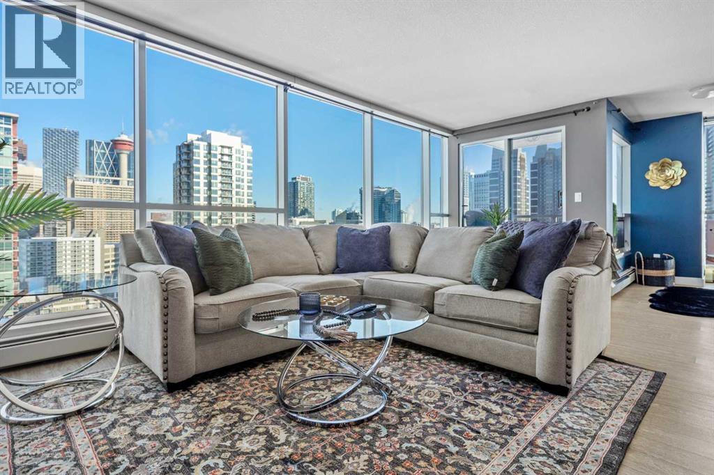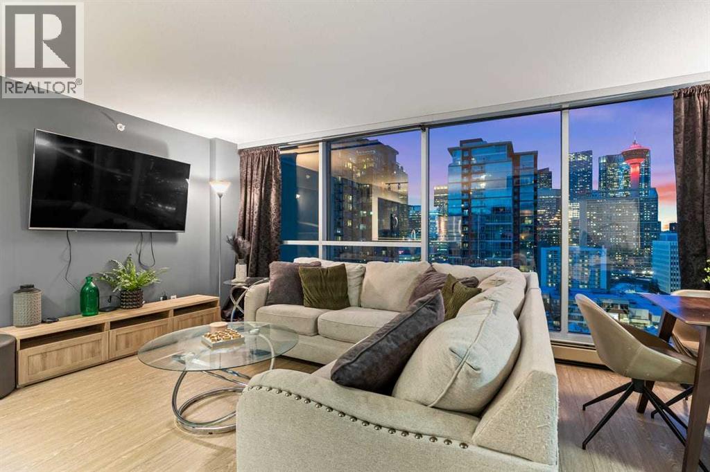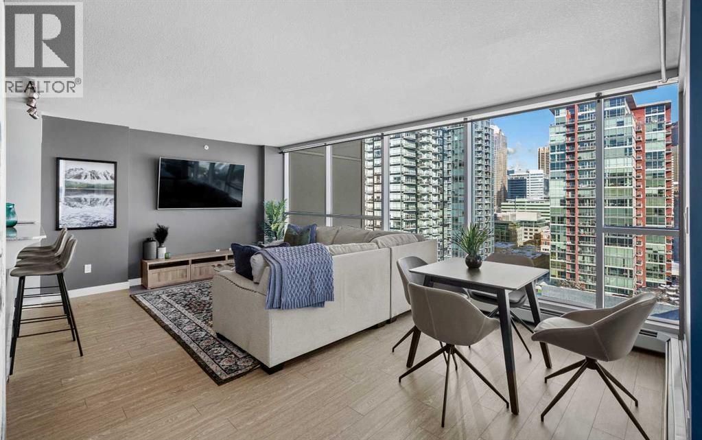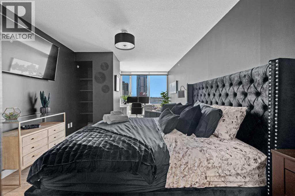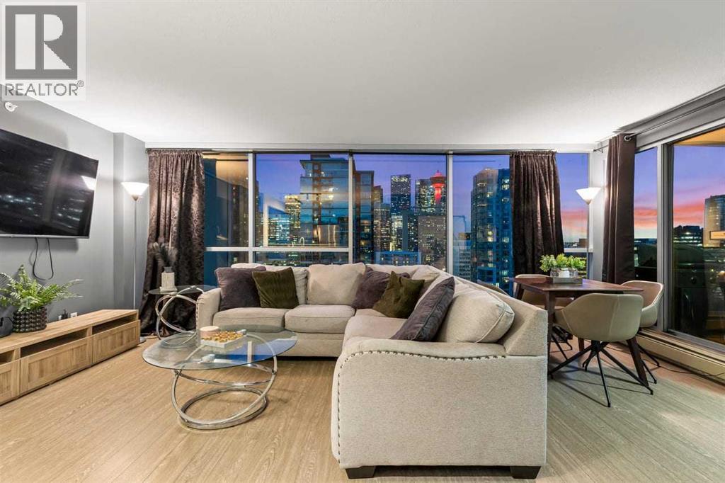Stunning downtown skyline views! This ultra modern 2 bedroom 2 bathroom property features a wide open concept perfect for entertaining. Floor to ceiling windows allow full views of the beautiful downtown as well as Calgary stampede grounds. This concrete building has fantastic walkability to 4th St shops, restaurants, is a short stroll to downtown and has great access to everything your lifestyle needs. There's also titled, heated underground parking, gas BBQ hook up and AC to keep you cool in the summer, call today to view! (id:58070)