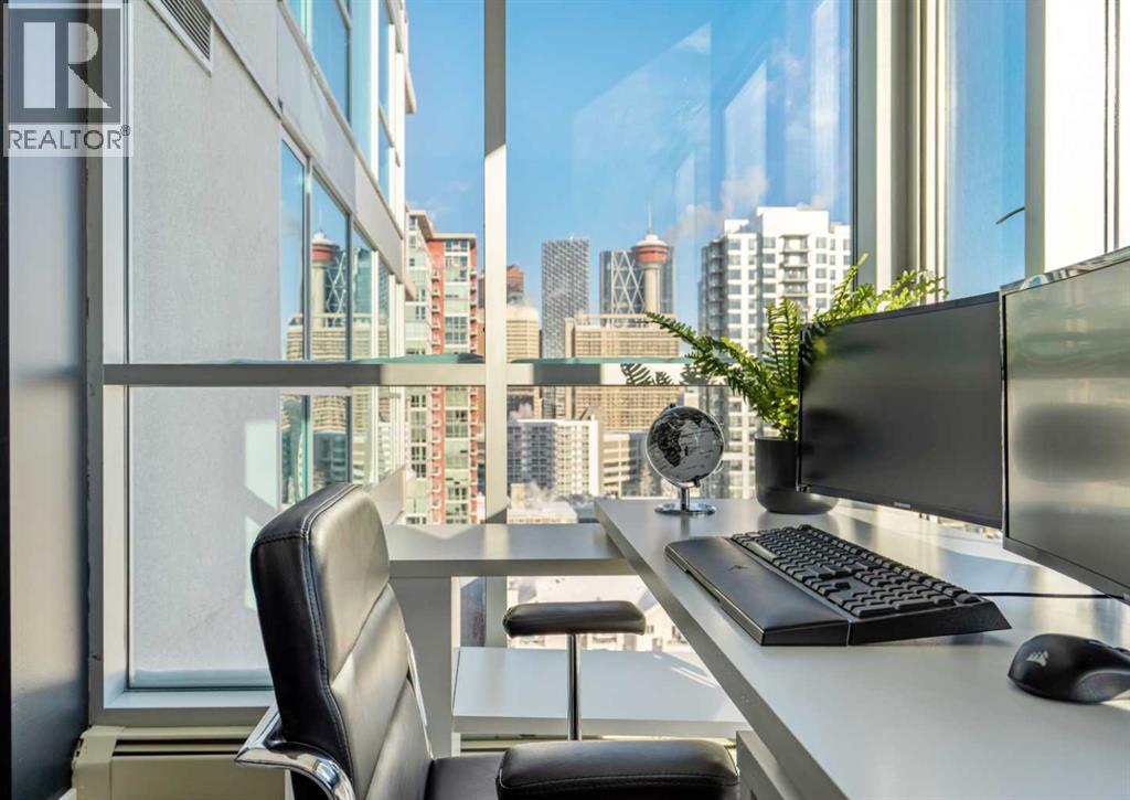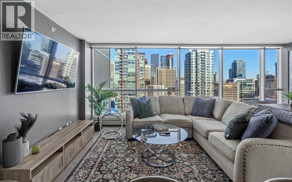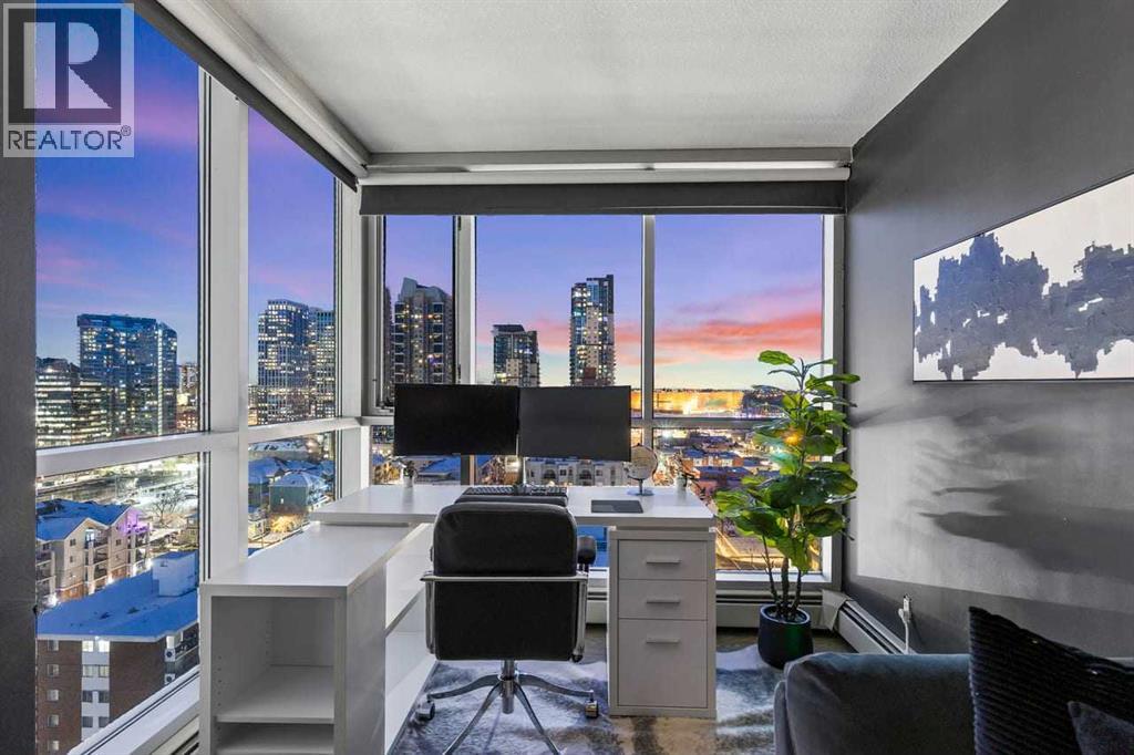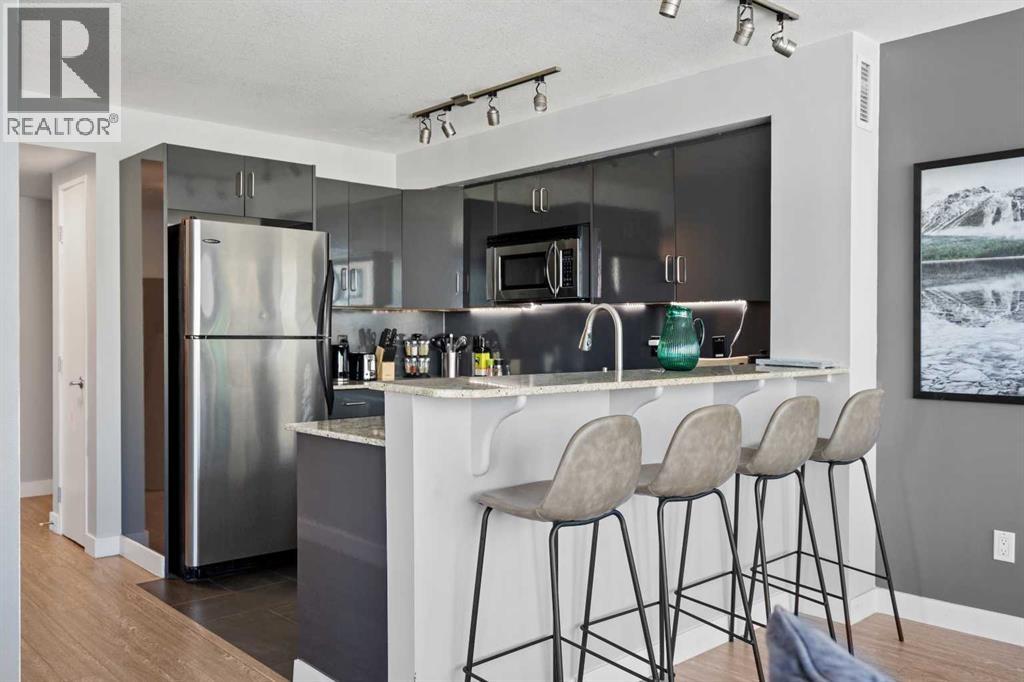 Stunning downtown skyline views! This ultra modern 2 bedroom 2 bathroom property features a wide open concept perfect for entertaining. Floor to ceiling windows allow full views of the beautiful downtown as well as Calgary stampede grounds. This concrete building has fantastic walkability to 4th St shops, restaurants, is a short stroll to downtown and has great access to everything your lifestyle needs. There's also titled, heated underground parking, gas BBQ hook up and AC to keep you cool in the summer, call today to view! (id:58070)