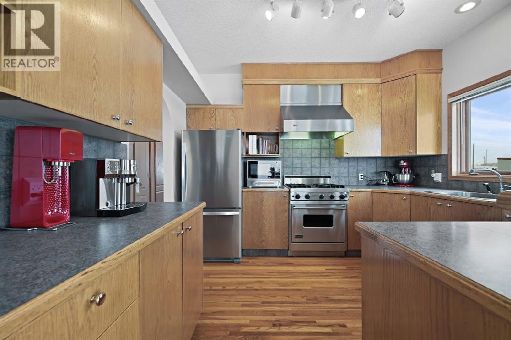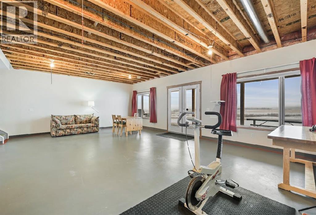 Exceptional 24.02-acre property with breathtaking 360° views of the countryside, sunrises, sunsets, and the Rocky Mountains. Fully fenced and gated, this former licensed commercial operation features extensive concrete walkways, patios, and aprons. A year-round headwater spring feeds three connected ponds with agricultural water rights. The home offers a wrap-around deck, walkout lower level, hardwood floors, 3 bedrooms, multiple baths, a Vermont Castings wood-burning heater, spacious rec room, and ample storage. A well-designed fully PERMITTED commercial complex (cost to build today $800k) includes a 2-storey COMMERCIAL CODE building, warehousing/storage, attached via a reception/office is a huge workshop with 12’x12’ overhead door. All are extensively serviced with hydronic heating, heated concrete floors, A/C (select buildings), Vacu-Flo, radon mitigation, security and intercom systems, hail-resistant roofing, and robust utilities. Well and 3,000-gallon cistern, softened and distilled water, multiple hydrants, stock waterer, annually maintained septic, grid-tied SOLAR system ($70k) with surplus power credits, and standby diesel generator.Ideally located with quick access to Calgary & Okotoks, also on a school bus route, with hayed fields and excellent potential for subdivision, secondary suite, or home-based business (County approval required). (id:58070)