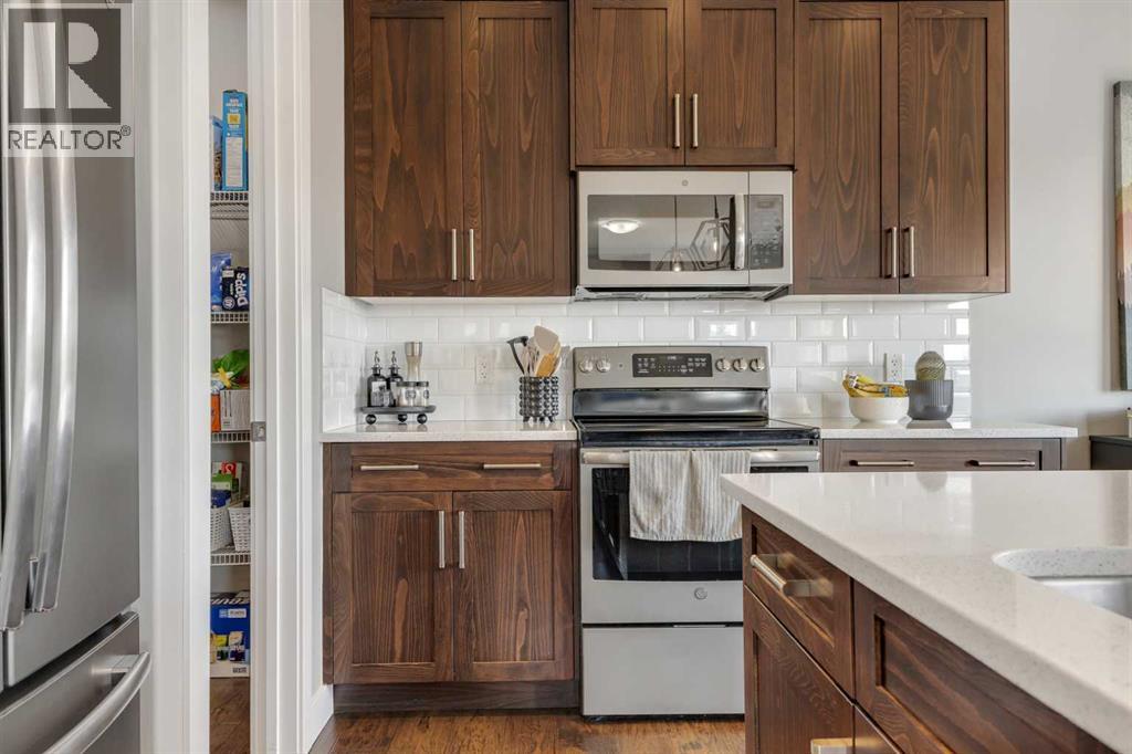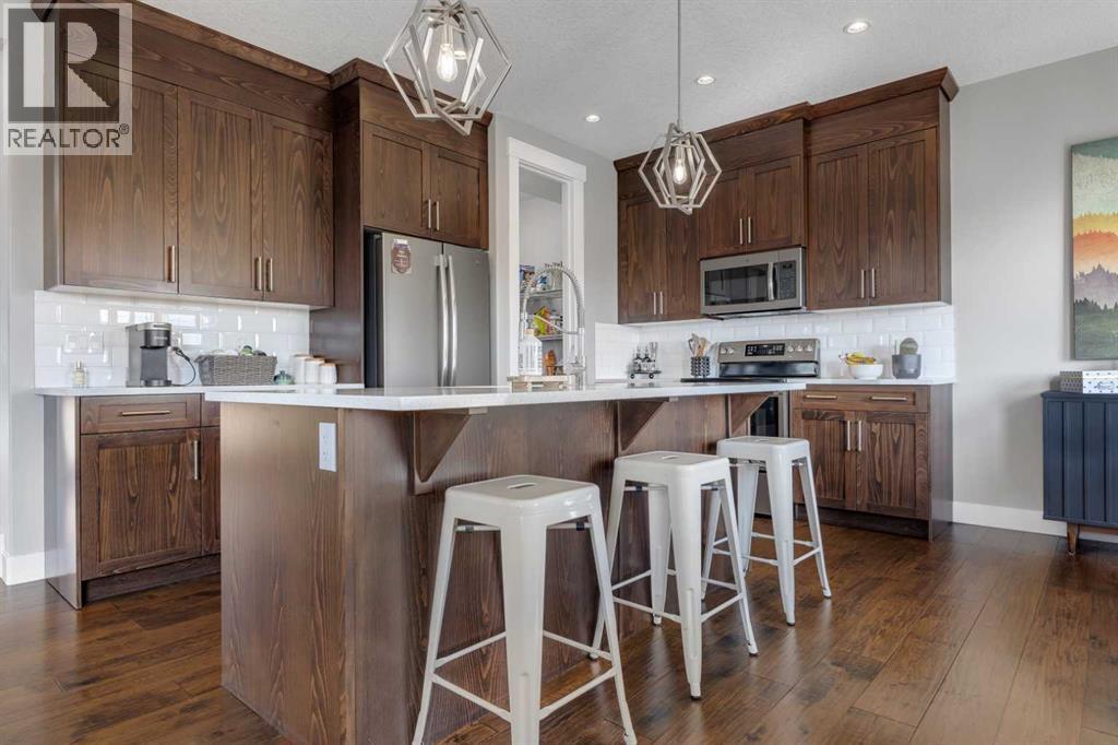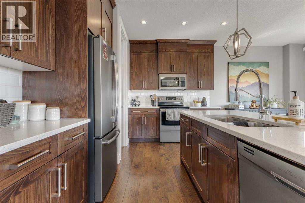 Open house Saturday Sept.13th - 1 to 4 pm. Come view this beautiful, spotless DS - 2 storey home. Original owner has taken immaculate care of their home. The open floor plan invites tons of natural light. The upgrades of the home includes quartz counter tops throughout, 3/4" wide plank engineered hardwood &, stainless steel appliances. The main floor boasts 9 ft. knock down ceiling, coupled with towering 8 ft. doors. Throughout the home is timeless traditional dark cabinetry. The home is painted with neutral colors. What a great kitchen for the cook. The eating area is designed for a large table for the whole family. The main floor also has a large mud room with walk through pantry. There is also a half bath and a living room with a cozy gas fireplace. Moving upstairs the spacious primary bedroom has a walk in closet ((7'.3"x7'.1" ). This bedroom also hosts a 5 piece ensuite with double vanities, a large shower and a separate soaker tub with jets. There is another bathroom (4 piece) and two other bedrooms for the kids, plus a bonus room on this upper level. This floor plan also has an upper floor laundry. This is so convenient on laundry day. Moving down to the lower level/basement is more family space. Fully developed with a family/games room, a 4th bedroom and a full 4 piece bath. Plenty of space for the teens and their friends to visit. Now to the outside. Parking is a double attached garage ( 18'11" x 21'6"). For guests there is front street parking, plus side parking by the home. The side area is great for offering additional street parking and a place for kids to ride bikes and play street hocky. A nice private fenced back yard with a spacious deck. The home/yard backs onto an open green space. Your family is going to love this home and it's amenities! Plus, the Little Bow River runs past the property. Nearby amenities include High River General Hospital, Royal Can adian Mounted Police Station, High River Fire Department, Schools, Grocery Stores, Cafes, Restaurant's & Parks. Nearby services are Okotoks-Aldersyde nearest bus stops, SB Somerset-Bridlewood C-Train Station. A lovely quiet town living, yet only 49 minutes (68.6 km) to Calgary. A great family home and a great community, a must see. The owner's wish to sell most of their furniture. The buyer gets first right of refusal to buy the furniture if they are interested. Call your favorite realtor to view this beauty. (id:58070)