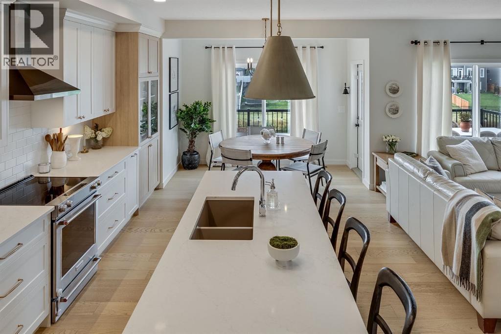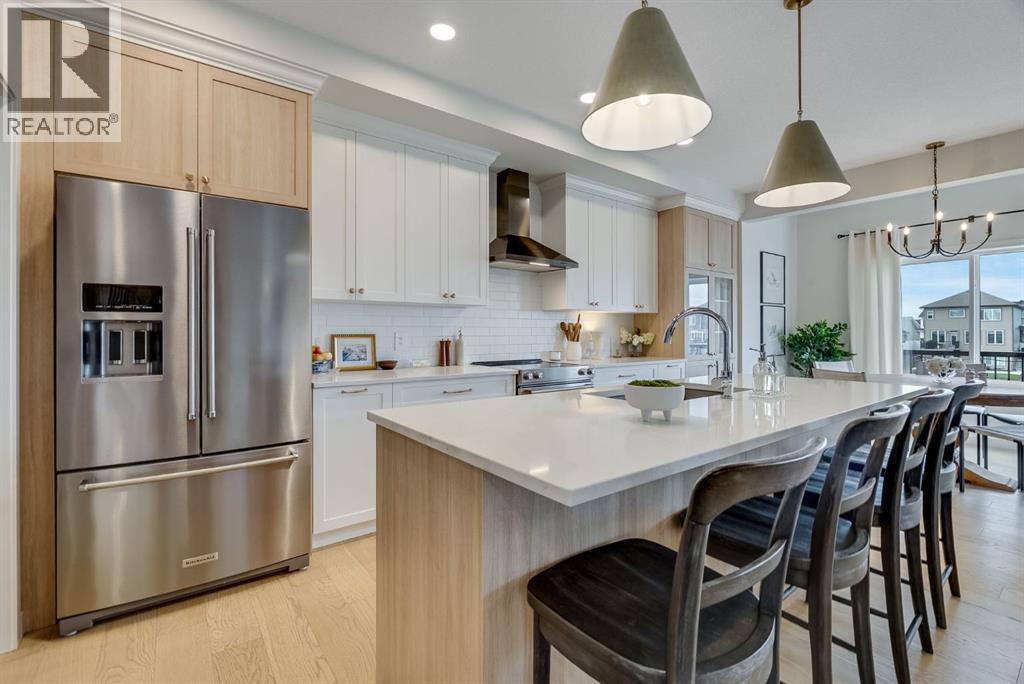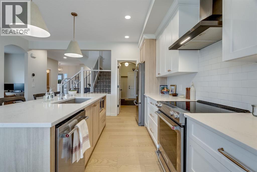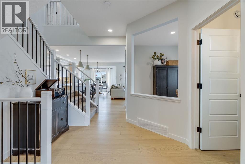Welcome to a home where calm meets comfort in the heart of Crossfield. Built by McKee Homes, this thoughtfully designed walkout backs directly onto green space, offering both a private retreat and a connection to nature.With just over 2,300 square feet, every detail of this residence has been crafted for modern family living. The main floor opens with warmth—an inviting office for those work-from-home days, and a kitchen that blends timeless style with everyday function. Two-tone cabinetry, high-end stone countertops, premium appliances, and a built-in walkthrough pantry with space for a wine fridge make this the true centerpiece of the home.Upstairs, you’ll find three generously sized bedrooms plus a bonus living area, perfect for movie nights, playtime, or simply unwinding. The primary suite feels like a private retreat, complete with spa-inspired finishes and peaceful views that remind you why small-town living is so extraordinary.This home is as practical as it is beautiful, featuring triple-pane windows, central air conditioning, fresh paint throughout, durable hardwood flooring, and so much more. Every corner reflects thoughtful upgrades designed for lasting comfort and style.Step outside and enjoy the walkout level, opening directly to green space—a rare feature that makes your yard feel even more expansive. Whether you’re hosting friends, watching kids play, or simply savoring quiet evenings, this home was built to elevate every moment.Crossfield offers the serenity of small-town charm, paired with the convenience of quick access to the city. Here, life moves just a little slower, and home feels a whole lot warmer. Crossfield Living, quietly Extraordinary. (id:58070)