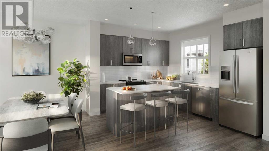 Welcome to a home that blends smart design with refined finishes—this 3-bedroom, 2.5-bathroom townhouse offers over (TBD) sq. ft. of well-appointed living space, a double attached garage, and access to one of Calgary’s most thoughtfully planned natural communities. Whether you're starting out, moving up, or simply looking for a lifestyle shift, this property delivers space, comfort, and convenience at every turn.Step into a bright, open-concept main floor where 9’ ceilings, expansive windows, and contemporary luxury vinyl plank flooring set the tone. The layout flows from the generous living area into a dining space and stylish kitchen, with room to entertain or simply enjoy daily routines with ease.The kitchen offers clean lines and quality craftsmanship, featuring slab-profile soft-close cabinetry, polished white quartz countertops, and a modern tile backsplash that adds subtle texture. The upgraded stainless steel appliance package includes a French-door refrigerator, electric range, over-the-range microwave, and dishwasher—all seamlessly integrated into the space. An eating bar and dedicated dining area provide plenty of room for meals, conversation, and connection.Just off the living area, a balcony with a natural gas BBQ line invites you to step outside and enjoy open air living—ideal for weekend grilling or relaxing evenings.Upstairs, you’ll find three comfortable bedrooms, including a serene primary suite with a private ensuite bathroom finished with quartz countertops, chrome faucets, and tile backsplash. Two additional bedrooms are perfect for kids, guests, or home office space. A full second bathroom, stacked upper-level laundry, and cozy carpet with 8lb underlay throughout the hallway and bedrooms make daily life practical and comfortable.On the lower level, the double attached garage provides secure parking, extra storage, and protection from the elements—something you'll appreciate year-round.And outside your door? A masterfully designed com munity centered around connection to nature. Enjoy nearby playgrounds, walking paths, a shared courtyard garden, and access to the community’s signature 30-acre wetland—featuring a boardwalk, viewing deck, and bird blind surrounded by cattails and aquatic plants. This immersive natural amenity links to a wider network of green spaces and outdoor experiences that make the neighborhood truly unique.You’re also minutes from Stoney Trail and 52 Street, with everyday needs within easy reach at Mahogany and Copperfield shopping districts, plus nearby schools and the South Health Campus.With a polished, light interior palette and generous square footage, this upgraded townhome offers the perfect balance of thoughtful details, room to breathe, and a lifestyle rooted in both comfort and connection. (id:58070)
