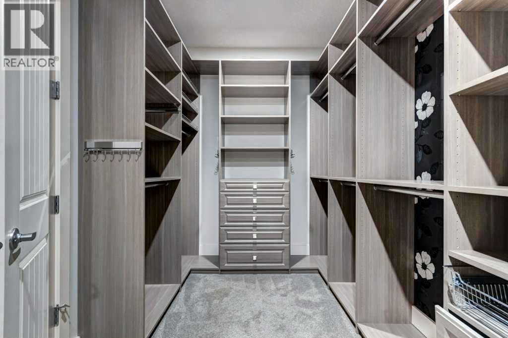 Welcome to this exceptional detached estate home located in the highly sought-after community of Springbank Hill. Built by Avi Homes, this impressive 3,081 sq. ft. residence is situated on a generous 10,000 sq. ft. south-facing walkout lot, offering abundant natural light and breathtaking mountain views.The main level is designed to impress, featuring soaring 20 foot ceilings in the great room, oversized windows, rich hardwood flooring, and a striking floor-to-ceiling stone fireplace with custom mantels. The gourmet kitchen is ideal for both everyday living and entertaining, complete with elegant cabinetry, granite countertops, stainless steel appliances, a walk-in pantry, and ample workspace. A dedicated home office with built-in desk and storage, formal dining room, and a spacious mudroom with lockers and storage complete the thoughtfully designed main floor.Upstairs, you’ll find four generously sized bedrooms, all with walk-in closets. The luxurious primary suite faces southwest and captures stunning Rocky Mountain views. It features a spa-inspired 5-piece ensuite and an expansive custom walk-in closet, with direct access to the conveniently located upper-floor laundry room. The professionally finished walkout basement, completed by award-winning Calgary builder Ultimate Renovations, offers an incredible extension of living space. Highlights include a custom fitness room, large recreation room with a built-in gas fireplace and floor-to-ceiling stone surround, a wet bar with wine storage and a tucked-away 5th bedroom and 4-piece bathroom, perfect for guests.Car enthusiasts and hobbyists will appreciate the massive oversized triple heated garage, equipped with 240V power, floor drains, and an additional overhead door providing backyard access.The sunny south-facing backyard is truly special, featuring a built-in playground with rubberized base, concrete firepit pad, and a covered hot tub area, ideal for family living and entertaining.This home is packed with premium upgrades including permanent Gem Style exterior lighting, central air conditioning, Hardie Board siding, exposed aggregate driveway, paths and patio, custom motorized window coverings and a centralized sound system.Located on a quiet cul-de-sac with quick access to the mountains, top-rated schools, shopping, restaurants, and an easy downtown commute, this is a rare opportunity to own a truly remarkable estate home in Springbank Hill. (id:58070)