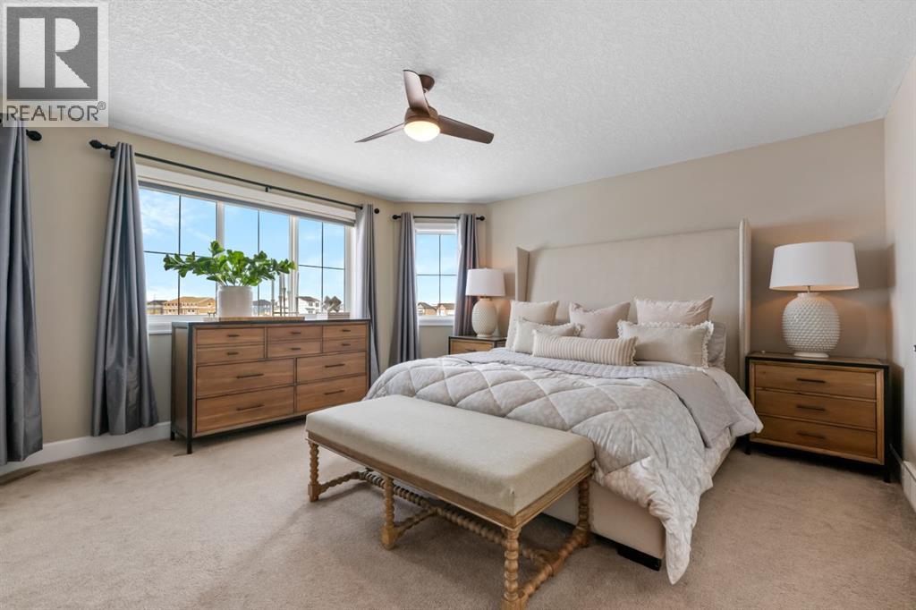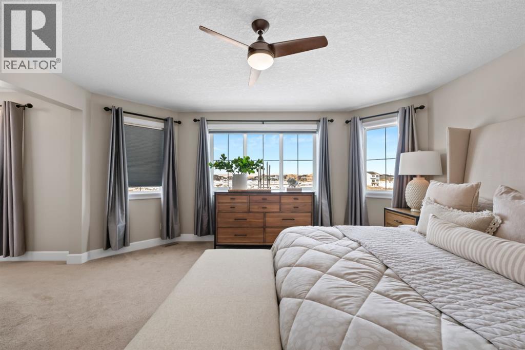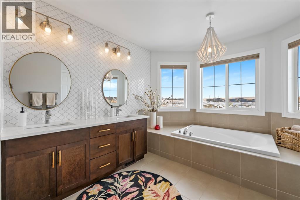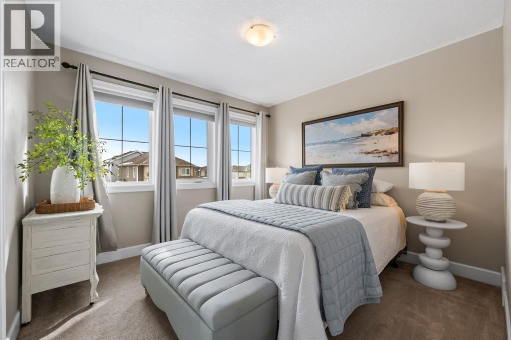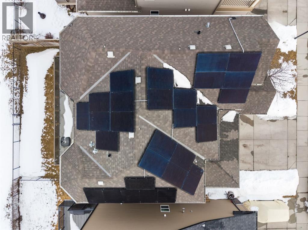 This exceptional executive two-storey walkout home offers over 3,000 sq. ft. of fully developed living space and backs onto a beautiful green space and a scenic pond which provides peaceful views and breathtaking sunsets. A spacious entryway welcomes you inside, where a bright flex room behind French doors creates the perfect home office or reading space. The main level features a sun-filled living room with west-facing windows, a cozy gas fireplace, and custom built-ins.The open-concept kitchen is designed for both everyday living and entertaining, showcasing a large granite island, ceiling-height cabinetry, stainless steel appliances, and recessed lighting. Step onto the oversized upper deck with a gas line for BBQ, perfect for enjoying the tranquil pond views. Upstairs you’ll find a spacious bonus room, upper-level laundry with a linen closet, and three generous bedrooms. The primary suite offers a walk-in closet and a spa-inspired ensuite with double vanities, a soaker tub, and a steam shower. Two additional bedrooms and a full bathroom complete the upper floor. The fully developed walkout basement adds incredible living space with a large recreation area and wet bar, an additional bedroom, full bathroom, and a bright sunroom with hot tub. There is direct access to walking paths along the pond and green space.Additional highlights include solar panels, air conditioning, a heated garage, irrigation system, permanent Govee exterior lighting, and concrete side stairs for convenient access. Ideally located close to parks, walking paths, a skate park, and pickleball courts. This home offers the perfect blend of space, comfort, and lifestyle. (id:58070)