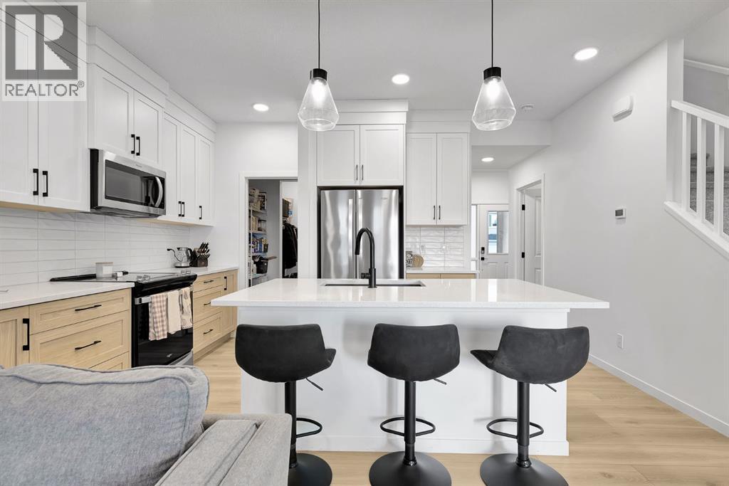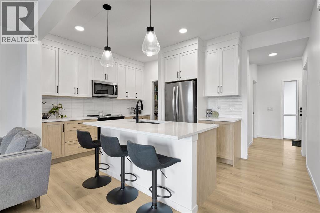 Welcome Home to The Willows!This beautifully upgraded and fully developed 4-bedroom, 3.5-bath semi-detached home is the perfect blend of modern style and family-friendly comfort. Step inside and you’ll love the bright, open layout featuring durable laminate flooring throughout the main level. The spacious living room is anchored by a cozy GAS FIREPLACE—the perfect spot to unwind after a long day.The chef-inspired kitchen is a true showpiece with its two-toned cabinetry, QUARTZ countertops, upgraded stainless steel appliances, and stylish tile backsplash. You’ll appreciate the walk-through pantry and functional mudroom that make everyday living a little easier. A convenient half bath completes the main floor. Upstairs, the primary suite offers a relaxing retreat with a large walk-in closet and a gorgeous 5-piece ensuite with dual sinks and quartz counters. Two additional bedrooms, a 4-piece main bathroom, also with quartz, and upper laundry add convenience and practicality. The CENTRAL BONUS ROOM is a great flex space for movie nights, a playroom, or a home office. The fully developed basement features high ceilings, a spacious family room, a fourth bedroom, and a beautifully finished 3-piece bathroom—perfect for guests or teens needing their own space. The over extended single attached garage allows room for your vehicle and storage. Step outside to your private, landscaped backyard complete with a deck for BBQs and summer evenings. Located just steps from parks, pathways, shopping, and all the amenities The Willows has to offer, this home truly checks every box. (id:58070)