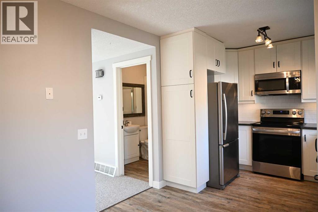 *LOW condo fee of $250.* *Immediate Possession* *Great Location!*Welcome to this recently updated 3 bedroom and 2-bathroom townhome. You can easily move right in to this home due to the extensive upgrades including New carpets, newer stove & microwave, newer windows, paint, flooring plus modern updates to the kitchen & bathrooms Plus there is a High Efficiency Furnace. The bright & open layout is ideal for your family not to mention the fully fenced backyard with a storage shed is fantastic for kids and pets. The main level offers a spacious family room which includes dining area(if needed), a 3 piece bathroom, a bright, white kitchen with plenty of cabinets and counter space, and a dining area with patio doors leading to your own private rear yard. The upper level has 3 bedrooms including the large primary bedroom with a huge walk-in closet, and a second full 3-piece bathroom. The fully developed basement has a large family room, a flex room that could be used as an office or gym and a huge laundry room with a laundry sink and a very spacious storage area. This property is conveniently located just steps to the outdoor skating rink, Happy Trails walking paths, Community Gardens, a playground and just minutes to downtown High River. (id:58070)