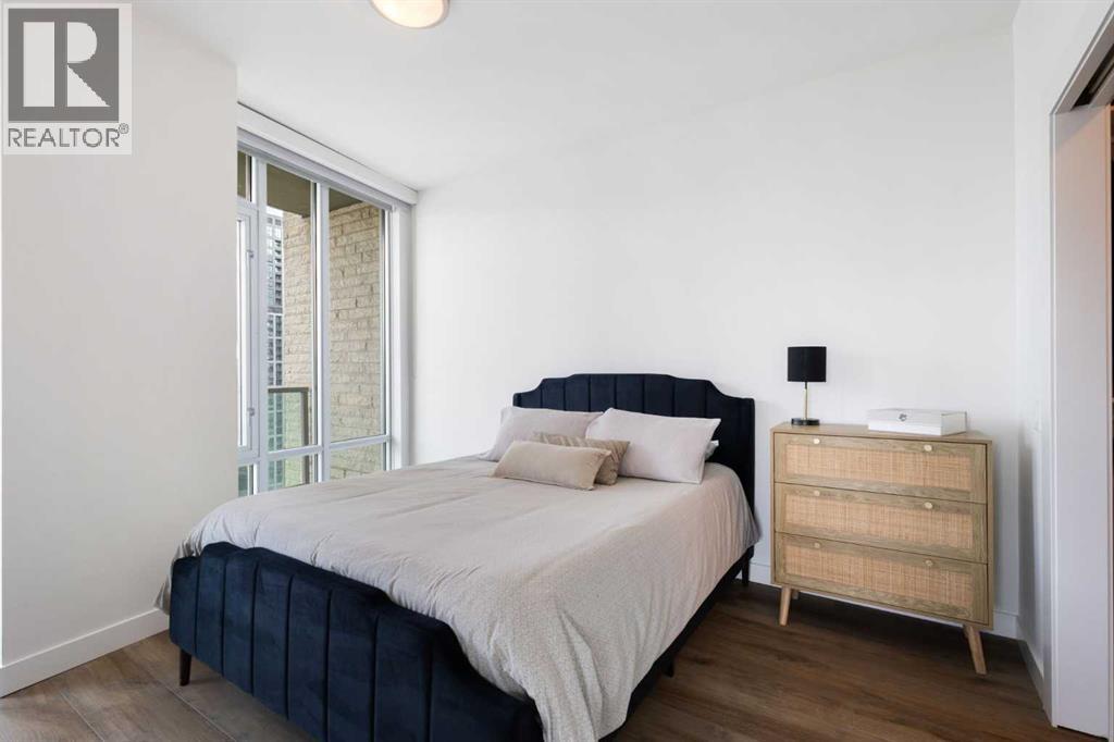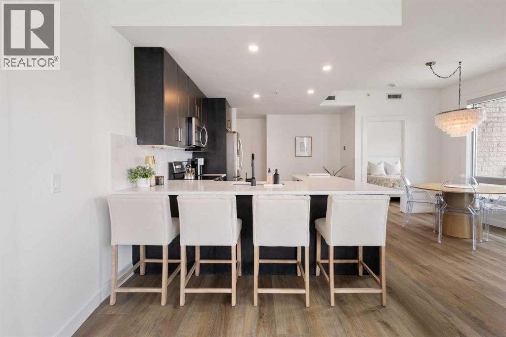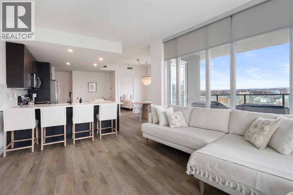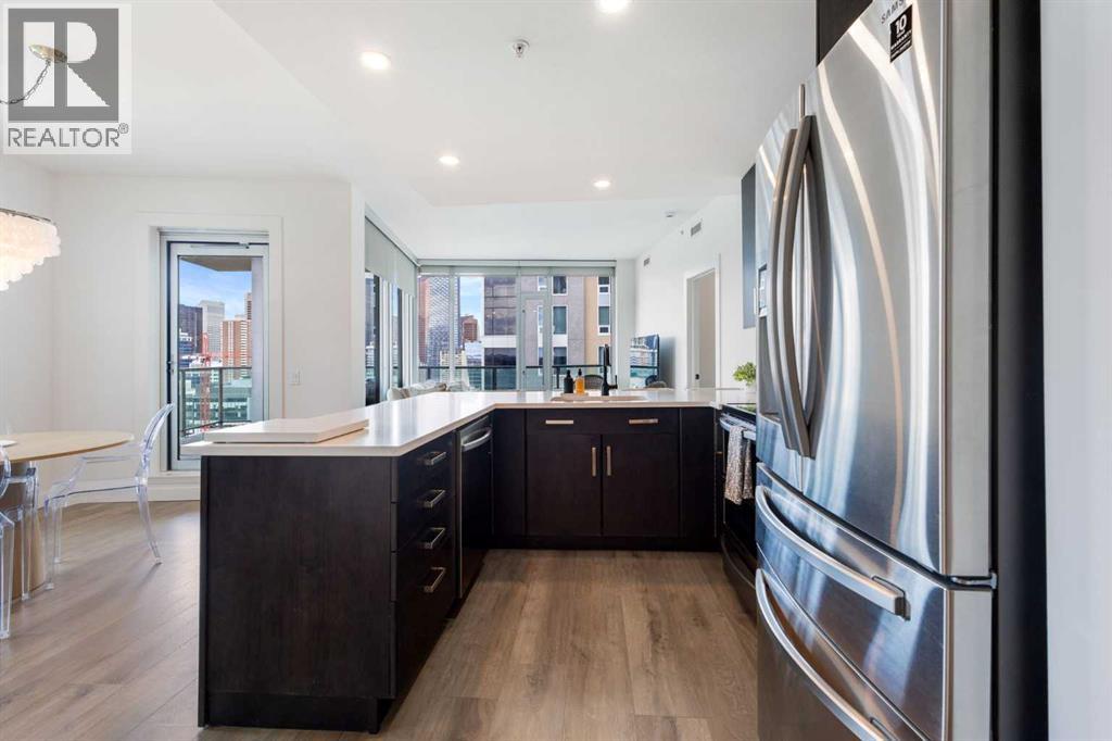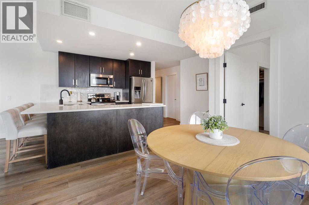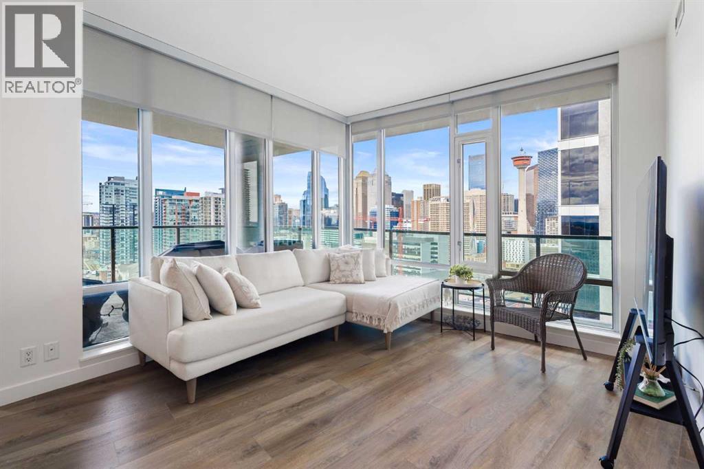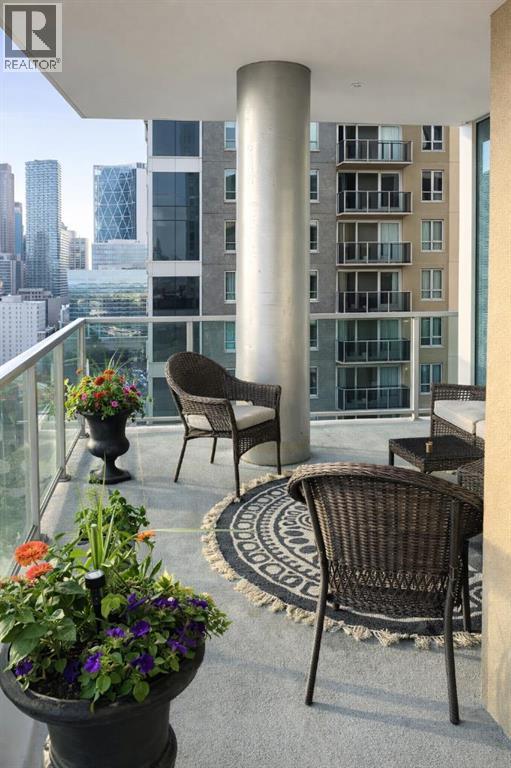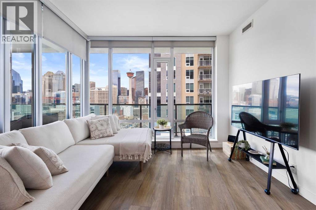 Welcome to this stunning 18th-floor sky suite offering breathtaking panoramic views of the city skyline and Rocky Mountains. Located in Sasso, a 18+ concrete building in the heart of Calgary’s vibrant Beltline, this home combines lifestyle, location, and flexibility.Recently updated throughout, this unit features new luxury vinyl plank flooring, fresh paint, new bathroom tile, and quartz countertops in both the kitchen and bathrooms, giving the home a clean, modern feel.The open-concept layout is designed for both everyday living and entertaining, with floor-to-ceiling windows that flood the space with natural light and showcase the incredible views. The modern kitchen is both stylish and functional, complete with quartz countertops, sleek tile backsplash, stainless steel appliances, double sink, and a breakfast bar.This unit offers two generously sized bedrooms, each with ample closet space, along with two full bathrooms. The primary ensuite features a relaxing jetted tub, perfect for unwinding at the end of the day. A dedicated desk area near the entrance provides the ideal setup for working from home.Step outside to your large private balcony with a gas hookup, ideal for summer BBQs while enjoying the city and mountain backdrop.Additional features include in-suite laundry with washer and dryer, a titled underground parking stall, and a storage locker.Residents of Sasso enjoy a full range of amenities including a fitness centre, sauna, hot tub, games room, lounge, private theatre, outdoor patio, visitor parking, and part-time concierge and security.Unbeatable location just steps to the Scotiabank Saddledome, Stampede Park, and Victoria Park/Stampede Station, plus all the dining, shopping, and nightlife along 17 Avenue SW. (id:58070)