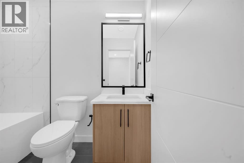 Welcome to this beautifully designed home offering a functional and spacious layout across all three levels! The main floor features an inviting foyer that opens into a bright living room, a stylish open-concept kitchen, a dedicated dining area, and a convenient two-piece powder room. Upstairs, you’ll find a generous primary bedroom complete with a walk-in closet and a 3-piece ensuite, along with two additional bedrooms, a 4-piece bathroom, and a separate laundry room for added convenience. The fully developed basement boasts an illegal suite with a private entrance, mudroom, full kitchen, large rec room, spacious bedroom with walk-in closet, and another 4-piece bathroom—perfect for extended family or rental potential. A single-car garage adds to the functionality of this fantastic property. Other units are also available for purchase. Ideally located close to the University of Calgary, SAIT, Alberta Children’s Hospital, shopping, schools, parks, playgrounds, and scenic bike paths. (id:58070)