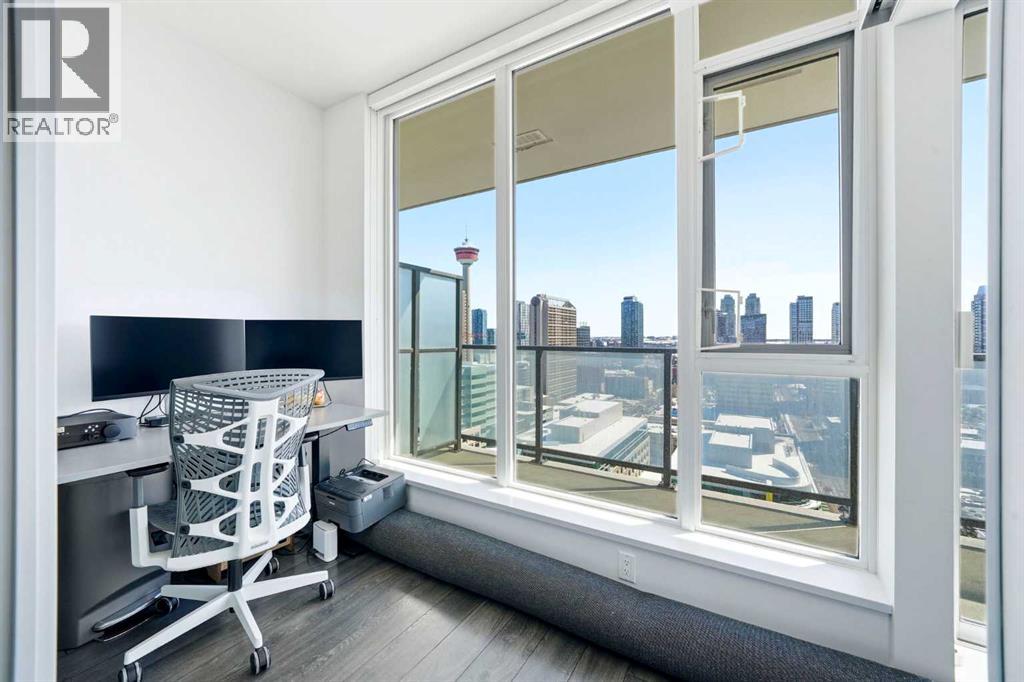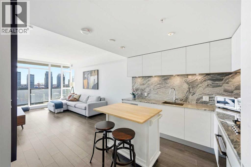Welcome to this thoughtfully designed layout, which is among the most spacious 1-bedroom and office floor plans available in Park Point! The bright, open-concept living space is filled with natural light from expansive windows, creating a warm and inviting atmosphere. The sleek kitchen is both stylish and functional, featuring granite countertops and backsplash, high-end stainless steel appliances, and generous storage. The unit includes a generously sized bedroom along with a versatile den, ideal for a home office or additional living space. Step out onto your private balcony and enjoy stunning city views. Residents of Park Point enjoy access to an impressive array of amenities, including a fully equipped fitness centre, spa-inspired facilities with a steam room and infrared sauna, guest suites, concierge service, and overnight security. Additional highlights include a beautifully designed residents’ lounge with kitchen and entertainment space, a community party room, and an outdoor terrace complete with BBQs, dining areas, and a firepit—perfect for hosting or relaxing. The building also features a Zen garden and a dedicated pet run with seating areas. Perfectly positioned across from Central Memorial Park in the heart of Calgary, this exceptional condo places you steps from some of the city’s best shops, dining, and entertainment. (id:58070)