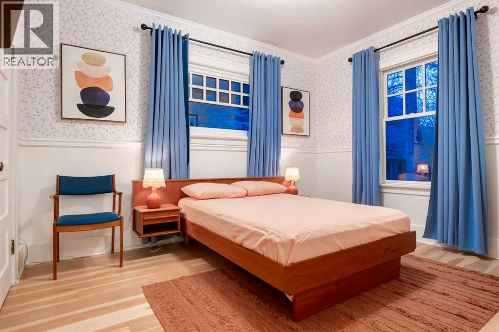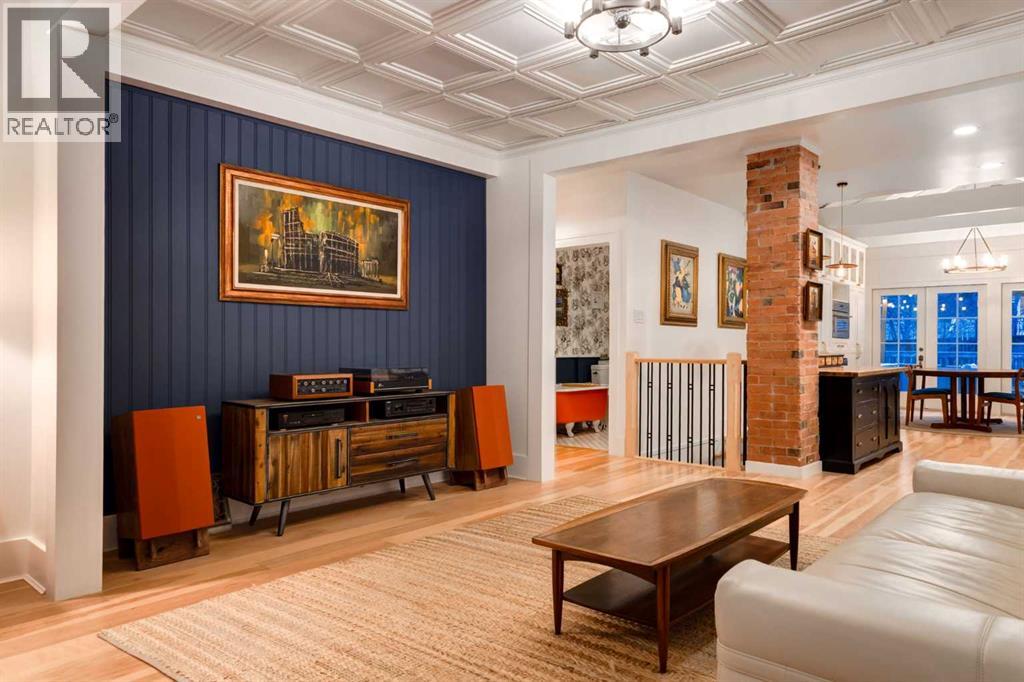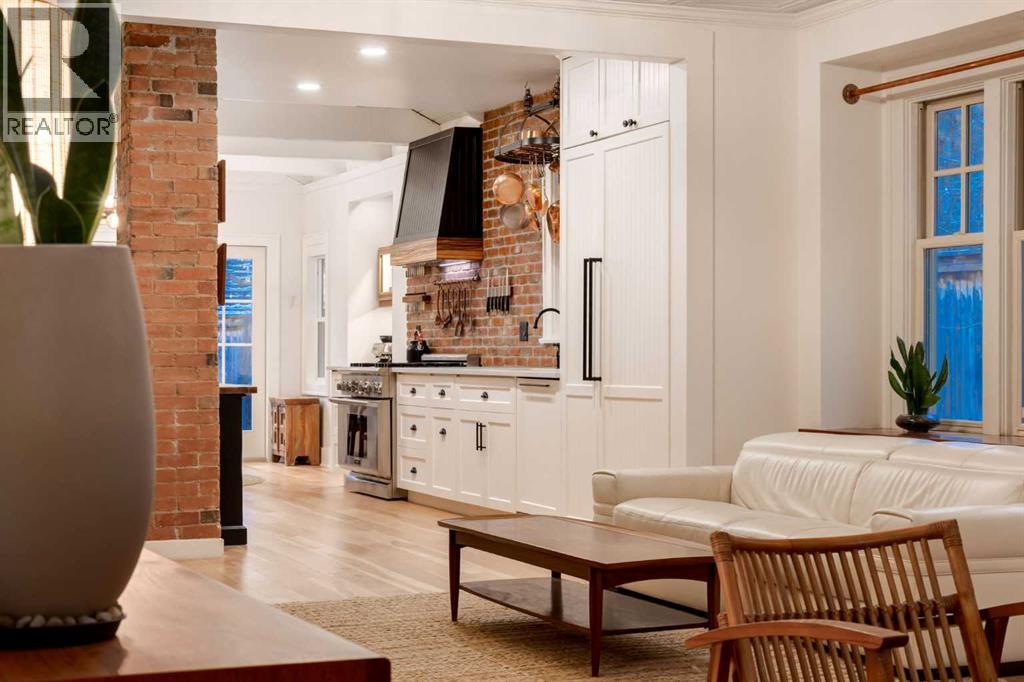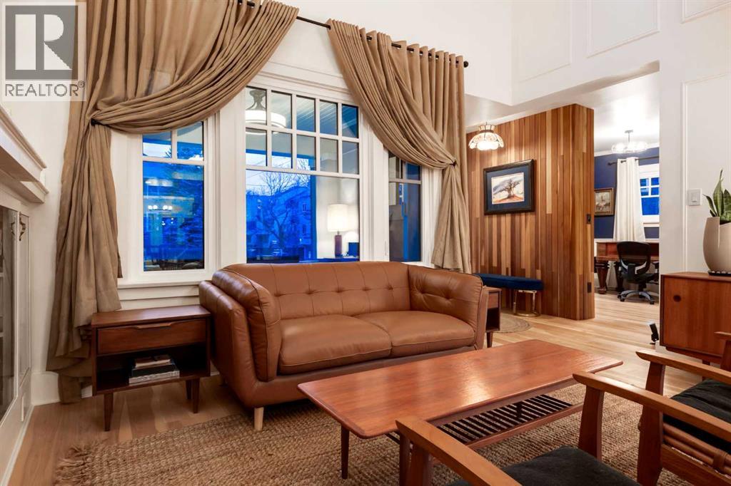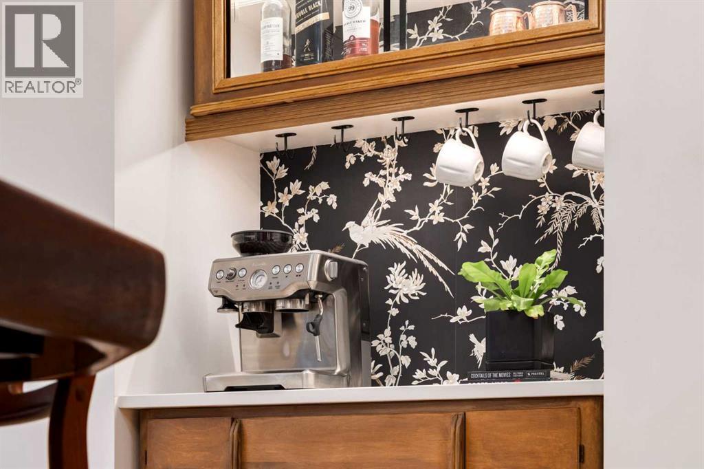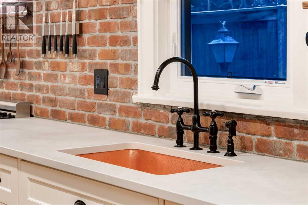 Set in Upper Mount Royal, this beautifully renewed Craftsman home offers an exceptional blend of architectural charm, bespoke finishes, and modern, high-performance upgrades. Surrounded by mature trees and framed by artful landscaping, the property rests on a quiet, private street just a short walk from 17th Avenue, yet feels worlds away in its tranquility. A covered front porch welcomes you into a residence defined by warmth and craftsmanship. The front gardens are meticulously designed with rock wall detailing, perennial plantings, and carefully placed rock borders with new sod installed in 2023. Established species anchor the outdoor spaces with year-round texture and colour, all maintained by a five-zone sprinkler system. At the rear of the home, double French doors open onto an expansive wraparound deck - a series of outdoor living and dining spaces that celebrate the home’s connection to nature. Inside, the residence unfolds with a curated blend of original detail and modern sophistication. Engineered hardwood floors span the main and upper levels, while custom wallpaper, stained glass sconces, coffered ceilings, vaulted ceilings—including one with a skylight—and built-in shelving create an atmosphere of timeless charm. The original brick chimney remains a focal point, preserving the home’s architectural story. The kitchen is both beautifully crafted and superbly equipped. Custom wood and beadboard cabinetry, Caesarstone countertops, and a brick backsplash are paired with a suite of premium appliances and a custom hood venting system. Details such as the copper sink, overhead potholder, and a dedicated coffee and scotch bar elevate both daily living and entertaining. The home’s bathrooms carry the same blend of history and refinement. The main bath features a classic clawfoot tub, while the primary ensuite is a true retreat, complete with a custom antique double vanity topped with hardwood counters, an oversized glass shower with gold-finished rain and hand-he ld fixtures, heated floors, and the original butler’s door connecting directly to the walk-in closet. The lower level offers extensive storage and a hidden room that lends itself beautifully to your own private “speakeasy”, music room, cigar and scotch lounge, or personal retreat. A new asphalt roof was installed in 2023, and a 21-panel, 8.91-kilowatt solar array added in 2025. Nearly all windows and the rear doors have been upgraded to Lux units, complemented by JELD-WEN windows in select spaces. The electrical service was upgraded to 200 amps in 2023, the furnace control board was replaced in 2024, and on-demand hot water is installed. The heated, oversized double attached garage offers exceptional utility with direct access to the home, easily accommodating two vehicles with extra space for other “toys”. This Upper Mount Royal residence embodies luxury in its truest form—not through excess, but through craftsmanship, character, and an enduring connection to place. (id:58070)