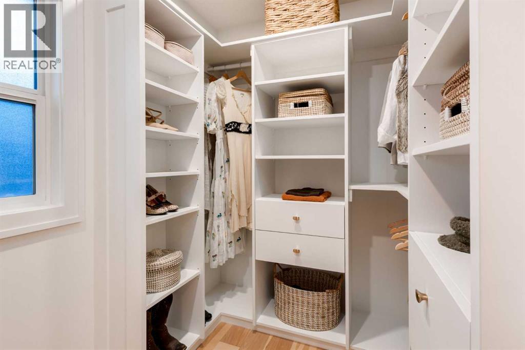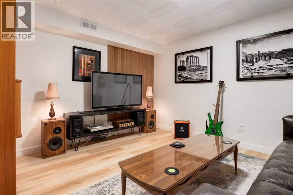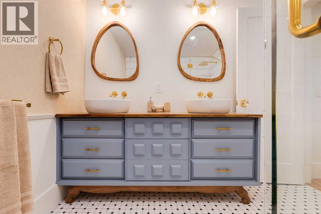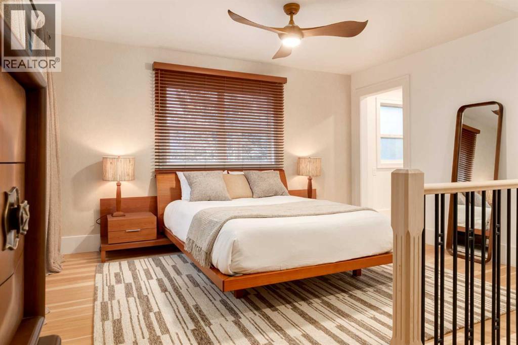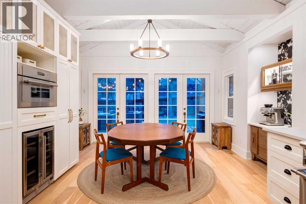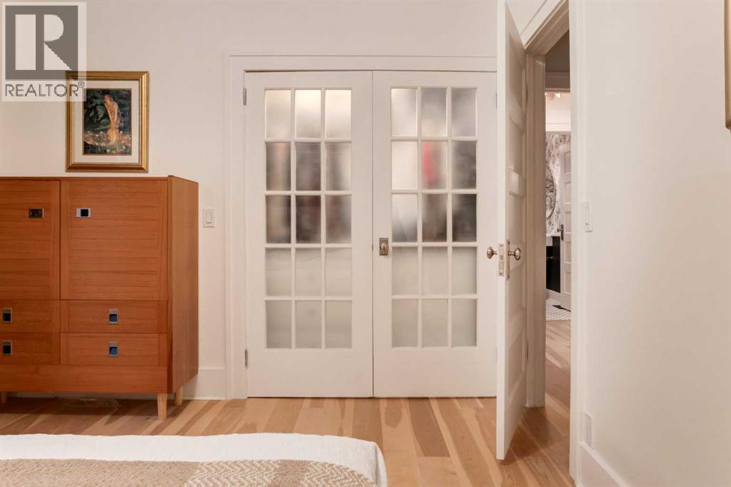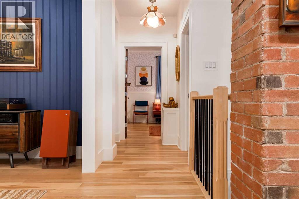 Set in Upper Mount Royal, this beautifully renewed Craftsman home offers an exceptional blend of architectural charm, bespoke finishes, and modern, high-performance upgrades. Surrounded by mature trees and framed by artful landscaping, the property rests on a quiet, private street just a short walk from 17th Avenue, yet feels worlds away in its tranquility. A covered front porch welcomes you into a residence defined by warmth and craftsmanship. The front gardens are meticulously designed with rock wall detailing, perennial plantings, and carefully placed rock borders with new sod installed in 2023. Established species anchor the outdoor spaces with year-round texture and colour, all maintained by a five-zone sprinkler system. At the rear of the home, double French doors open onto an expansive wraparound deck - a series of outdoor living and dining spaces that celebrate the home’s connection to nature. Inside, the residence unfolds with a curated blend of original detail and modern sophistication. Engineered hardwood floors span the main and upper levels, while custom wallpaper, stained glass sconces, coffered ceilings, vaulted ceilings—including one with a skylight—and built-in shelving create an atmosphere of timeless charm. The original brick chimney remains a focal point, preserving the home’s architectural story. The kitchen is both beautifully crafted and superbly equipped. Custom wood and beadboard cabinetry, Caesarstone countertops, and a brick backsplash are paired with a suite of premium appliances and a custom hood venting system. Details such as the copper sink, overhead potholder, and a dedicated coffee and scotch bar elevate both daily living and entertaining. The home’s bathrooms carry the same blend of history and refinement. The main bath features a classic clawfoot tub, while the primary ensuite is a true retreat, complete with a custom antique double vanity topped with hardwood counters, an oversized glass shower with gold-finished rain and hand-he ld fixtures, heated floors, and the original butler’s door connecting directly to the walk-in closet. The lower level offers extensive storage and a hidden room that lends itself beautifully to your own private “speakeasy”, music room, cigar and scotch lounge, or personal retreat. A new asphalt roof was installed in 2023, and a 21-panel, 8.91-kilowatt solar array added in 2025. Nearly all windows and the rear doors have been upgraded to Lux units, complemented by JELD-WEN windows in select spaces. The electrical service was upgraded to 200 amps in 2023, the furnace control board was replaced in 2024, and on-demand hot water is installed. The heated, oversized double attached garage offers exceptional utility with direct access to the home, easily accommodating two vehicles with extra space for other “toys”. This Upper Mount Royal residence embodies luxury in its truest form—not through excess, but through craftsmanship, character, and an enduring connection to place. (id:58070)
