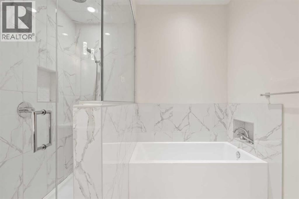 Gorgeous 2 storey townhome located in the sought after community of Tuxedo Park. With just under 2,100 sq ft of living space, 3 bedrooms and 3.5 bathrooms spread over 3 floors, whether you’re a growing family or a down-sizer, this place hits the sweet spot. An open concept main floor greets you as you enter through the front door, with 10 ft ceilings and lots of South-facing windows bringing in lots of natural light. The kitchen setup with extended quartz countertop features stainless steel appliances including a gas range, under cabinet lighting and lots of storage. A large dining area and living room overlook the floor to ceiling tiled fireplace wall. Upstairs, you’ll find a large Primary with vaulted ceilings and a huge walk-in closet. The Primary en-suite includes double sinks, a large glass shower, soaker tub and heated floors. Laundry is located just outside of the Primary and as you walk down the hall you will find the 2nd bedroom with it’s own en-suite bathroom. In the basement, you’ll find a wide open rec room with 9 ft ceilings and a wet bar. A large 3rd bedroom plus a full bathroom round out the basement. This thoughtfully designed home has been built with premium materials and was meant to be enjoyed by its owners, unlike many of the newer ones out there. While this is a back unit, thought has been put into maximizing natural light through South facing windows, skylight etc. Don’t forget to check out the private backyard space, which leads to the garage. The location is perfectly central and close to transit, shopping, SAIT, downtown, schools, parks and loads of great restaurants. (id:58070)