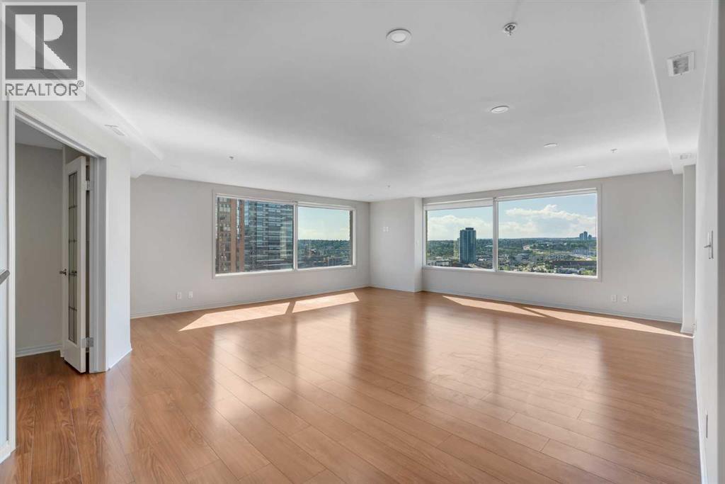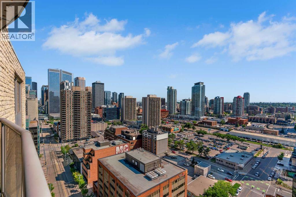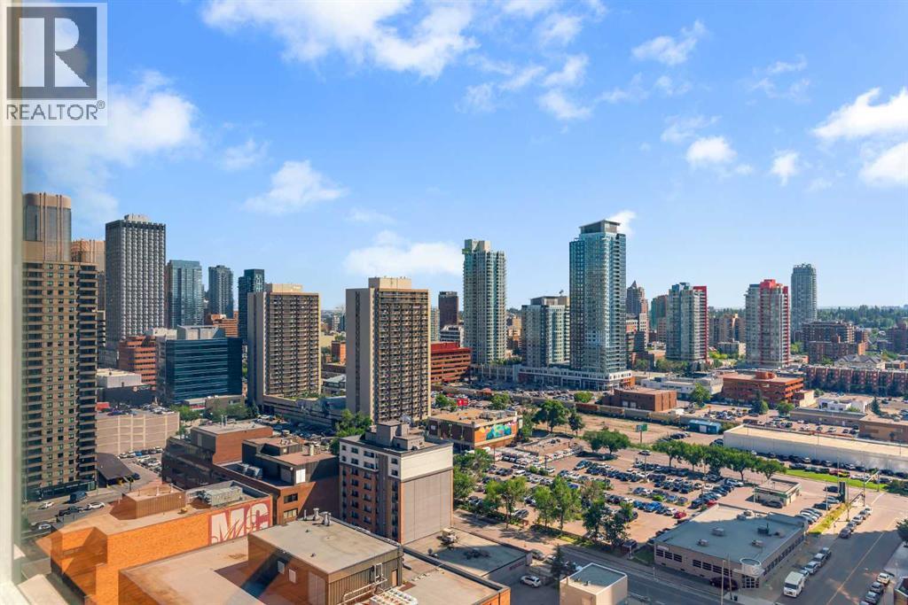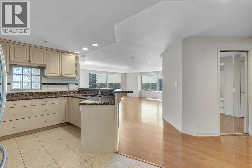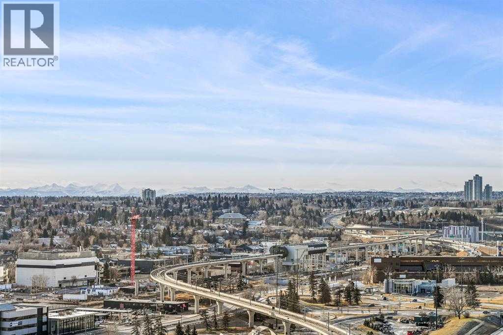Unparalleled, Spectacular PANORAMIC VIEWS of the mountains, Bow River, and sparkling city lights! This nearly 1,600 sq. ft. luxury condo offers 2 bedrooms plus a den, 2 full baths, and 2 secure titled, underground parking stalls. Beautifully updated with hardwood floors, new carpet, fresh paint, and custom window coverings. Expansive windows fill the open living space with natural light, highlighting the raised panel cabinetry, granite countertops, pot lighting, and quality finishes throughout. Enjoy year-round comfort with full air conditioning and the sought-after south and west exposure. Ideally located in West Downtown with the Kerby LRT station right at your doorstep, and just steps to Shaw Millennium Park, river pathways, and all the conveniences of the city. Easy in-and-out access to downtown makes this the perfect urban retreat. (id:58070)