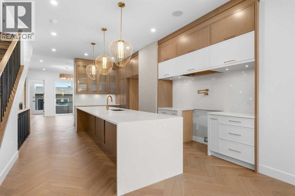 Situated in the desirable community of Altadore, 2004 44 Ave SW is a beautifully crafted detached home offering elevated finishes and a thoughtfully designed floor plan throughout.The main level welcomes you with a spacious dining area that flows seamlessly into the chef-inspired kitchen, anchored by a large central island ideal for both everyday living and entertaining. Custom built-ins provide stylish storage solutions, while the inviting living room is complemented by double patio doors that open onto a generous rear deck, creating effortless indoor-outdoor living. A well-appointed powder room, functional mudroom, charming front porch, and double detached garage complete this exceptional main floor.Upstairs, you will find two well-sized bedrooms, each with walk-in closets, along with a shared three-piece bath and convenient upper-level laundry. The primary suite is bright and airy, featuring large windows, a luxurious four-piece ensuite with double vanity and soaker tub, and an expansive walk-in closet.The fully developed basement adds valuable living space with an additional bedroom, a spacious family and recreation room, a wet bar perfect for entertaining, and a three-piece bath.Please note: Photos reflect a previous home built by the same builder with a similar palette and comparable finishes. This home is currently under construction and final selections may vary.An exceptional opportunity to own a refined, inner-city residence in one of Calgary’s most sought-after neighbourhoods. (id:58070)