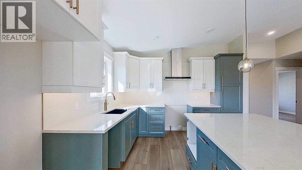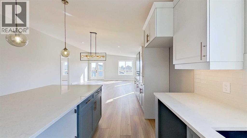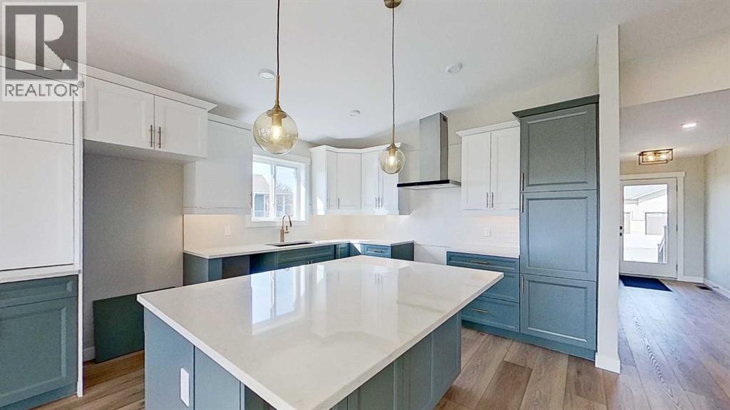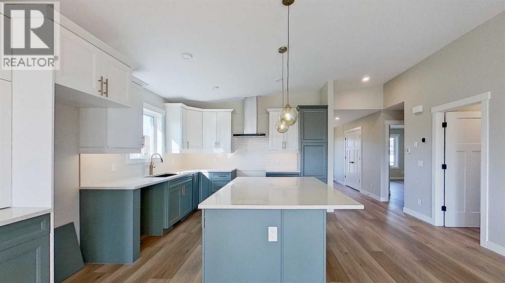 A new home 1469 Square feet, modern bungalow with a wonderful 2.4 meters to the property line from the home. Thoughtfully designed and built with high-end construction and finishes throughout. This home blends timeless style with everyday comfort. Inside, rich luxury vinyl plank flooring flows through a bright, open-concept layout. Sunlight pours through large windows, filling the living area with a soft , inviting glow, perfect for quiet mornings and lively evenings with family and friends.The heart of the home, the kitchen, is a beautiful as it is a functional, featuring gleaming quartz countertops, a sleek under-mount sink, elegant tilework, under-cabinet lighting, and abundant storage for all you culinary treasures. The primary suite is your own personal retreat, with a spacious dual sink vanity in the ensuite, a fully tiled walk-in glass shower, a closable bathroom, a custom walk-in closet with built-in cabinetry. Two additional bedrooms with closets and wonderful shelving custom-made for family, guests, or a home office. A cozy front porch invites you to sip coffee and watch the mountains as the day unfold, while massive 30-foot back deck is perfect for sunny mornings and afternoons. A wonderful area to enjoy lots of friends for get together times. The mudroom, complete with custom made sitting area and spaces for your jackets and shoes storage and access to walk down to the detached garage. The mudroom has a complete laundry closet. Downstairs, the basement is bright with low level large windows and natural light. The potential development of the basement has 2 lovely bedrooms, full bath tub-shower bathroom. It is easy to create a luxurious family room area with wonderful lighting. The exterior features are charming blue-gray Smart siding with crisp white trim for a welcoming, classic finish. This home is built to last, crafted with exceptional workmanship and top-quality finishes from the ground up ready for you to move in, settle down and start making memories. (id:58070)
