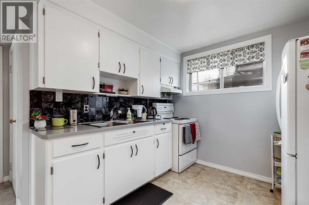 HUGE Lot | Legal Suite | Income Potential | Endless Possibilities. Welcome to this upgraded bungalow situated on a massive lot, offering outstanding affordability, redevelopment potential, and excellent income-generating opportunities. The bright and inviting main level features brand new vinyl plank flooring (2024), large sun-filled windows, and a spacious living area that flows seamlessly into the eat-in kitchen perfect for everyday living. Three well-sized bedrooms and a full bathroom w/ jetted tub, complete the upper level. Downstairs, you’ll find a charming and bright LEGAL basement suite with its own private front entrance. Finished with beautiful bamboo flooring, this very cute space includes a full kitchen, comfortable living area, bedroom, and a full bathroom. Shared laundry is conveniently located for easy access. With two separate furnaces, both levels enjoy independent climate control for added comfort and efficiency. Central A/C services the upper floor, the basement stays cool in the summer months without it. The basement is currently rented to a long-term tenant of over 20 years who would love to stay - offering immediate, stable income potential. Plenty of room in the basement for storage or to add another bedroom. Step outside to enjoy the expansive backyard - perfect for kids, pets, and entertaining. The low-maintenance, high-quality fencing provides both safety and peace of mind. An 8x10 storage shed adds extra functionality for tools and garden supplies. The oversized double garage (22x24) is insulated, heated, and equipped with 220V power ideal for a workshop or hobby space (radiant heater negotiable; workbenches excluded). The asphalt roof on the garage was done in 2019. There is also excellent RV parking and additional parking space for ultimate flexibility. Further upgrades include newer windows, central A/C, tankless hot water system, and dual furnaces serving both levels. This versatile property offers countless options live up, rent down, invest, or hold for future development. A rare opportunity with a large lot and built-in mortgage helper. Book your showing today! (id:58070)