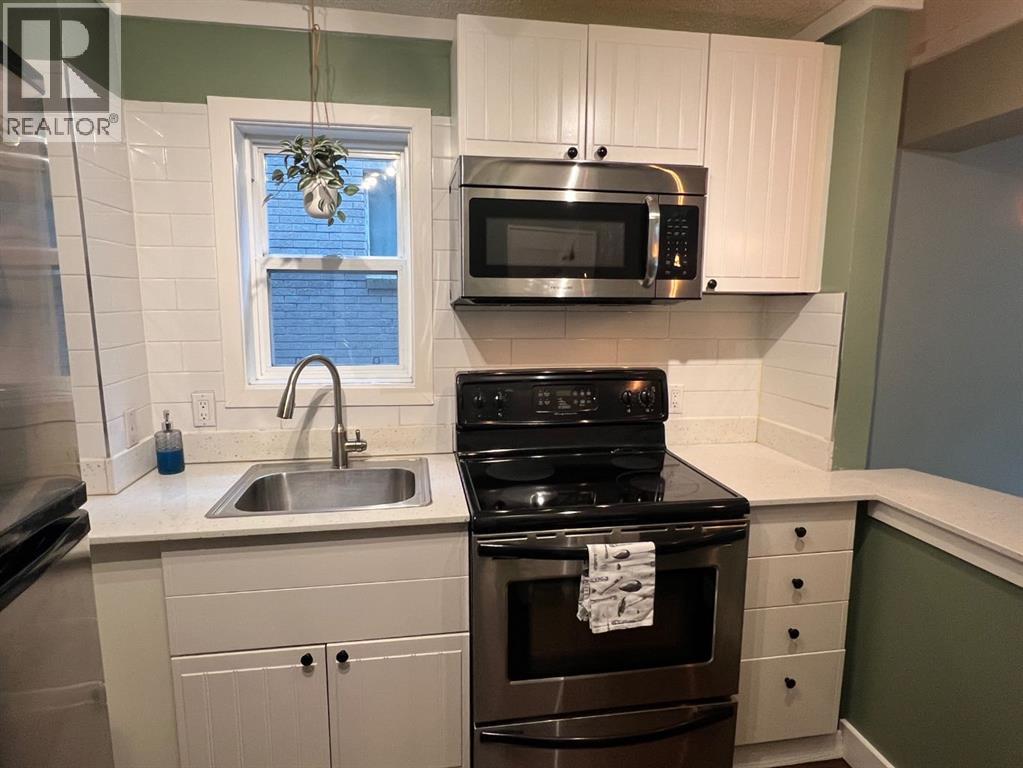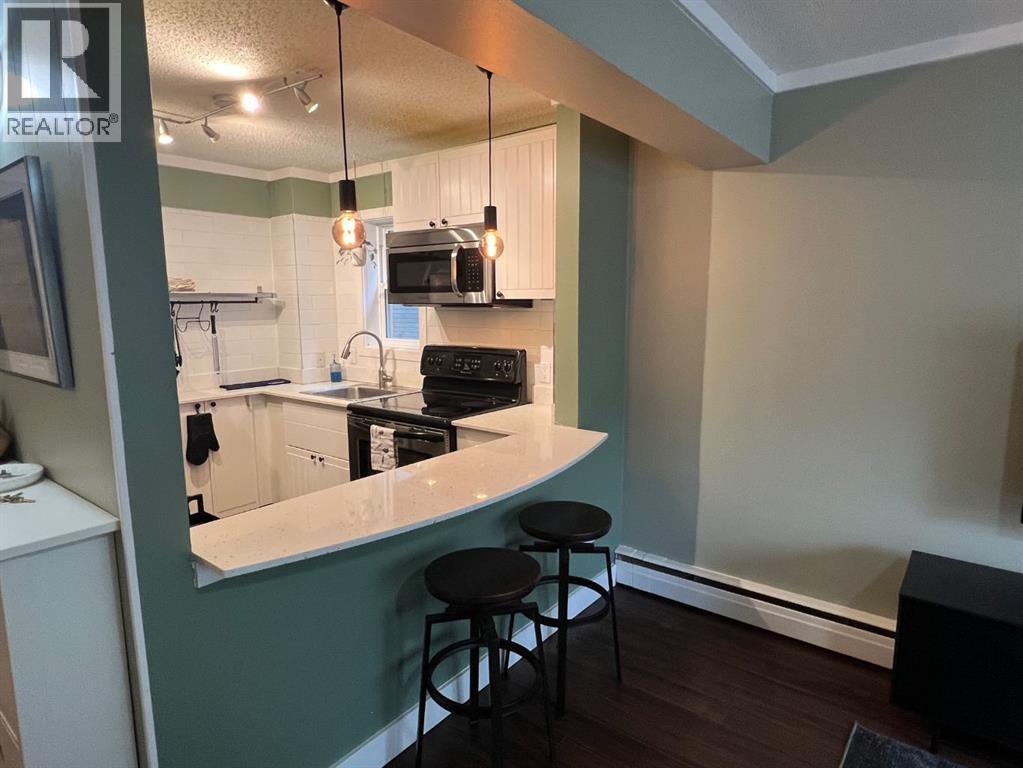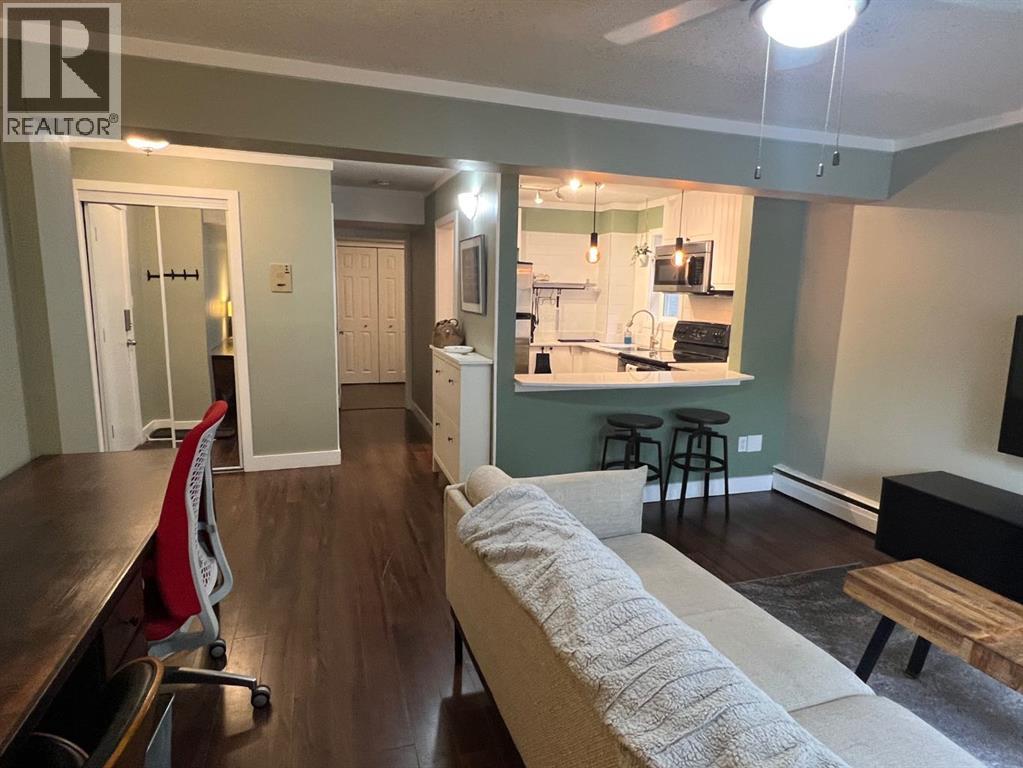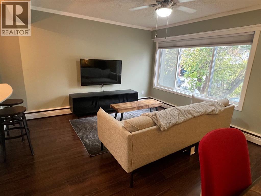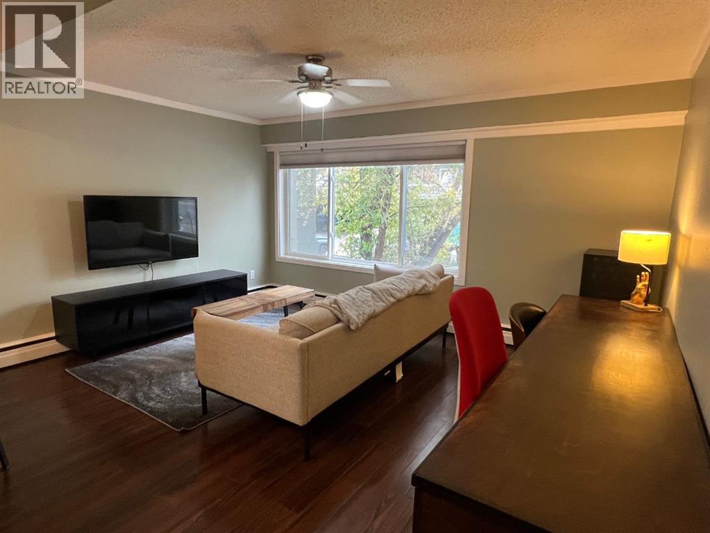 FULLY FURNISHED WEST FACING RENOVATED CONDO! Ideal for a furnished rental as all furniture included. CORNER UNIT. Spacious floorpan and big bright windows. Kitchen with stainless appliances and quartz counters with curved breakfast bar. Bathroom with plenty of storage and beautiful tile details. Spacious bedroom with double closet and storage room with in-suite laundry! Careful planned, this floorpan is thoughtful, functional and comfortable. Pets permitted. This unit does not come with assigned parking but there is lots of street parking available, no permit or time limit required. Steps away from everything 17th ave has to offer! Building is in incredible shape with a brand new roof and structure (2023) and waterproofing (2025). (id:58070)
