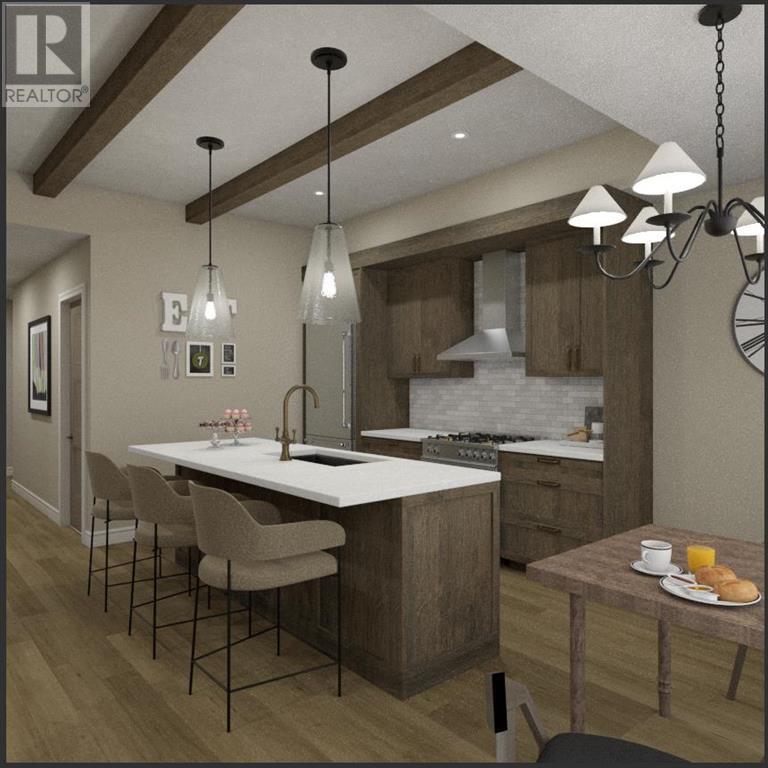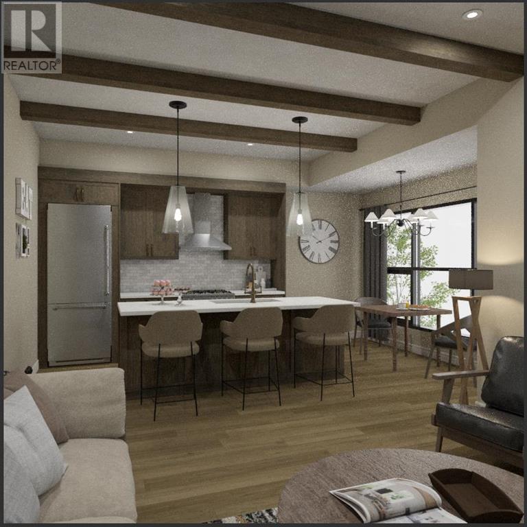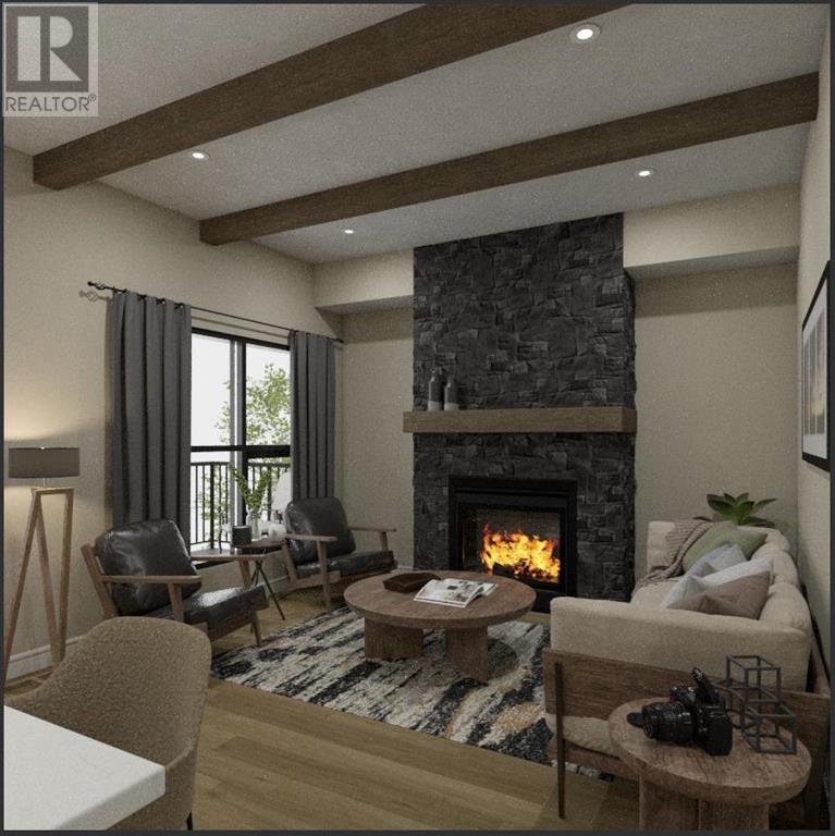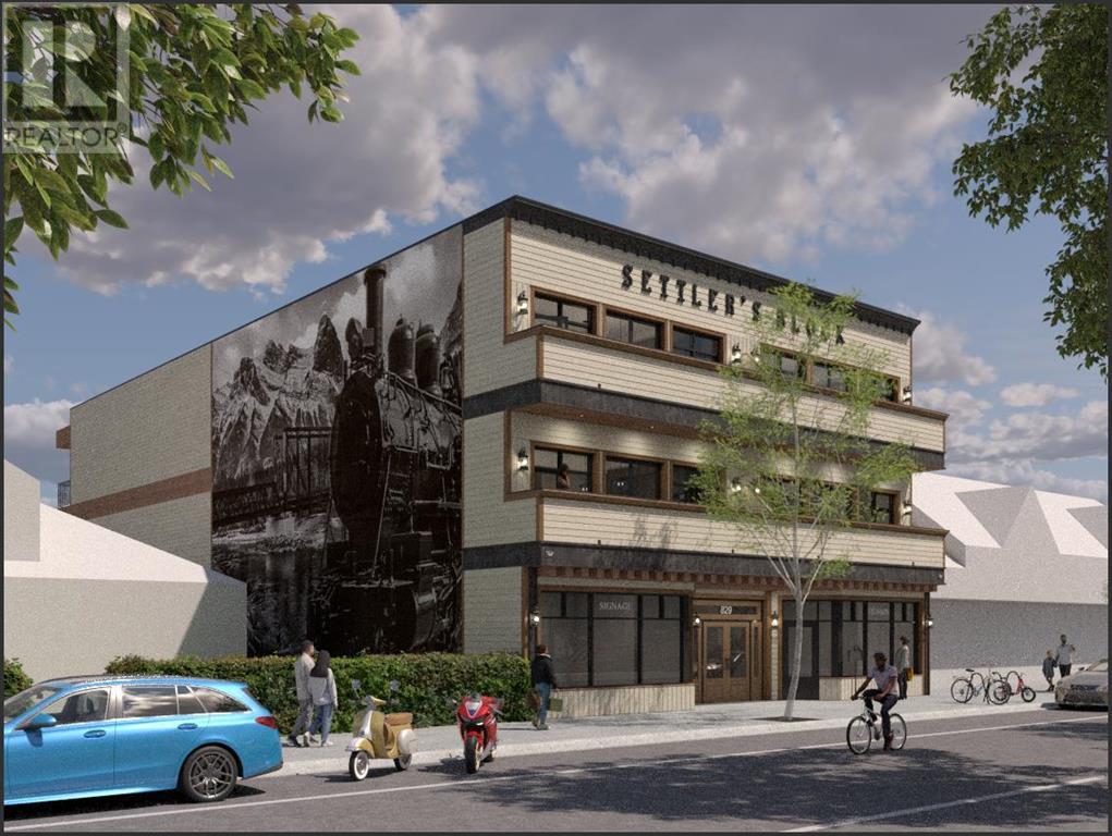 Welcome to Settler's Block. Canmore's only luxury steel and concrete building on main street. This 2 bed 2 bath 2nd floor corner unit in the heart of downtown is finished to the highest standard with ceiling beams and mantles constructed from reclaimed wood from the Canmore Engine bridge, hardwood and tile flooring, high end finishings, Bertazzoni stainless steel appliances with gas range, infloor heat, A/C, and a private patio with gas hookup with breathtaking mountain views. Elevator access to the 2500 sq ft rooftop patio provides BBQ's and a seating area for entertaining, and an Infra red Sauna for relaxing and enjoying the 360 degree, panoramic views of Canmore. Only 2 units Left! (id:58070)