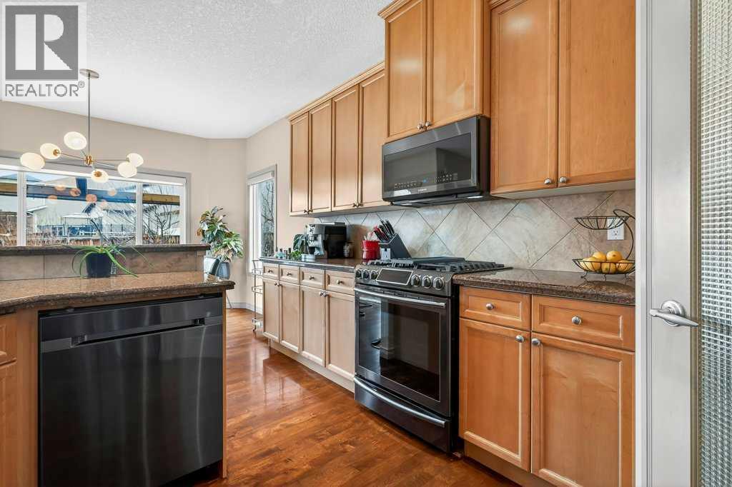 Welcome to this exceptional residence in the highly sought-after lake community of Crystal Green, offering an outstanding blend of comfort, functionality, and lifestyle. Perfectly positioned across from Crystal Ridge Golf Club and with year-round Lake Access, this home presents a rare opportunity to enjoy both scenic surroundings and resort-style amenities. From the moment you step inside, you are greeted by a bright and spacious entryway that sets the tone for the thoughtfully designed layout. The open-concept main floor has 9' ceilings and is both elegant and practical, featuring a private den with glass French doors, ideal for a home office, study, or quiet retreat. The heart of the home is the beautifully appointed kitchen, complete with a large central granite island, modern Samsung appliances, an instant hot tap at the sink, tile backsplash and a highly functional walk-through pantry that seamlessly connects to the mudroom—perfect for busy households and effortless entertaining. The inviting living room is anchored by a cozy gas fireplace and framed by large windows that flood the space with natural light while offering views of the backyard. The adjacent dining area creates the perfect setting for hosting family and friends, with easy access to the outdoor living space. Upstairs, you’ll find a generous bonus room, ideal for movie nights, a play area, or a secondary lounge space. The primary suite serves as a relaxing retreat, featuring a walk-in closet and a luxurious 5-piece ensuite with a jetted soaker tub, dual vanities, and ample space to unwind. Two additional well-sized kids' bedrooms are a good size and close to the 4pc bathroom. Step outside to your private west-facing backyard oasis, where you can enjoy long summer evenings on the expansive deck. The deck is thoughtfully designed with a gas line for your BBQ, privacy walls, privacy shades, a pergola, and an outdoor fan for added comfort. This outdoor space is perfect for relaxing, entertaining, or si mply taking in the peaceful surroundings. The unfinished basement offers endless potential, with 3 oversized windows allowing you to customize the space to suit your lifestyle—whether that be a home gym, recreation room, or additional living quarters. The home has been well-maintained and upgraded with A/C, central vac, and new hot water tank. Located in one of the area’s most desirable communities, residents of Crystal Green enjoy exclusive lake privileges, walking paths, parks, and proximity to golf, schools, and amenities. Don’t miss this incredible opportunity to own in Crystal Green. Book your showing and come on Buy! (id:58070)